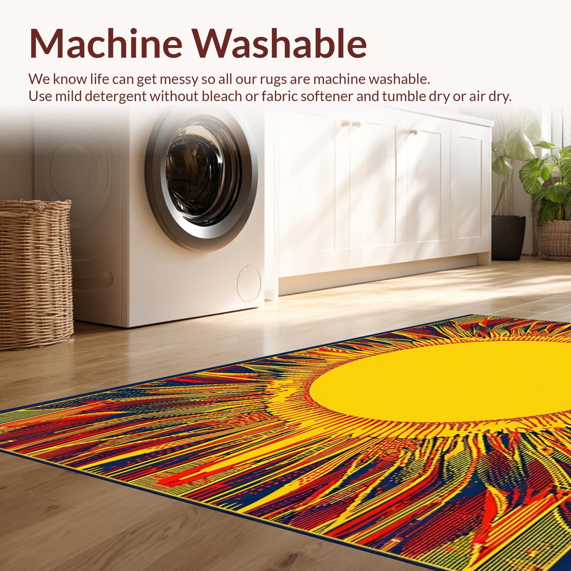 - Machine Washable: Our rugs can be easily thrown in the wash machine.