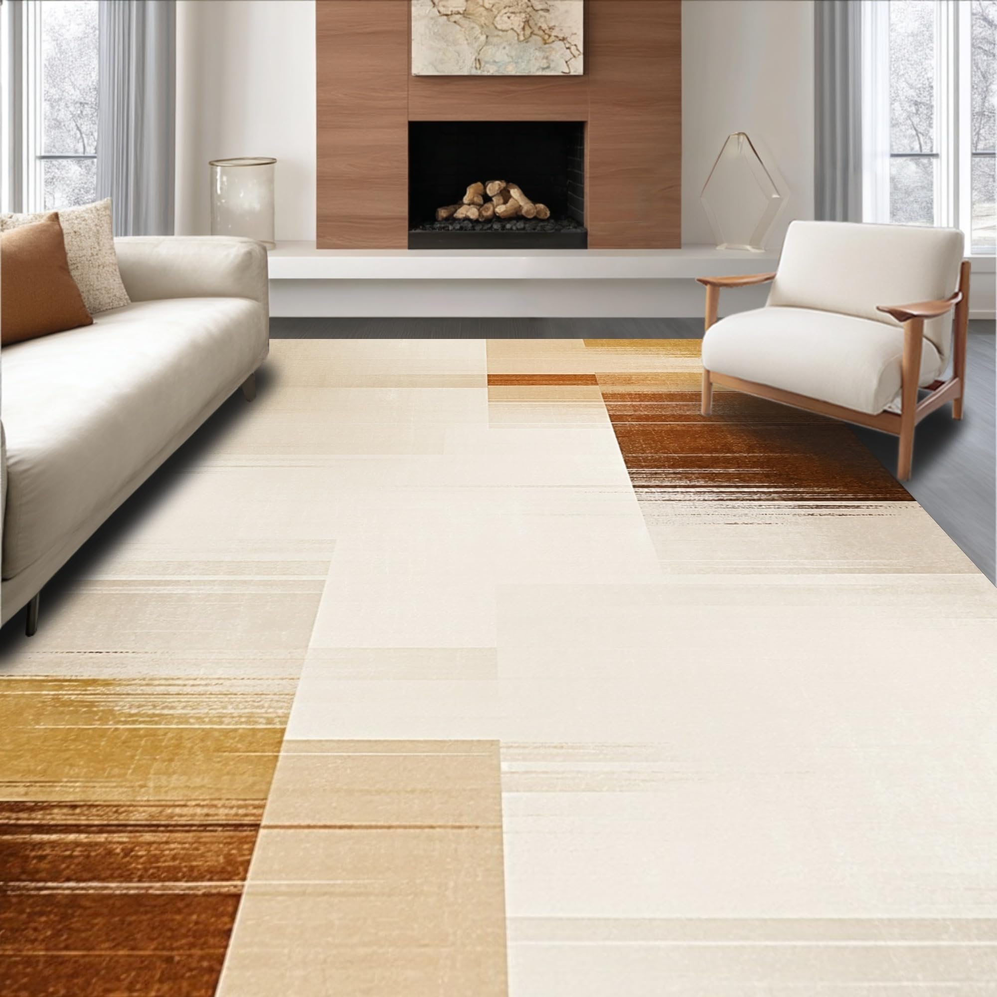 Ultra Soft Area Rug, Non Slip, Stain Resistant, Washable Area Rugs for Living Room, Bedroom, Washable Rug Abstract Beige Brown Design Artful(Beige) Overview: