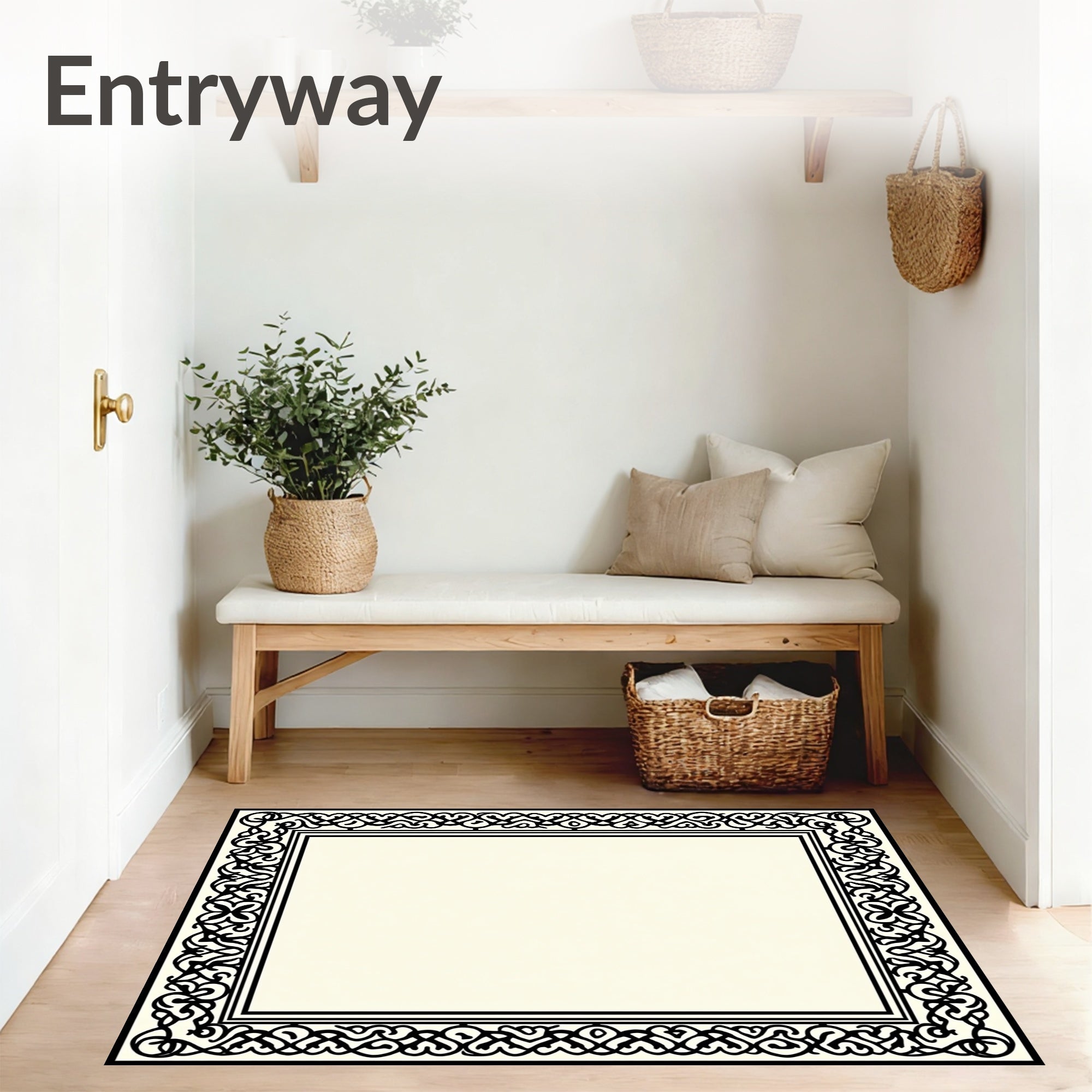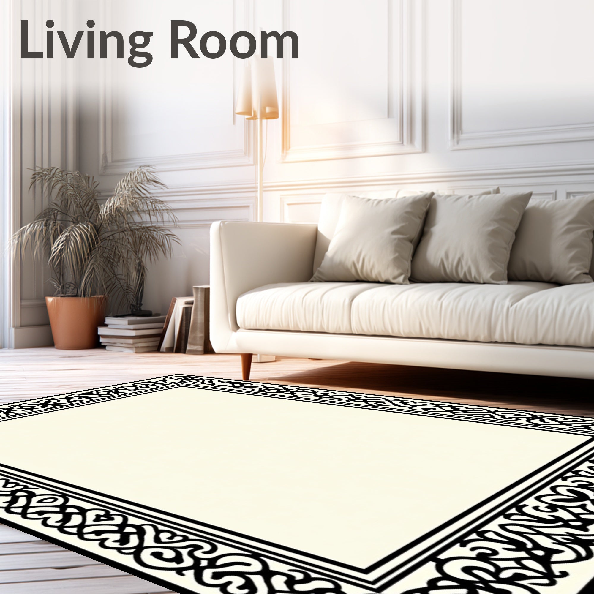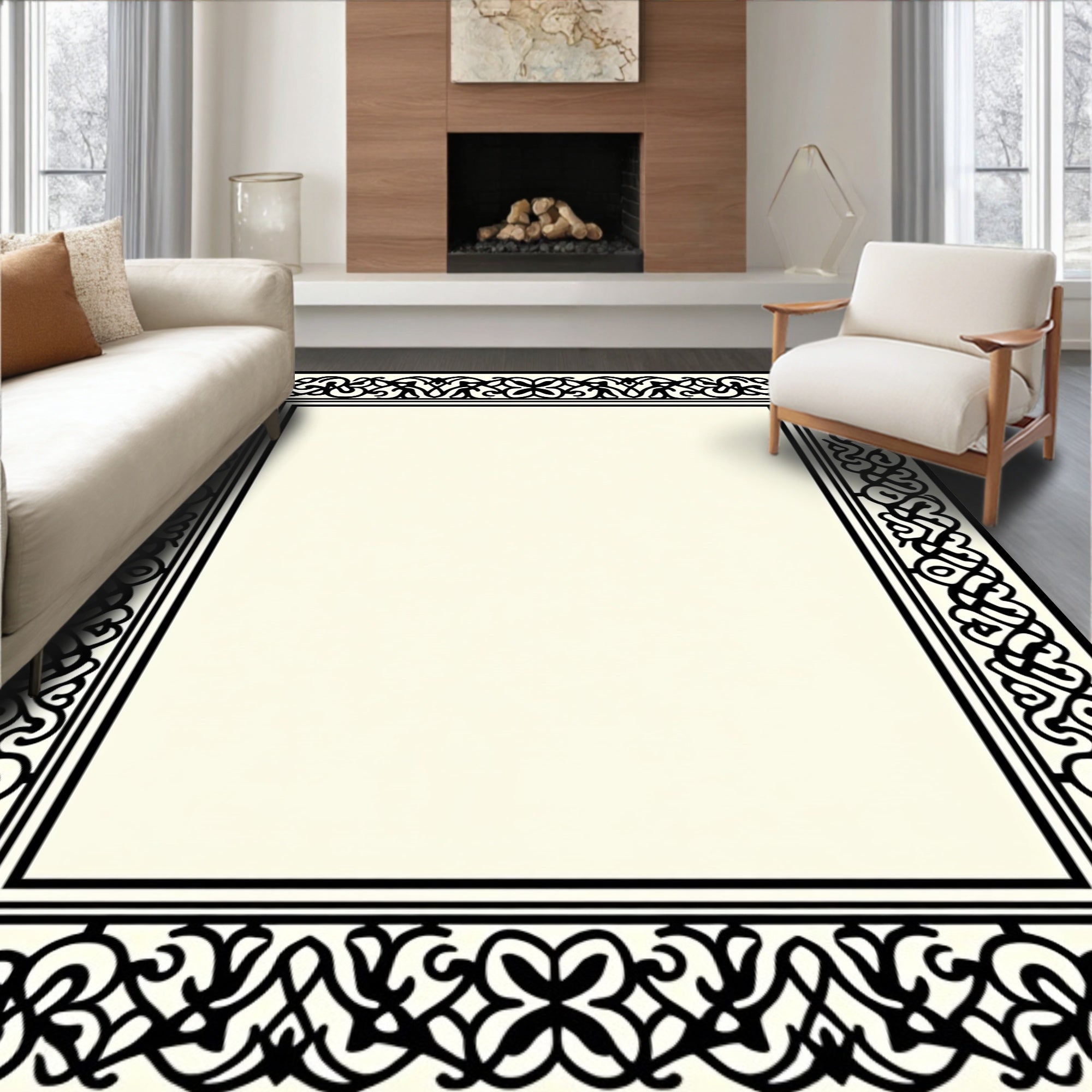 Ultra Soft Area Rug, Non Slip, Stain Resistant, Washable Area Rugs for Living Room, Bedroom, Washington Heritage Classical Symmetrical Trellis Framework(Black) Overview: