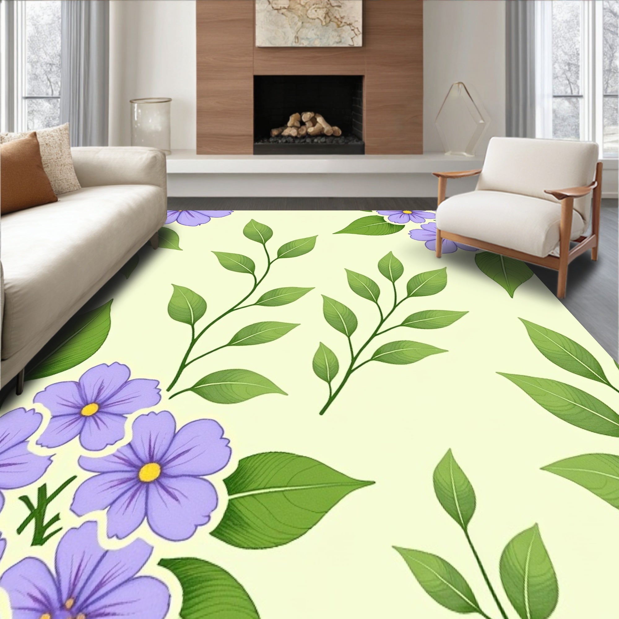 Ultra Soft Area Rug, Non Slip, Stain Resistant, Washable Area Rugs for Living Room, Bedroom, Watercolor Hydrangea Blossoms Artistic Floral Arrangement(Ivory) Overview: