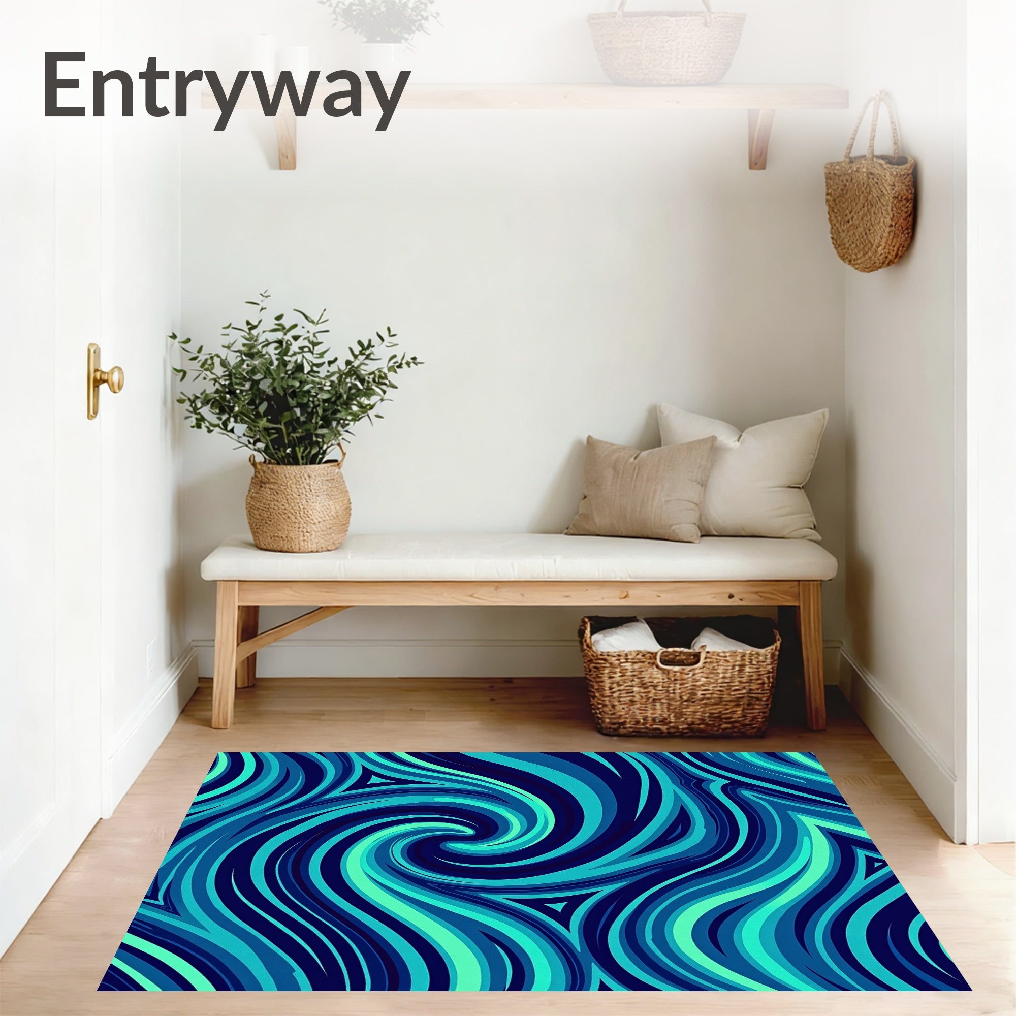 Ultra Soft Area Rug, Non Slip, Stain Resistant, Washable Area Rugs for Living Room, Bedroom, Wave Border Interlocking Ocean Inspired Decorative Flooring(Blue) Overview: