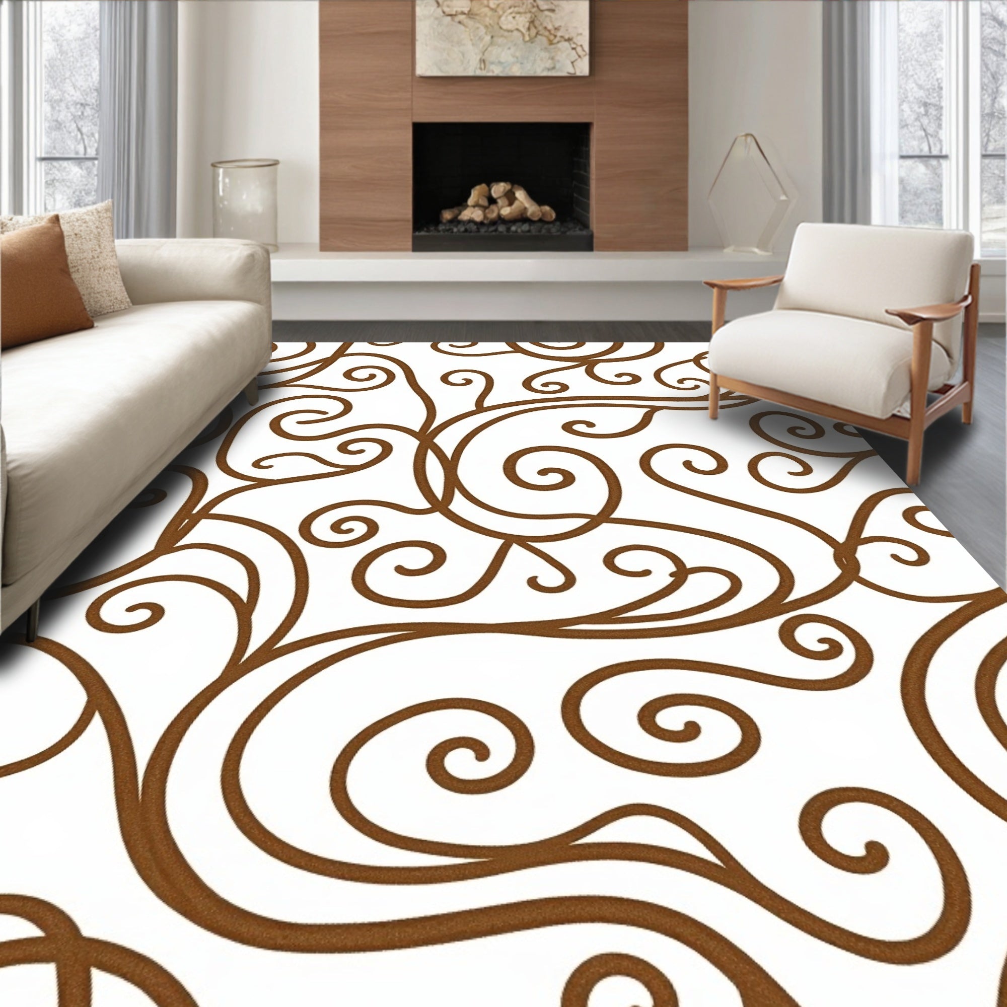 Flatwoven High Traffic Area Rug, Wave Motifs with Flowing Interlocking Curves, Non Slip, Stain Resistant, Washable Area Rugs for Living Room, Bedroom (Brown) Overview: