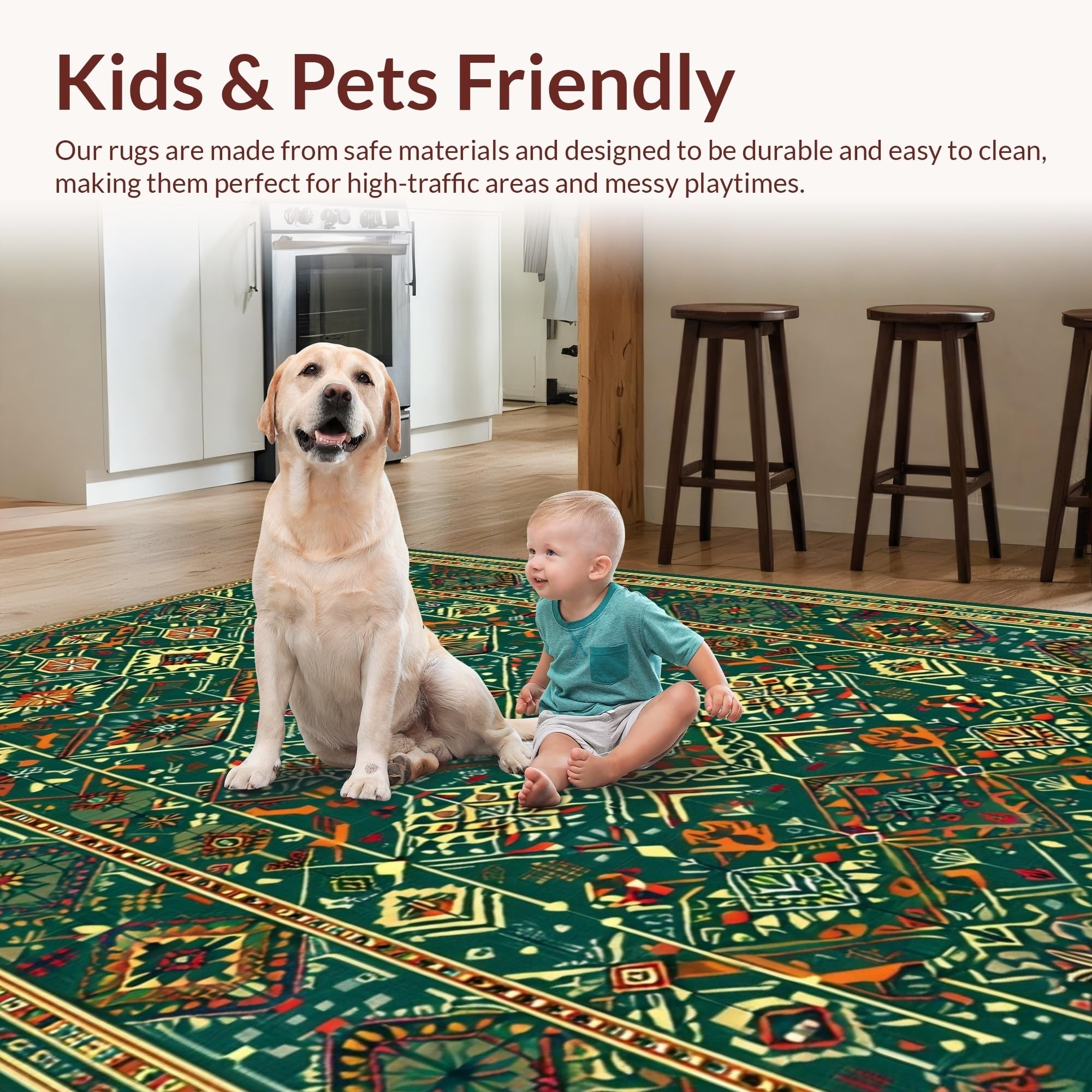 Ultra Soft Area Rug, Non Slip, Stain Resistant, Washable Area Rugs for Living Room, Bedroom, Whimsical Abstract Nature Elements(Green) Overview: