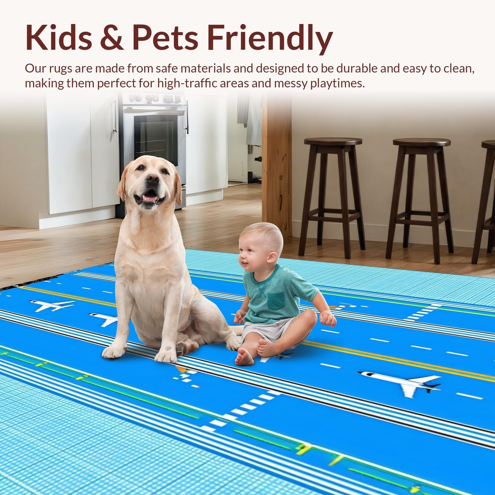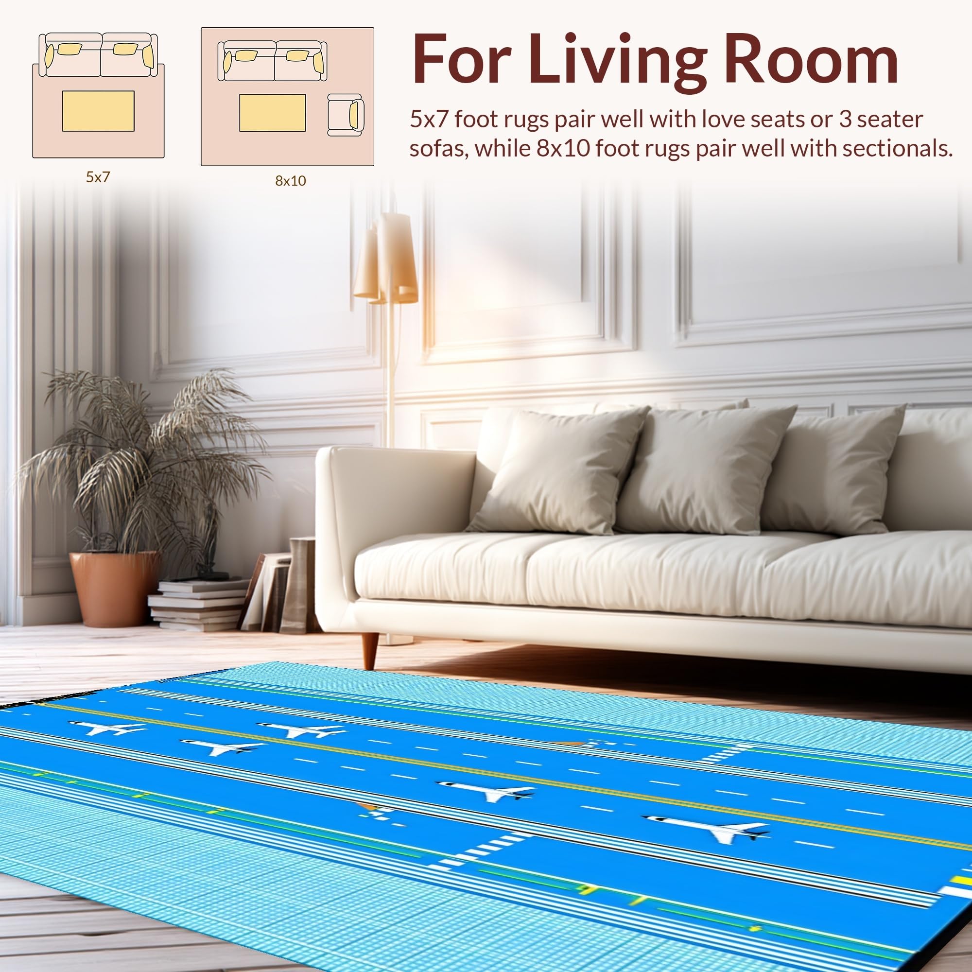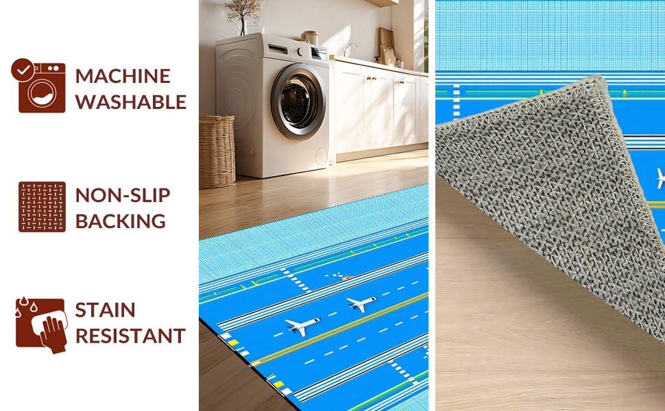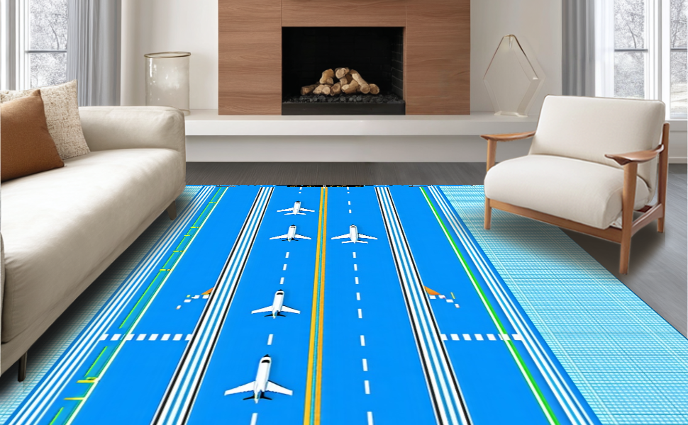 Ultra Soft Area Rug, Non Slip, Stain Resistant, Washable Area Rugs for Living Room, Bedroom, Whimsical Airport Runway Journey(Blue) Overview: