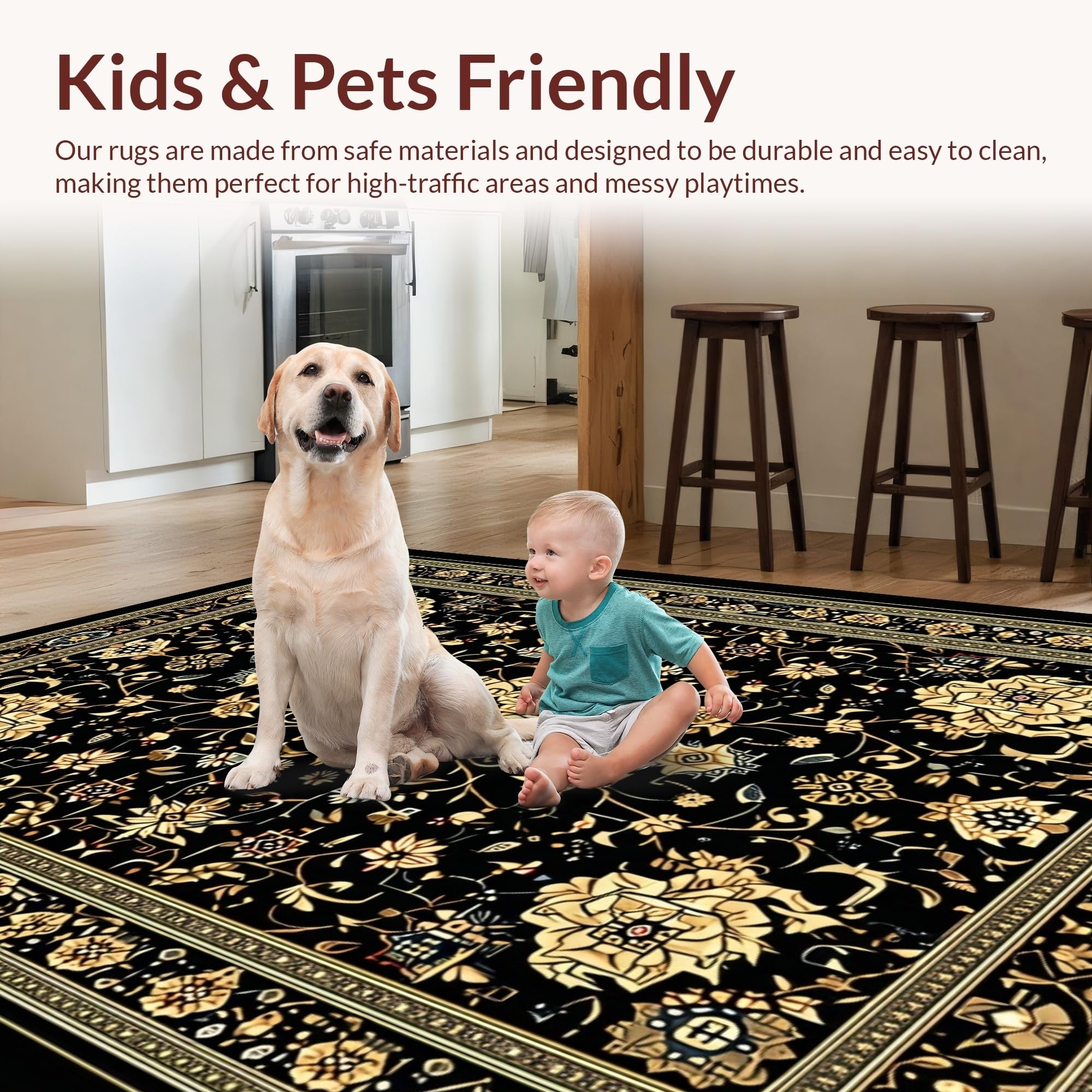 Ultra Soft Area Rug, Non Slip, Stain Resistant, Washable Area Rugs for Living Room, Bedroom, Whimsical Black and Ivory Tiled Design(Black) Overview: