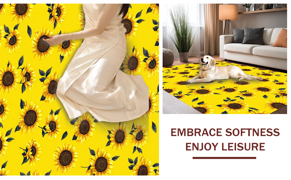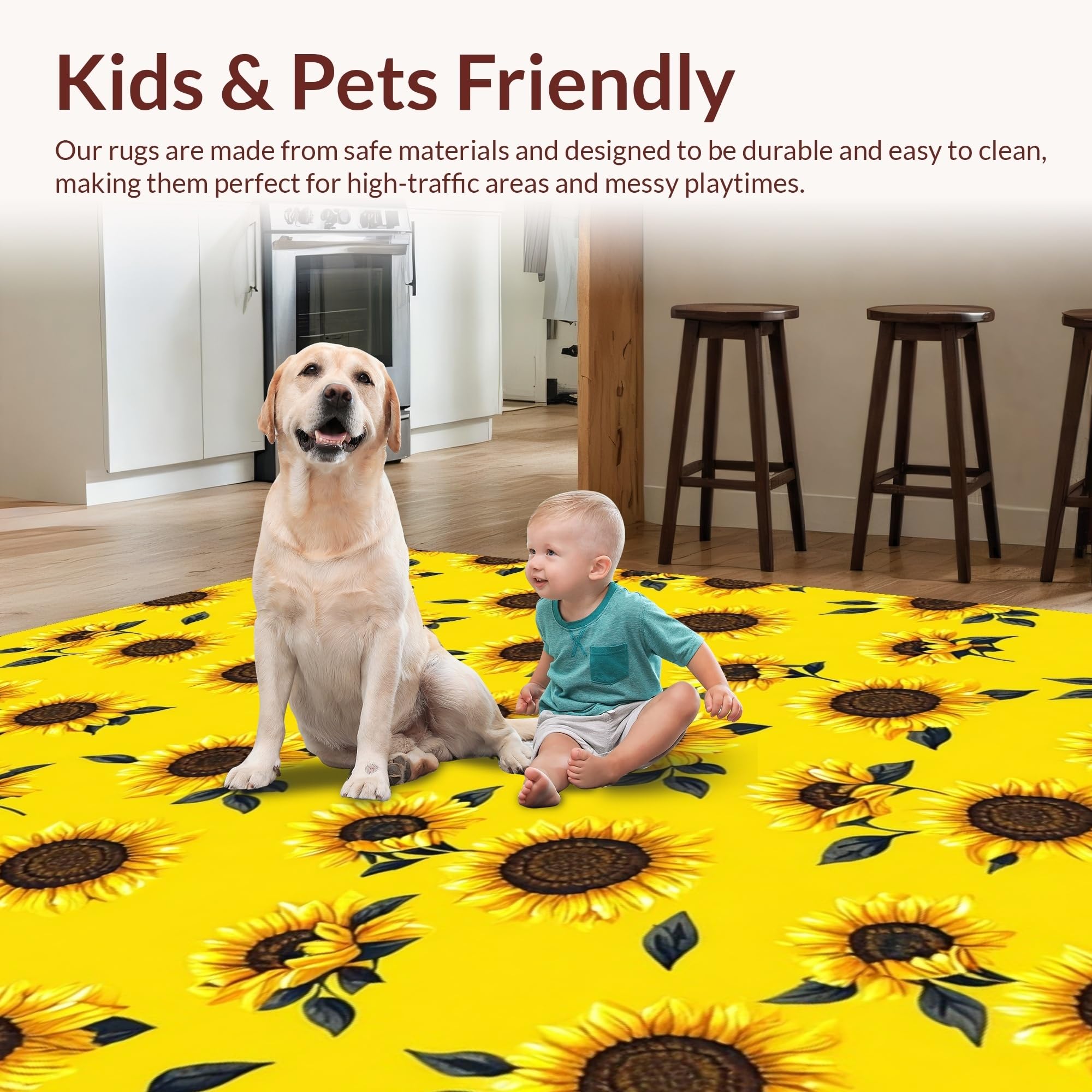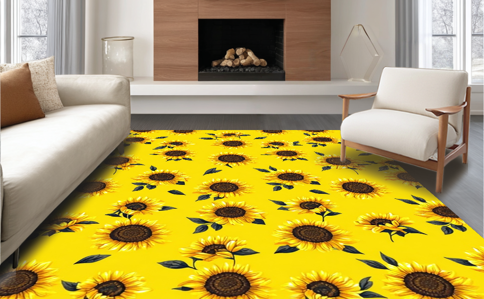 Ultra Soft Area Rug, Non Slip, Stain Resistant, Washable Area Rugs for Living Room, Bedroom, Whimsical Blooming Petal Arrangement(Yellow) Overview: