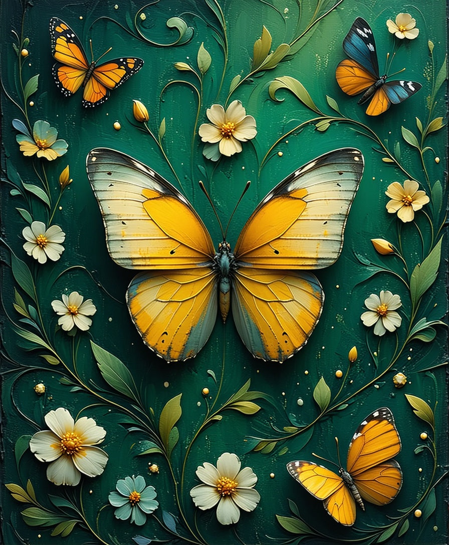 Whimsical Butterfly Dark Green Playroom(Blue)