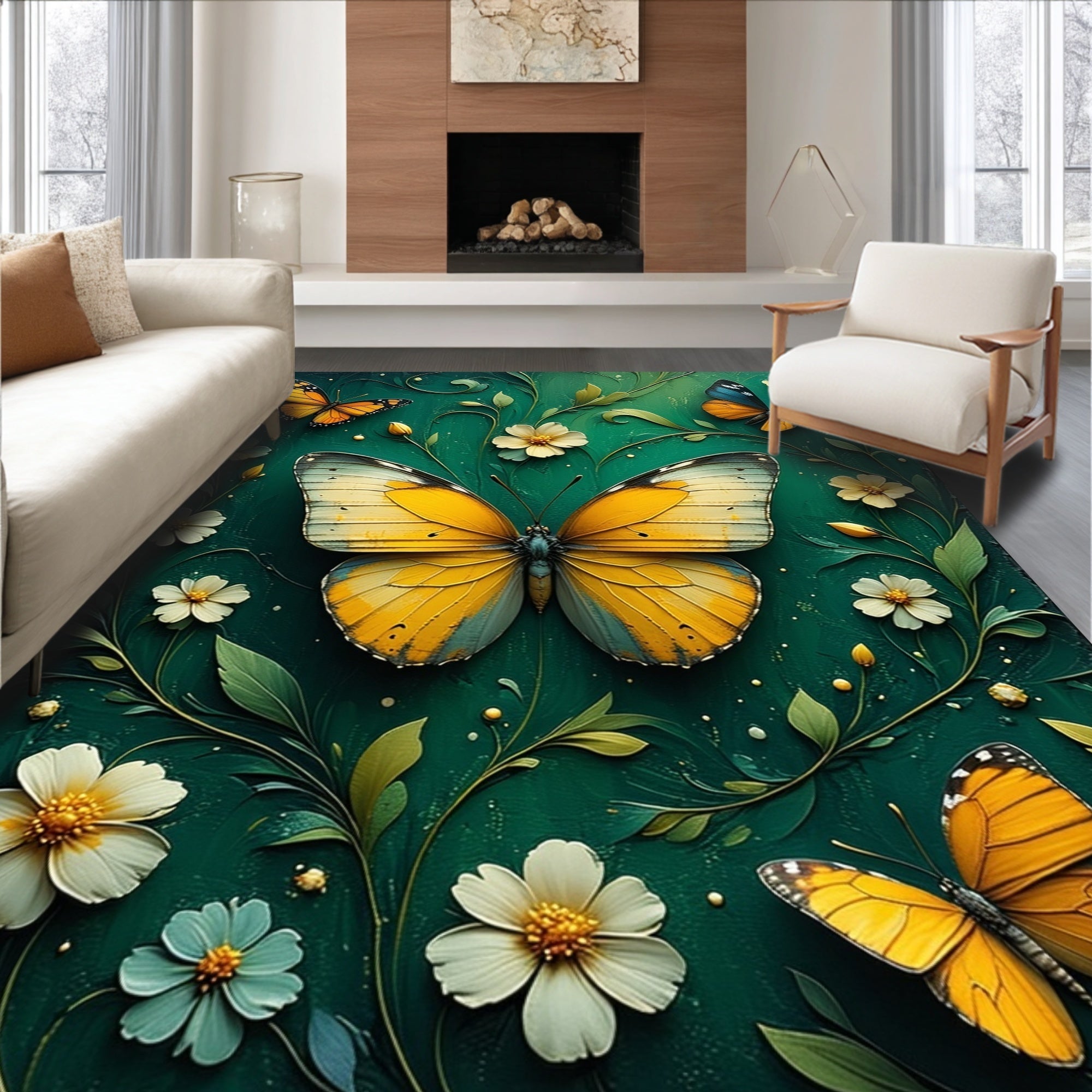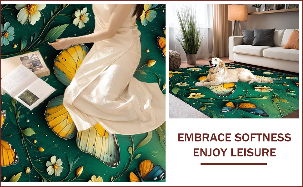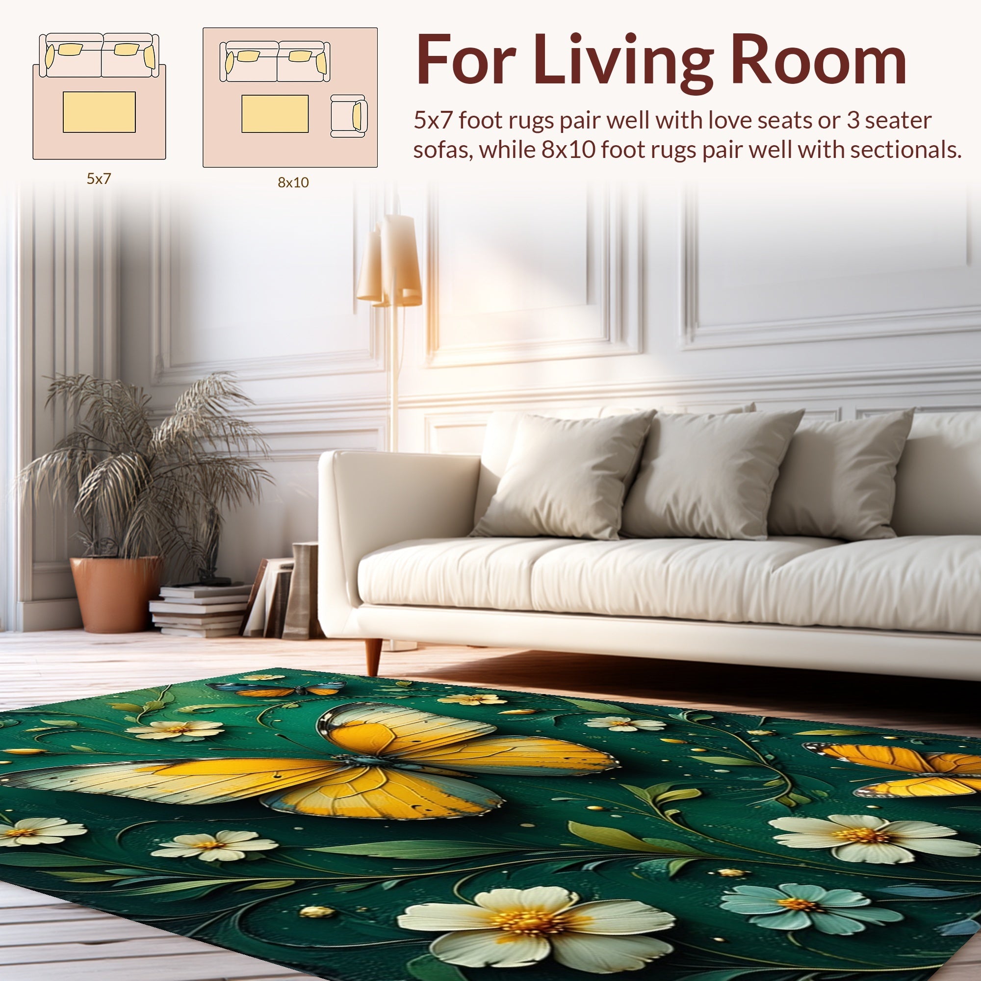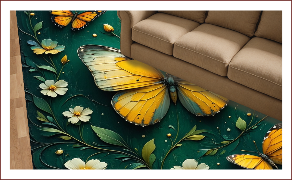 Ultra Soft Area Rug, Non Slip, Stain Resistant, Washable Area Rugs for Living Room, Bedroom, Whimsical Butterfly Dark Green Playroom Carpet(Blue) Overview: