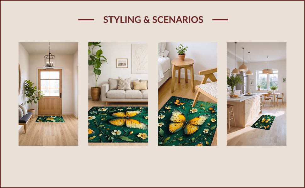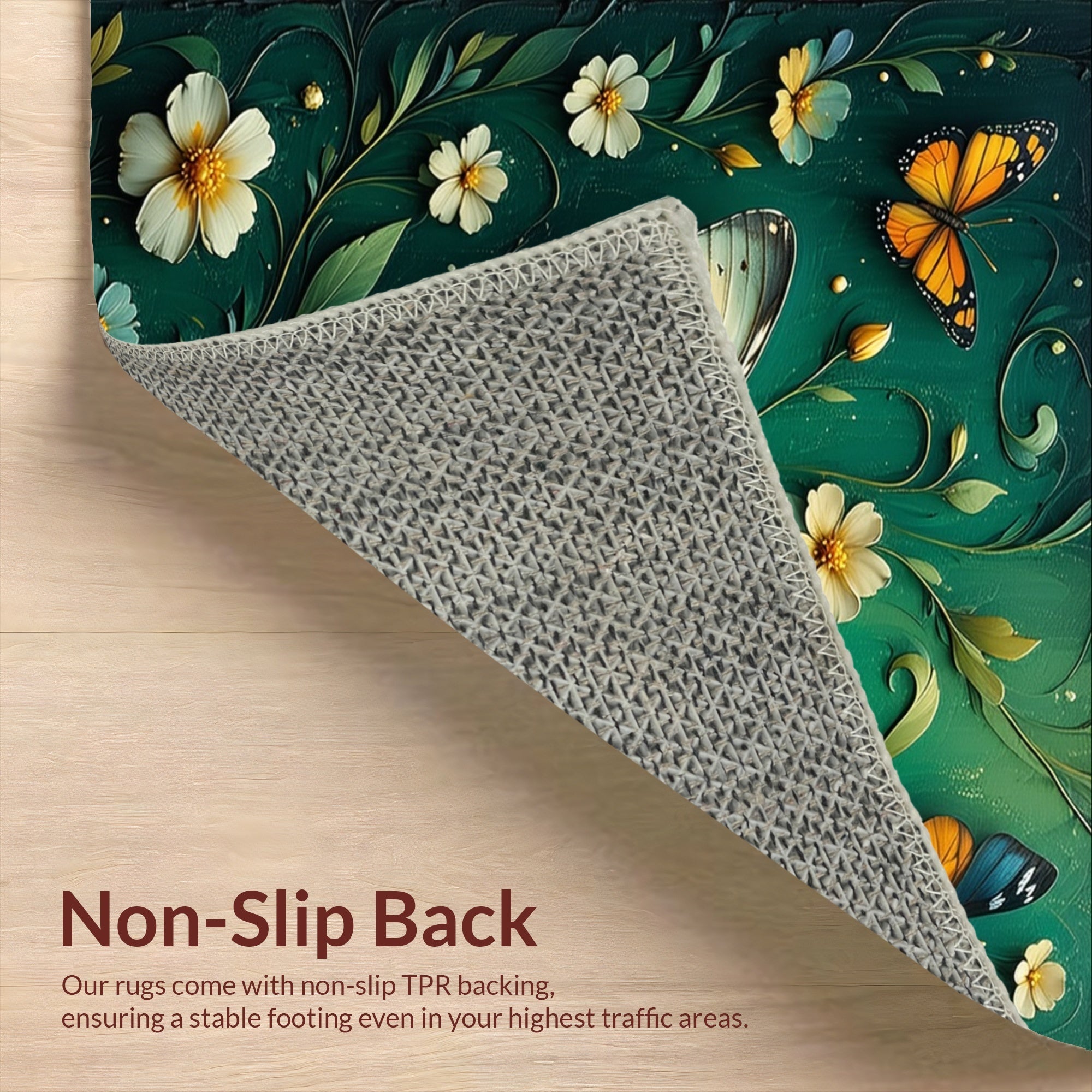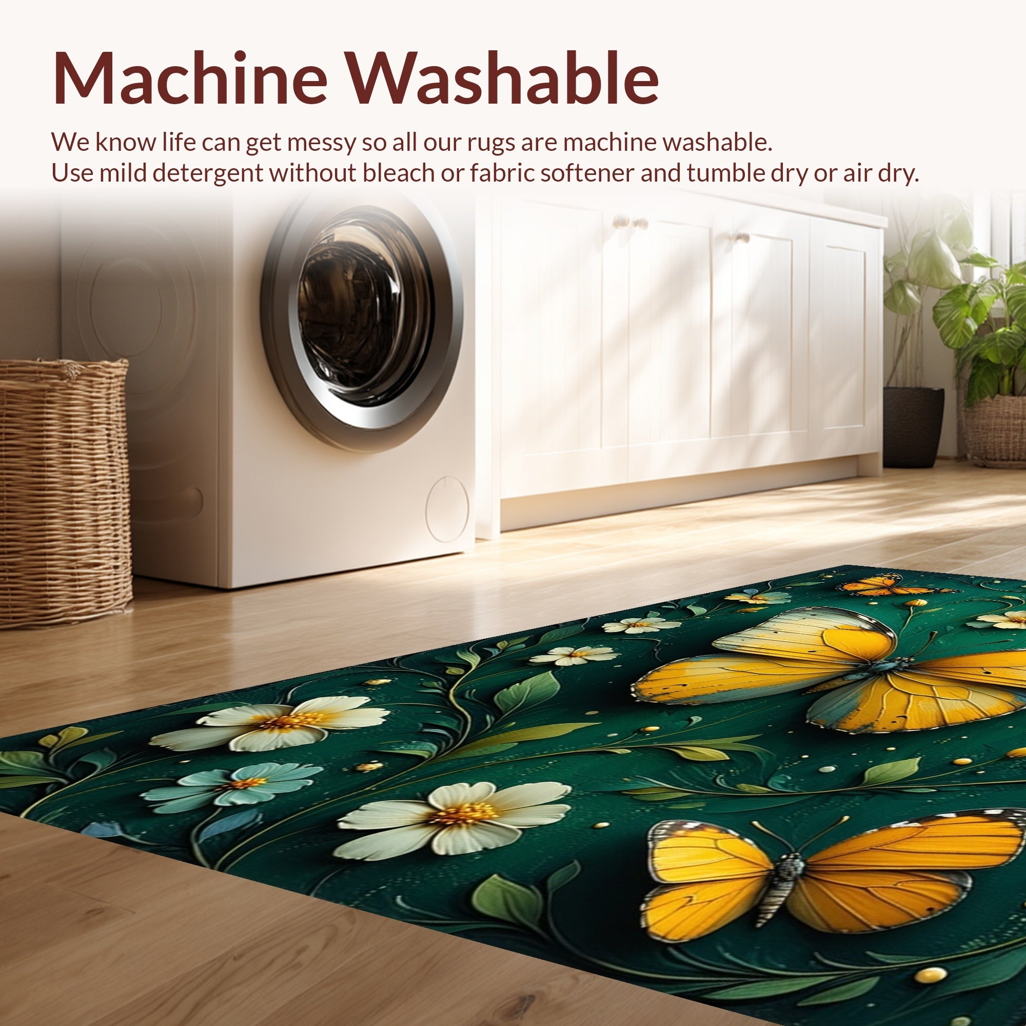 Ultra Soft Area Rug, Non Slip, Stain Resistant, Washable Area Rugs for Living Room, Bedroom, Whimsical Butterfly Dark Green Playroom Carpet(Blue) Overview: