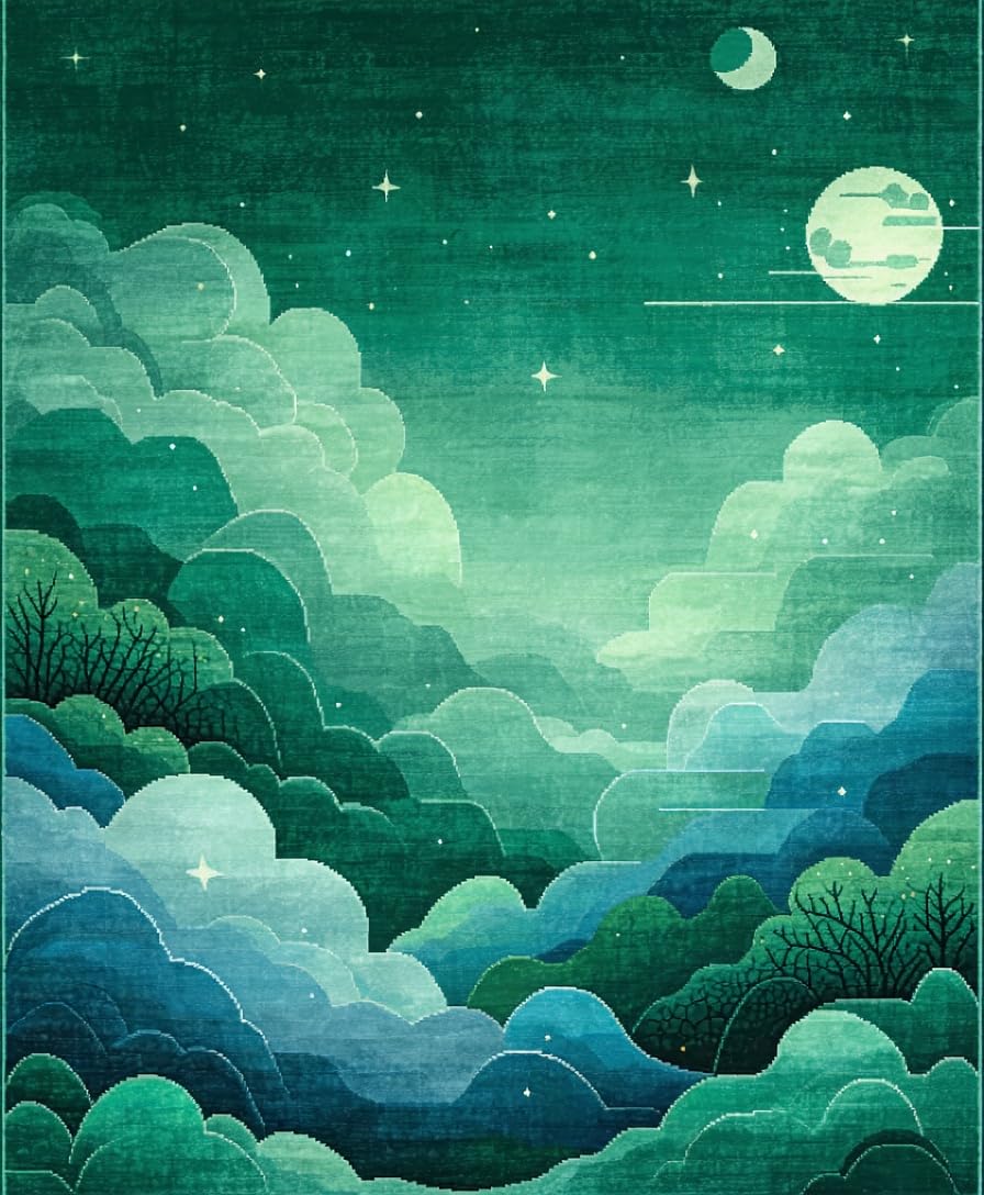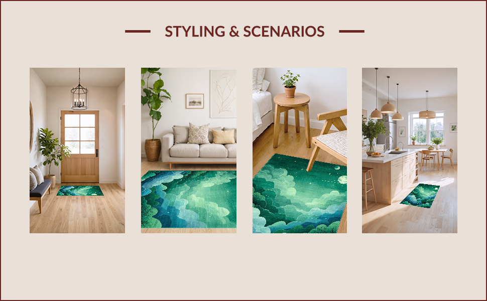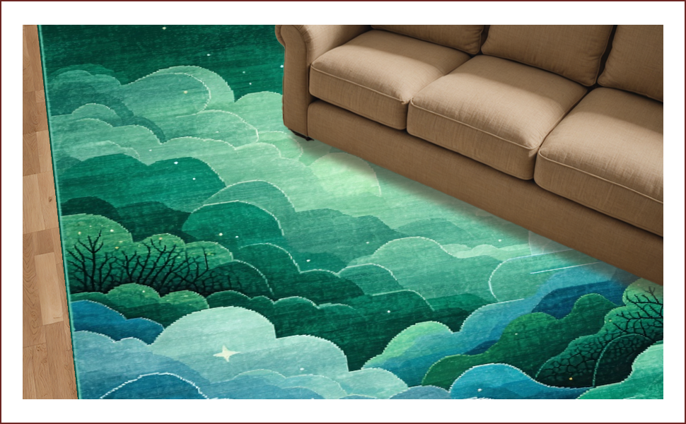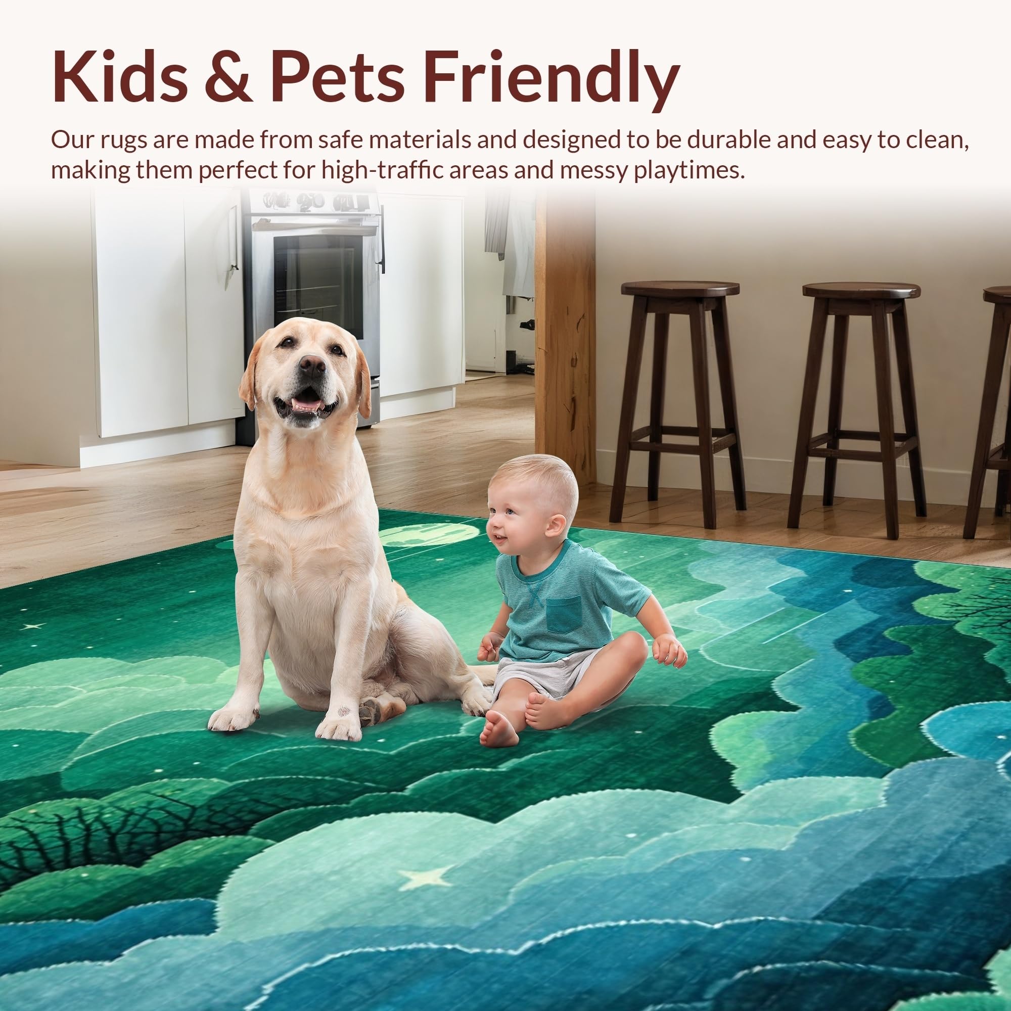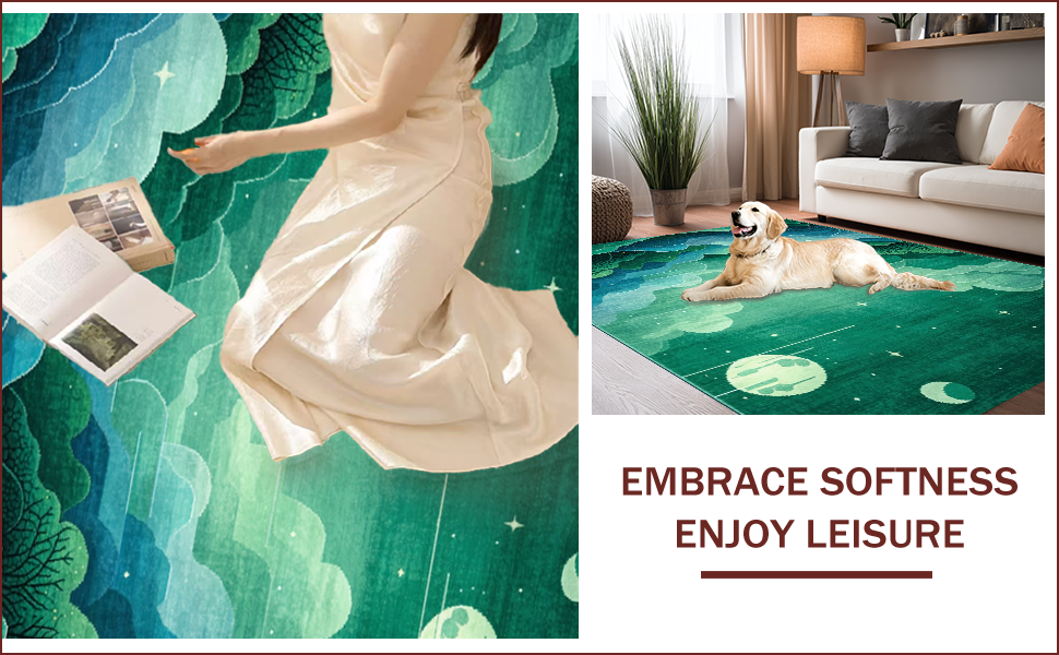 Ultra Soft Area Rug, Non Slip, Stain Resistant, Washable Area Rugs for Living Room, Bedroom, Whimsical Celestial Dreamscape Design(Green) Overview: