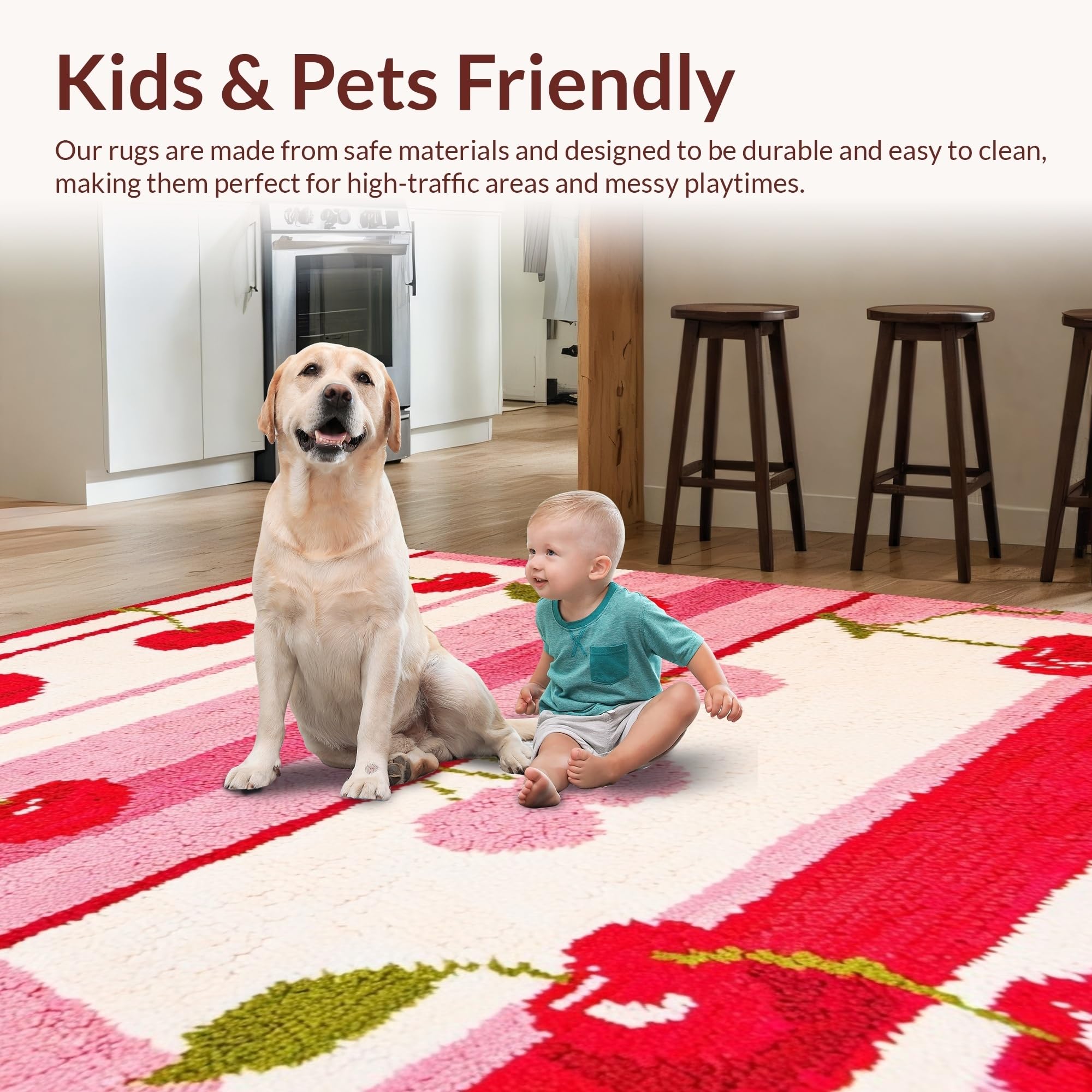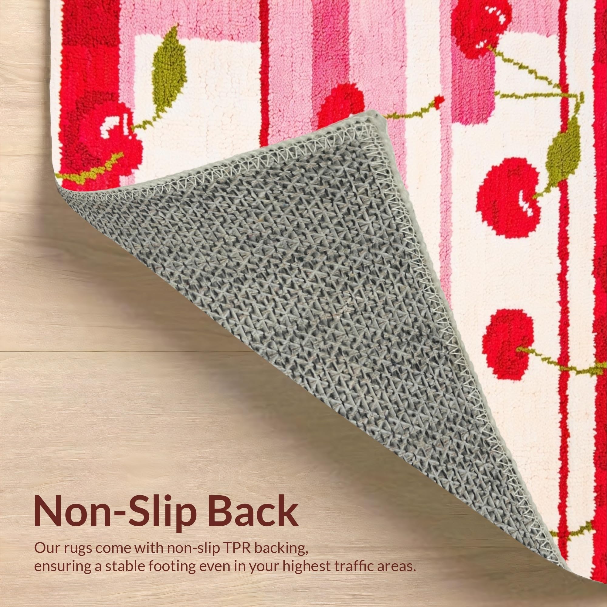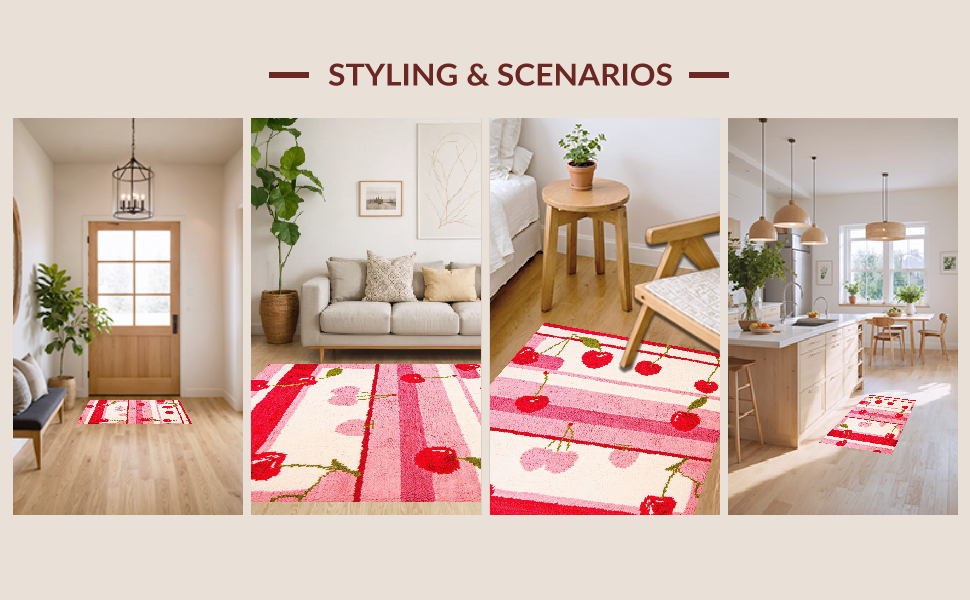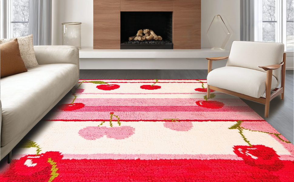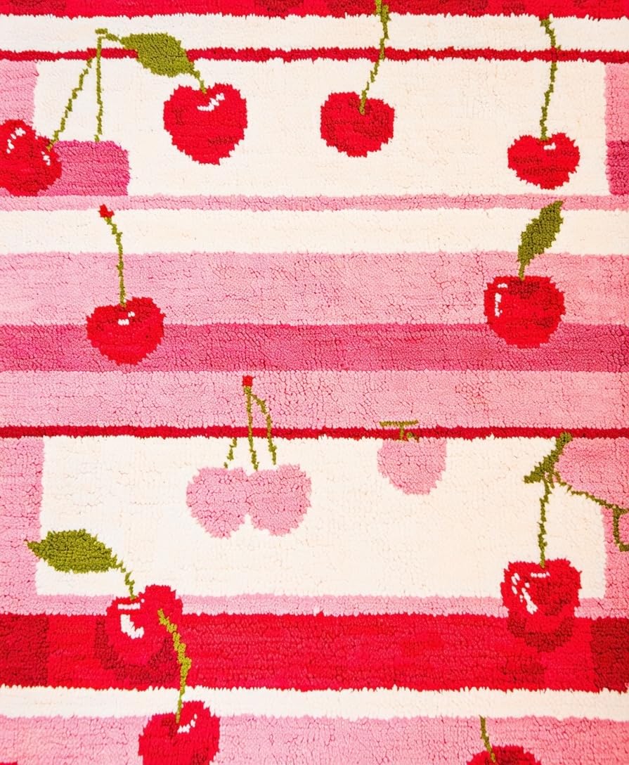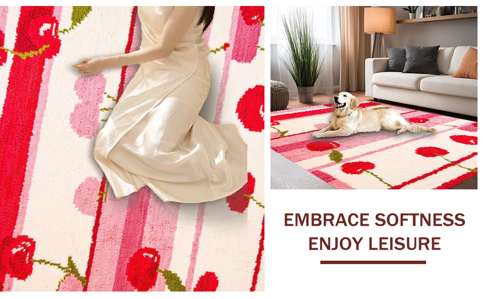 Ultra Soft Area Rug, Non Slip, Stain Resistant, Washable Area Rugs for Living Room, Bedroom, Whimsical Cherry Blossom Motif(Red) Overview: