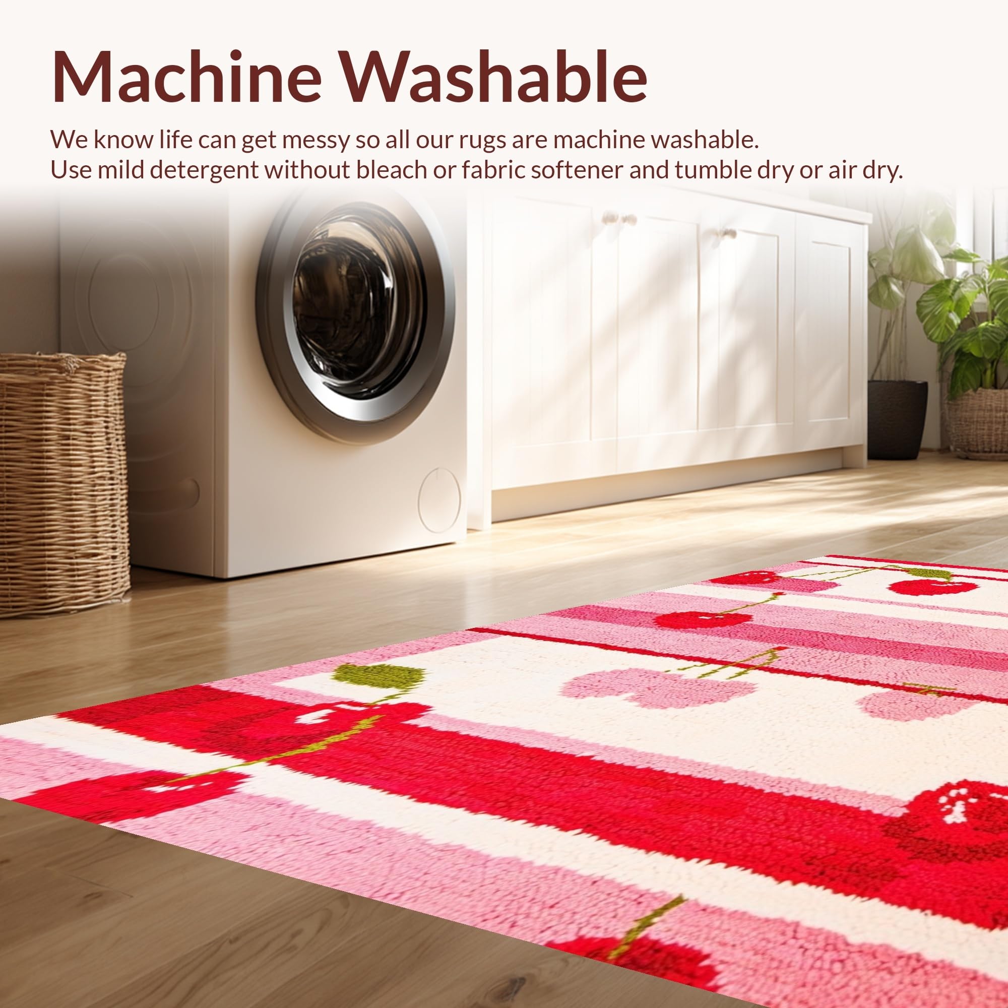- Machine Washable: Our rugs can be easily thrown in the wash machine.