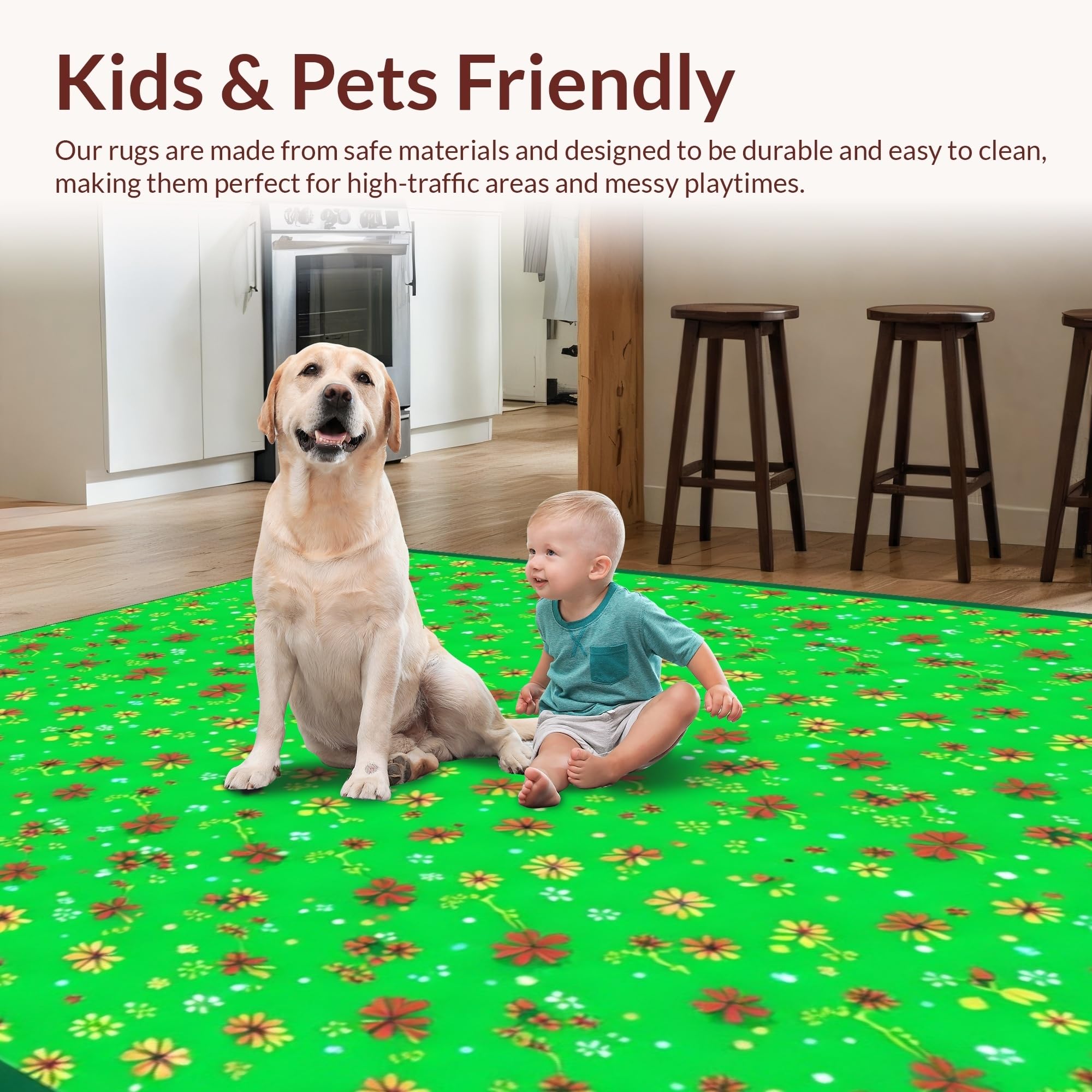 Ultra Soft Area Rug, Non Slip, Stain Resistant, Washable Area Rugs for Living Room, Bedroom, Whimsical Clover-Inspired Decor(Green) Overview: