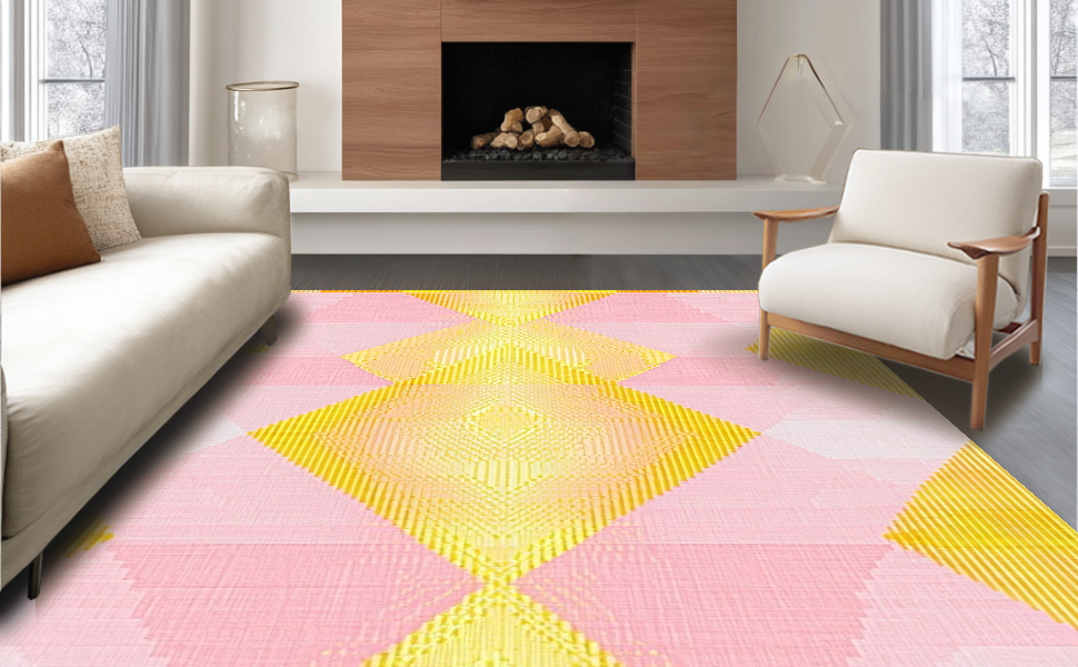 Ultra Soft Area Rug, Non Slip, Stain Resistant, Washable Area Rugs for Living Room, Bedroom, Whimsical Color Blend Design(Pink) Overview: