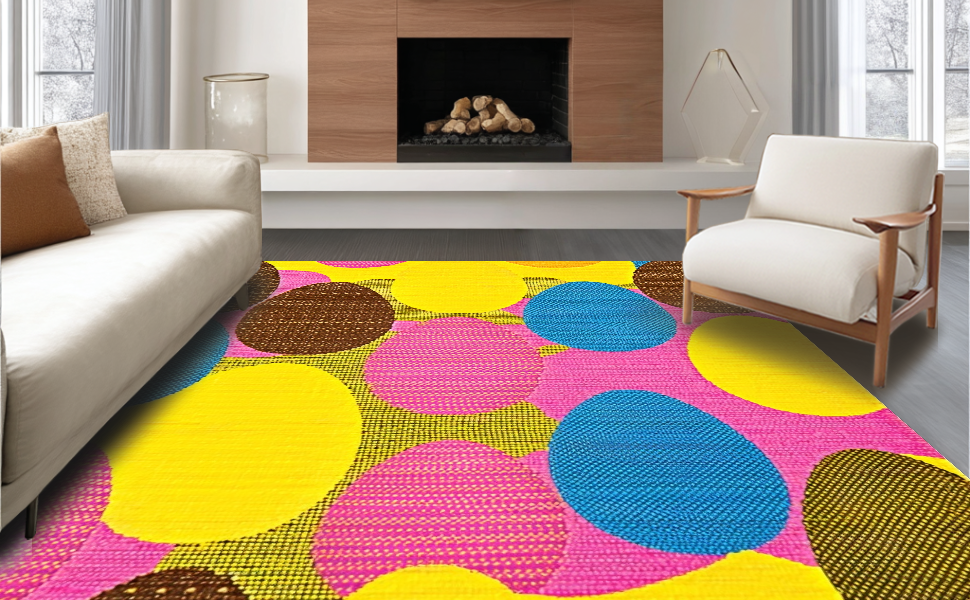 Ultra Soft Area Rug, Non Slip, Stain Resistant, Washable Area Rugs for Living Room, Bedroom, Whimsical Colorful Egg Aesthetic(Yellow) Overview: