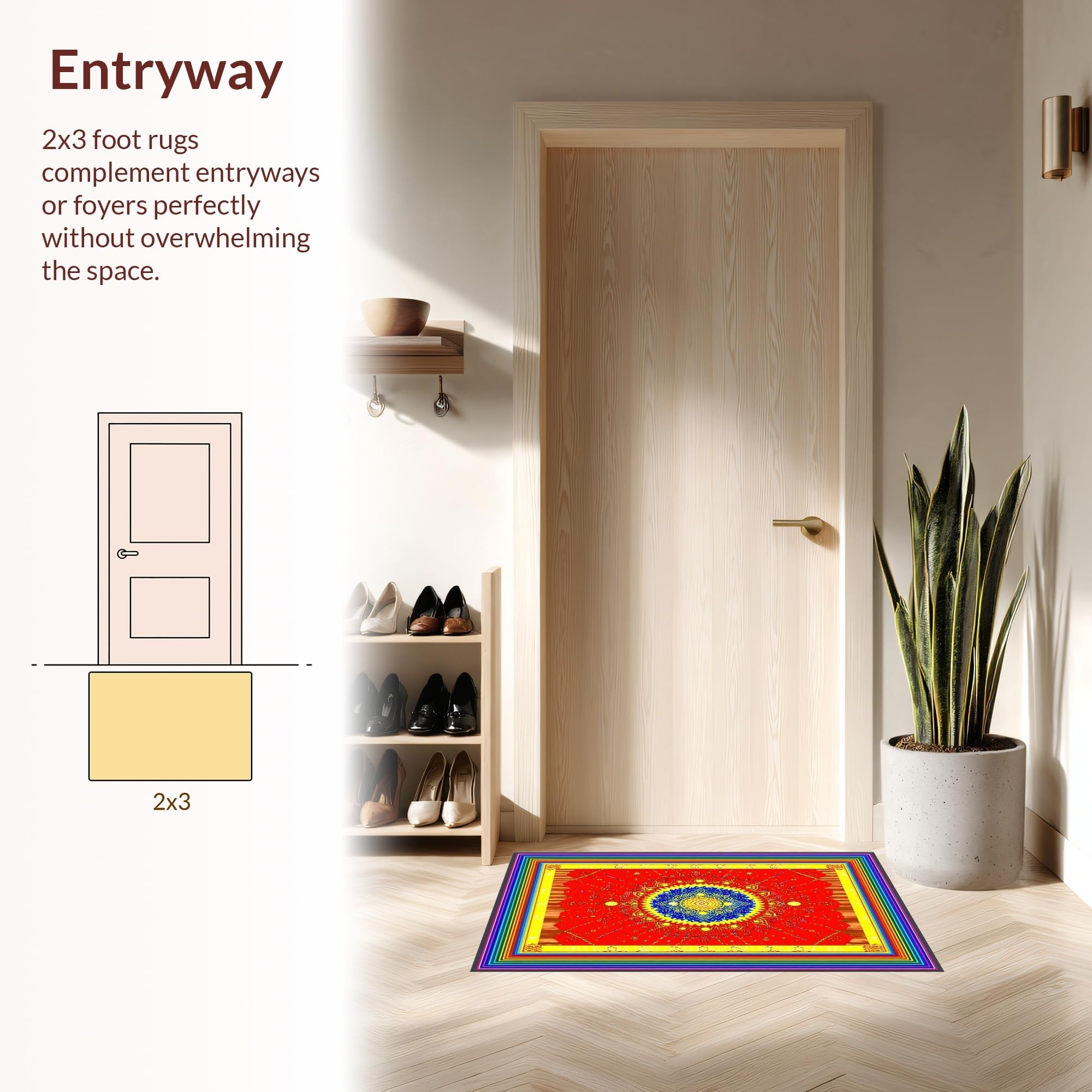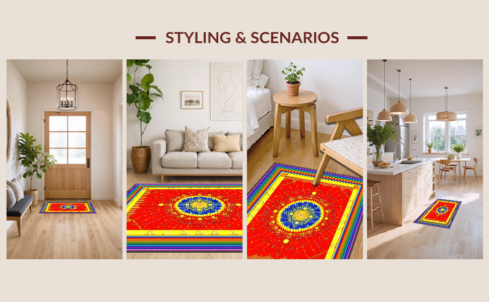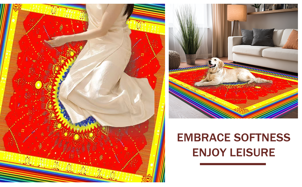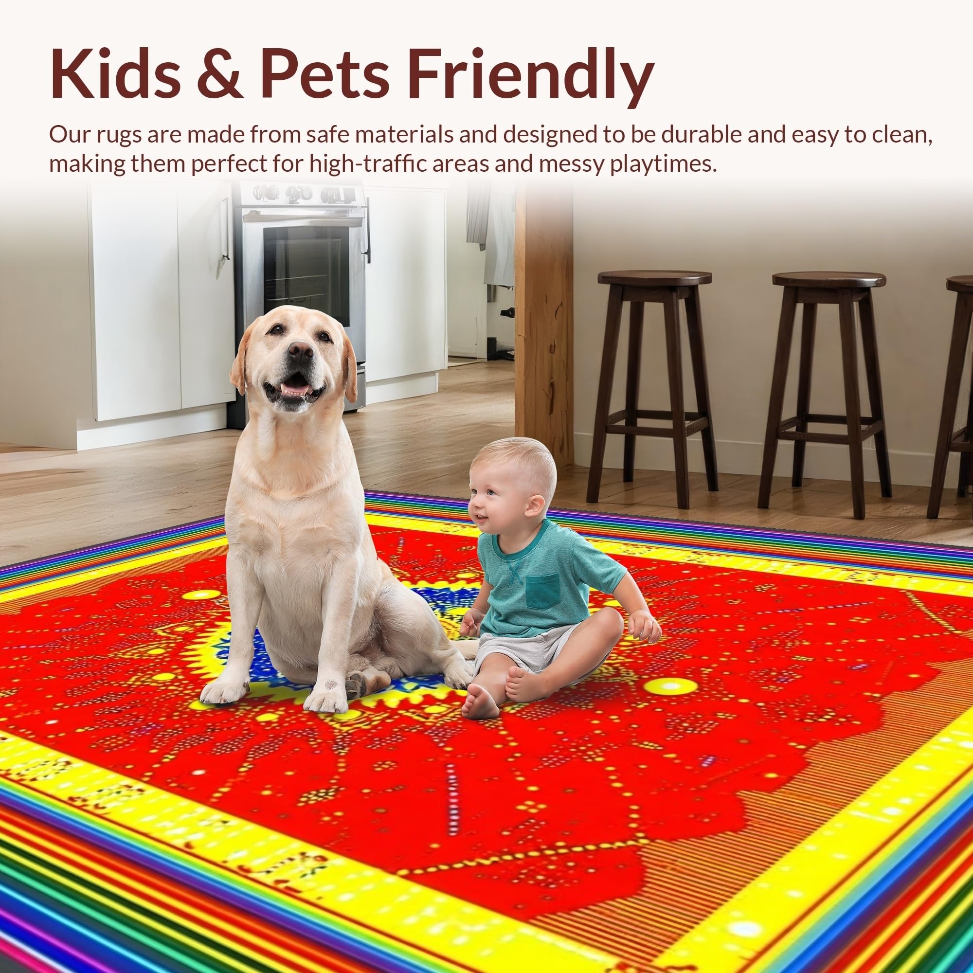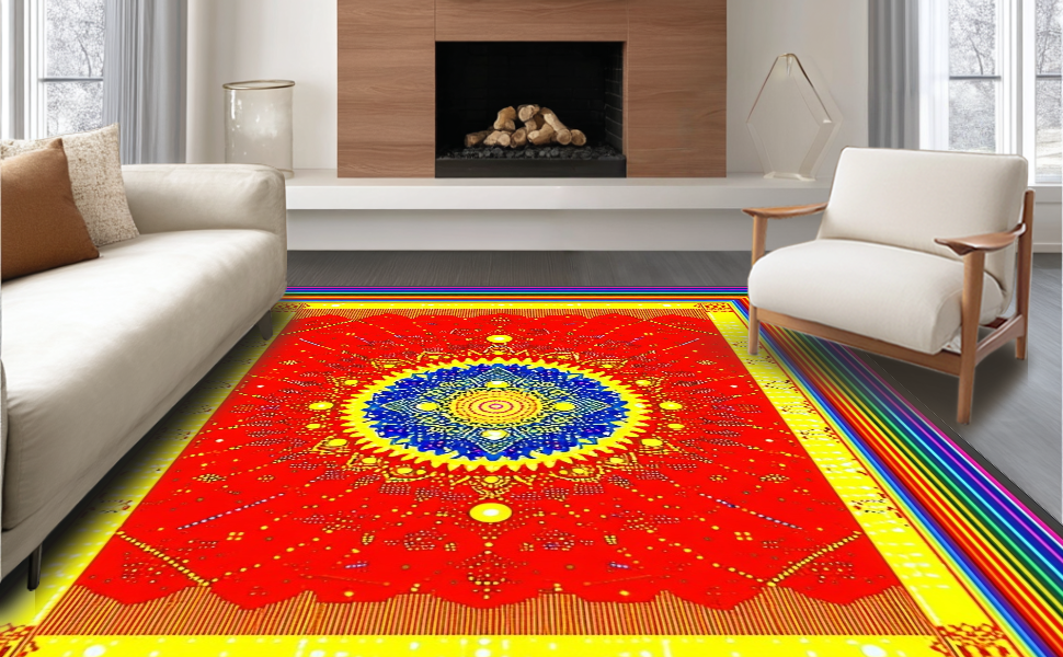 Ultra Soft Area Rug, Non Slip, Stain Resistant, Washable Area Rugs for Living Room, Bedroom, Whimsical Colorful Tapestry Design(Red) Overview: