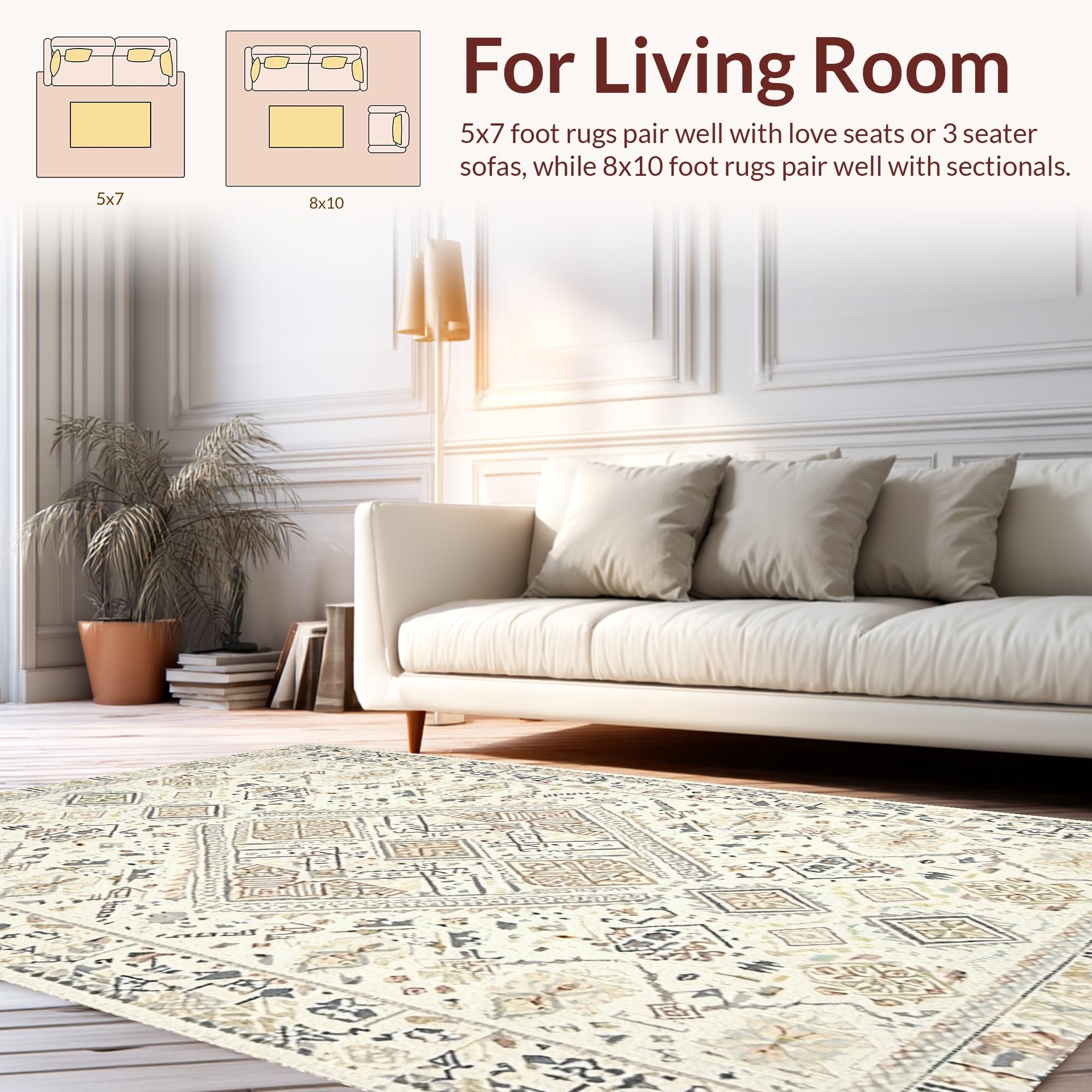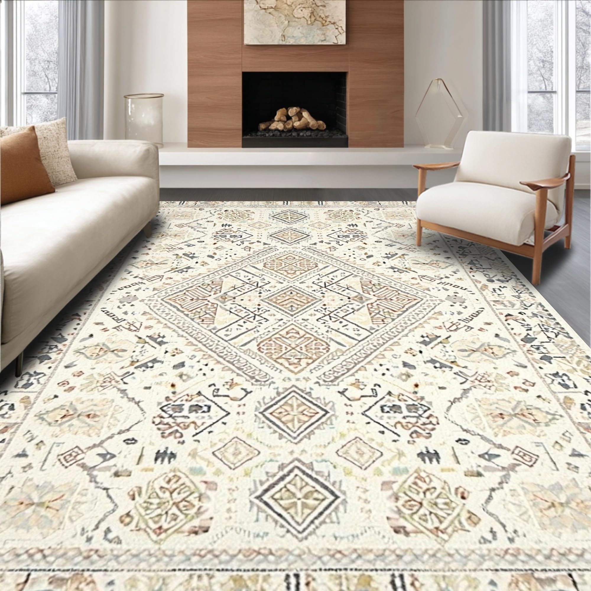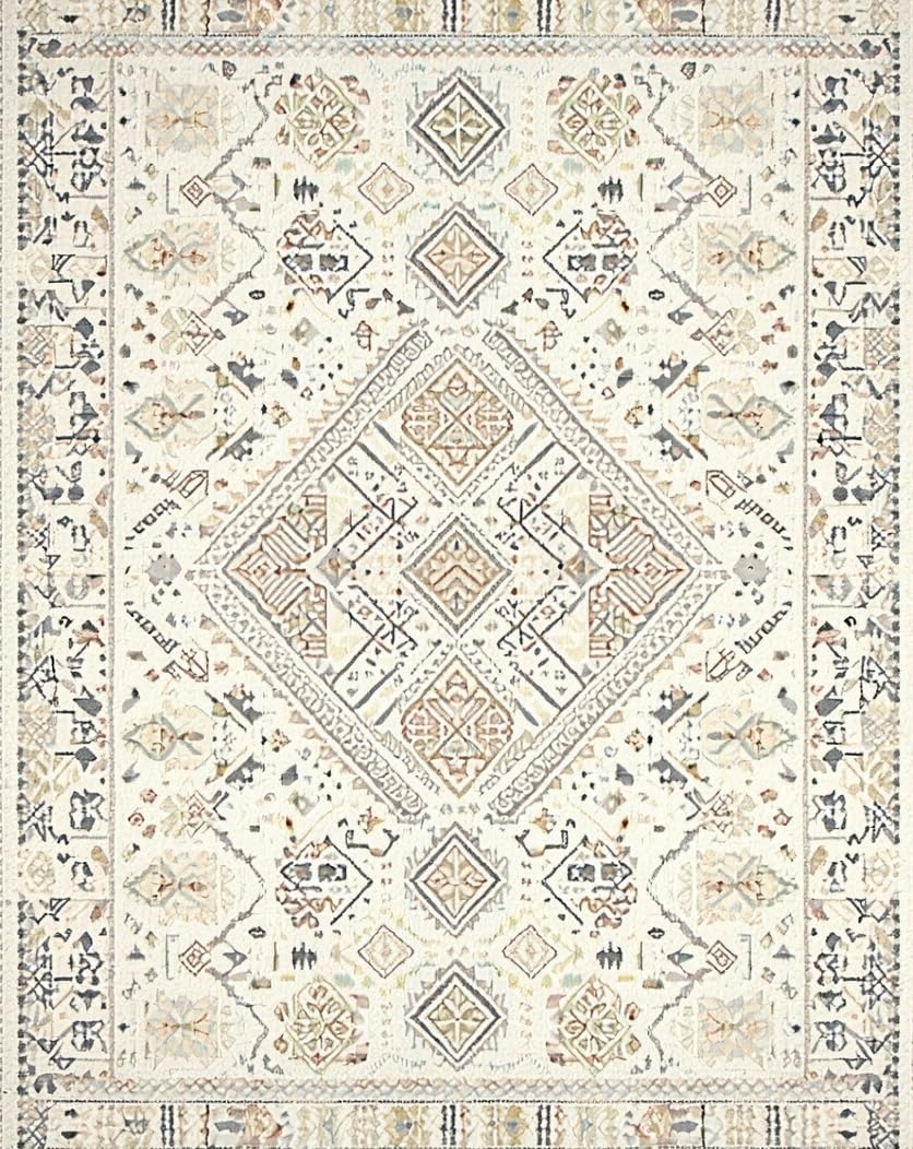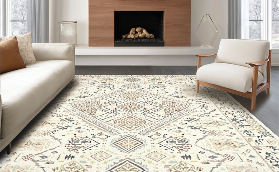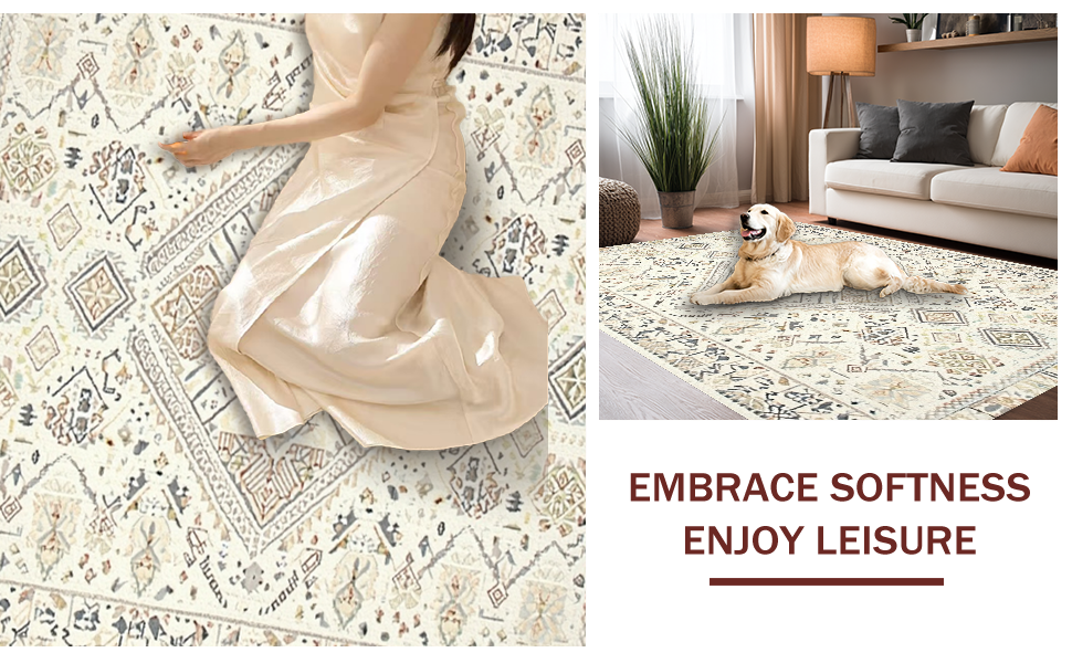 Ultra Soft Area Rug, Non Slip, Stain Resistant, Washable Area Rugs for Living Room, Bedroom, Whimsical Cream Crochet Insert Style(Beige) Overview: