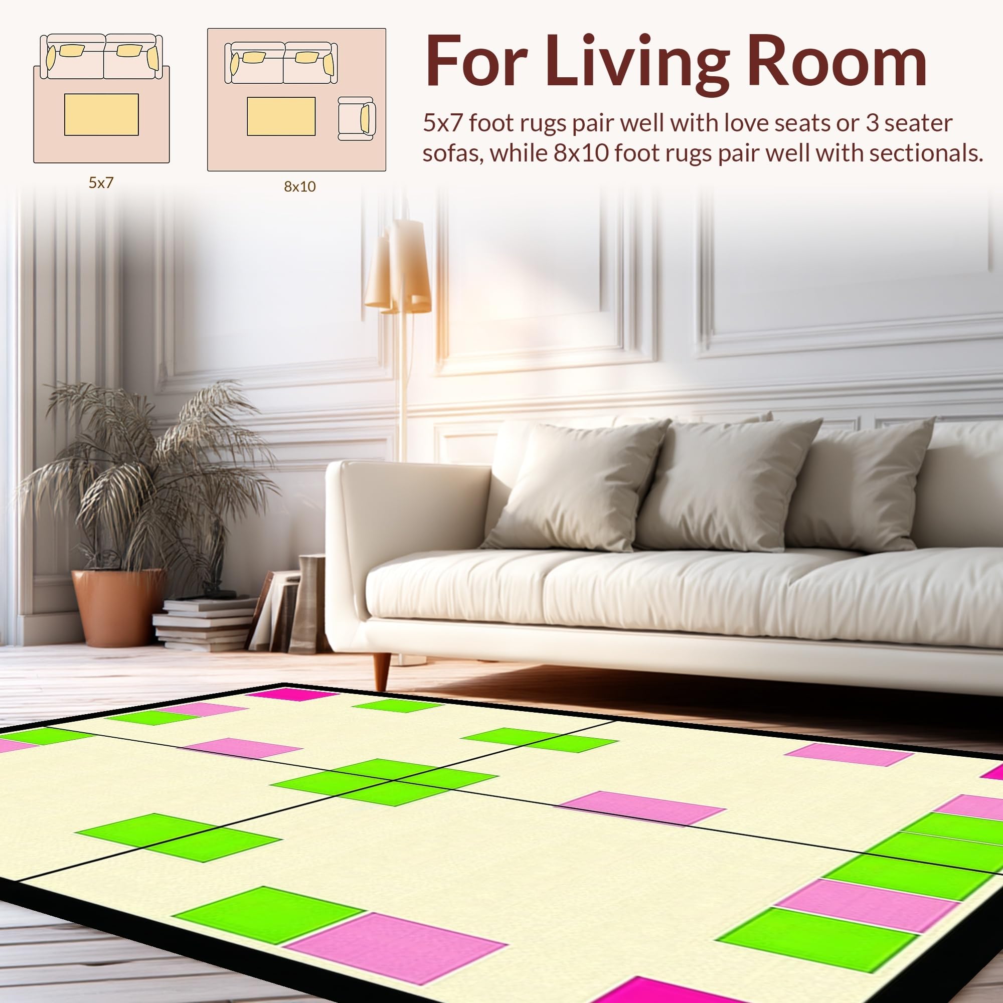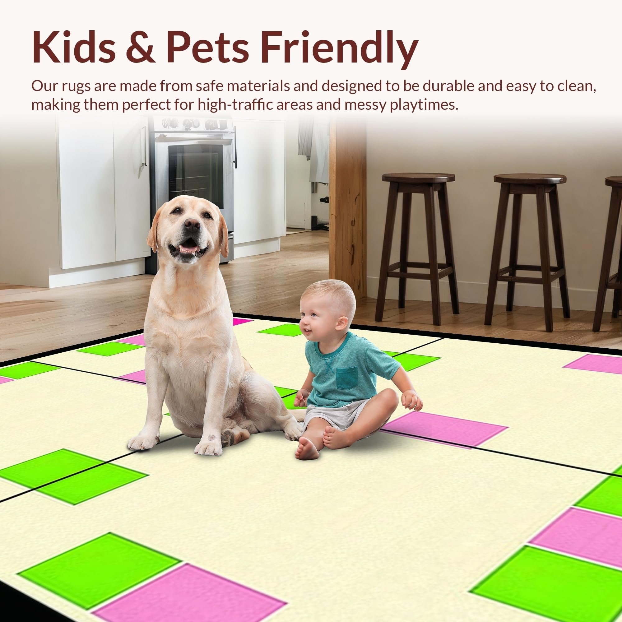 Ultra Soft Area Rug, Non Slip, Stain Resistant, Washable Area Rugs for Living Room, Bedroom, Whimsical Creamy Abstract Elements(Ivory) Overview: