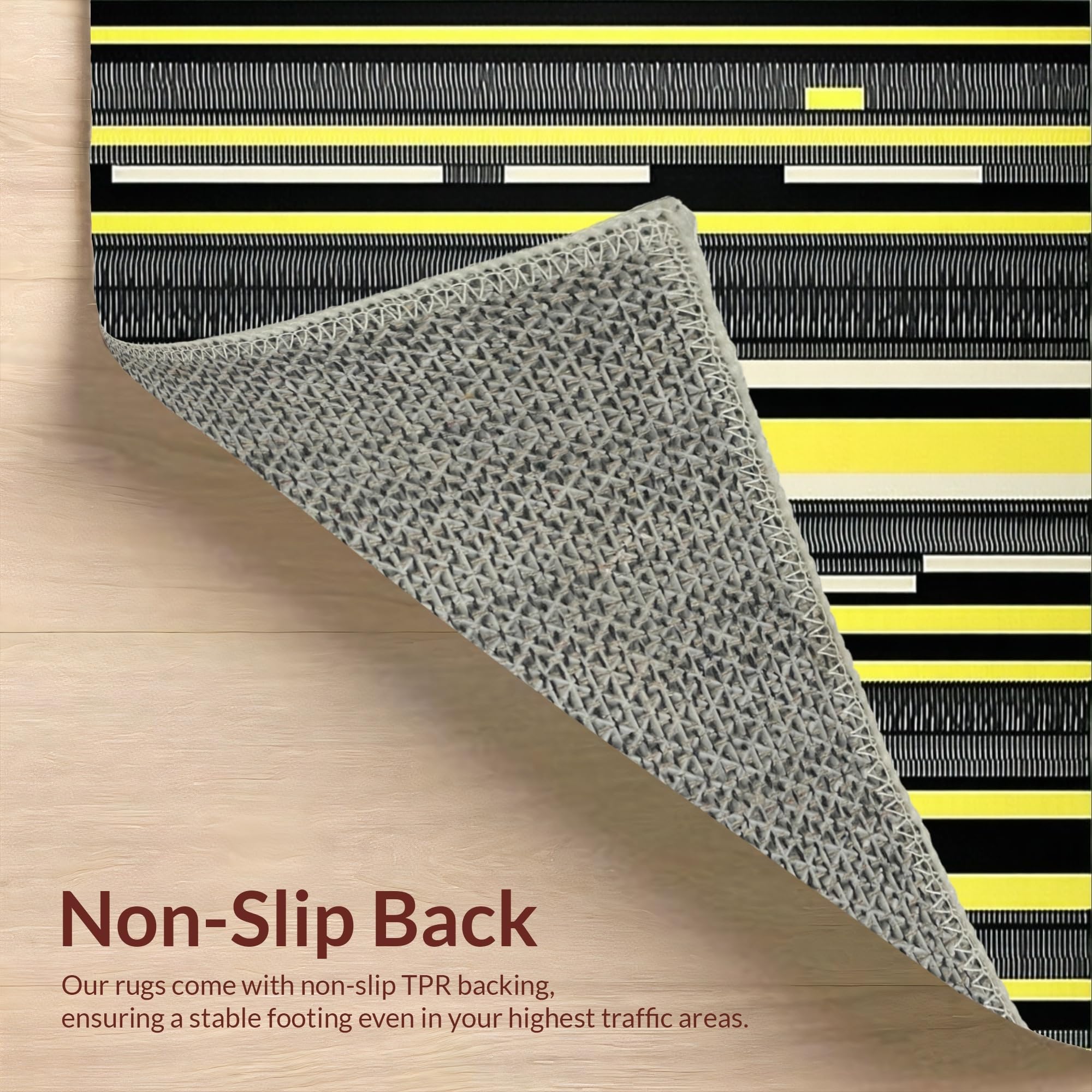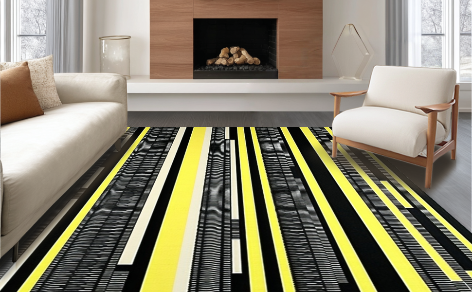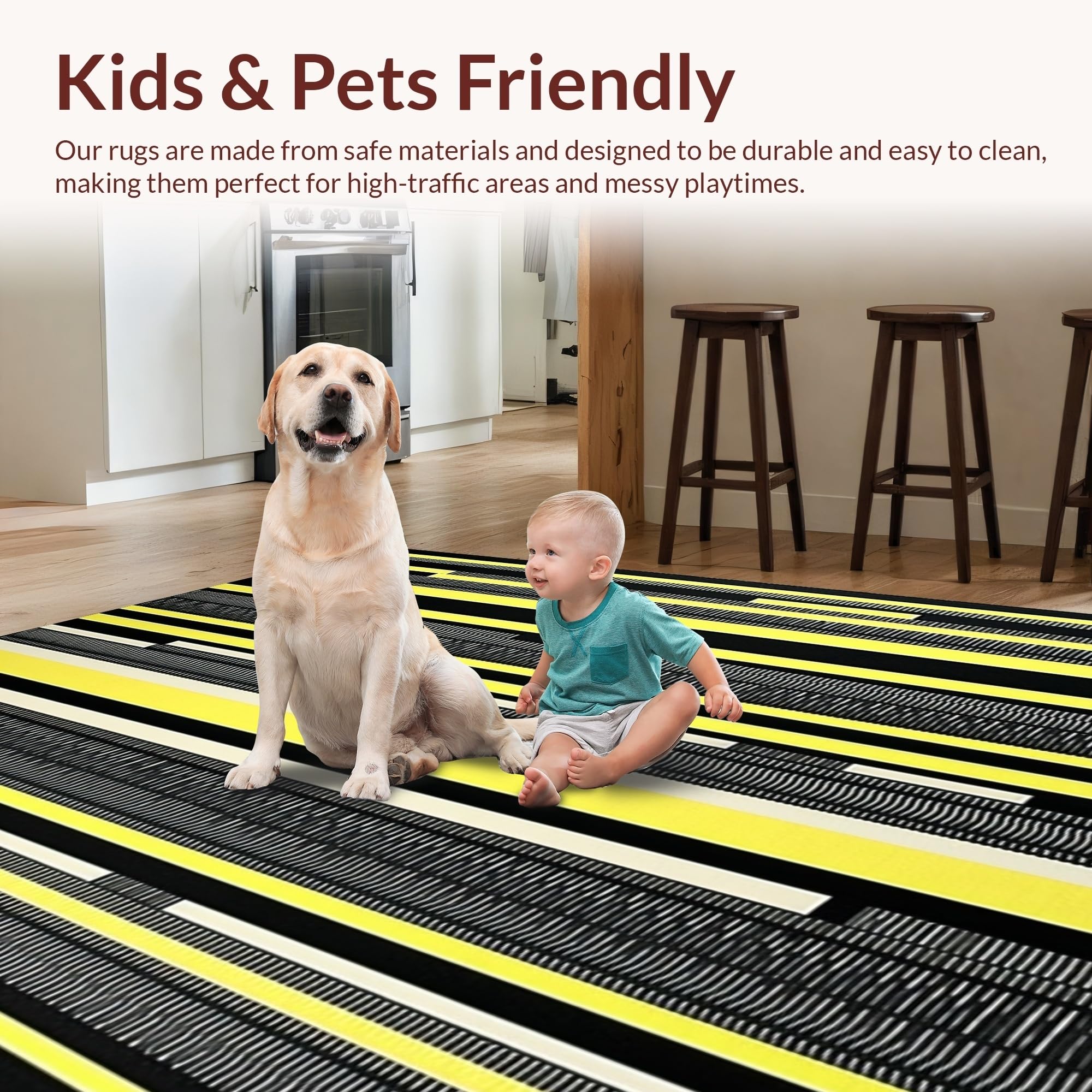 Ultra Soft Area Rug, Non Slip, Stain Resistant, Washable Area Rugs for Living Room, Bedroom, Whimsical Eclectic Striped Style(Black) Overview: