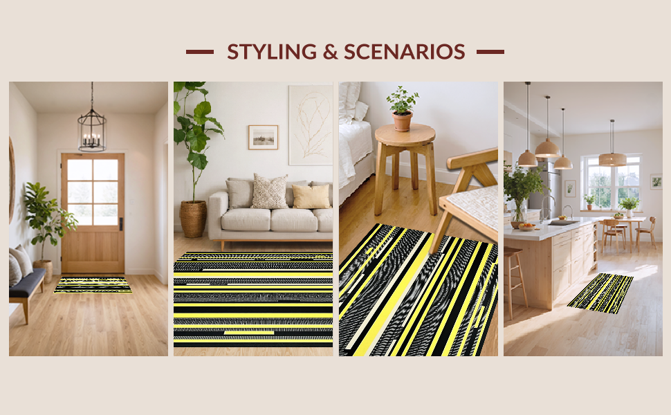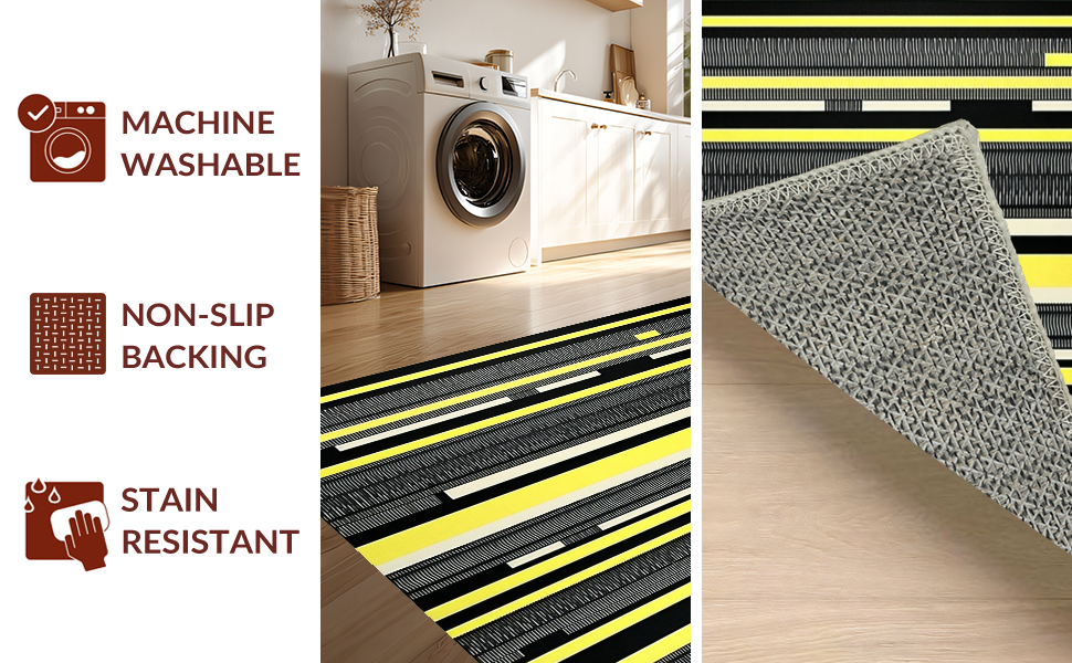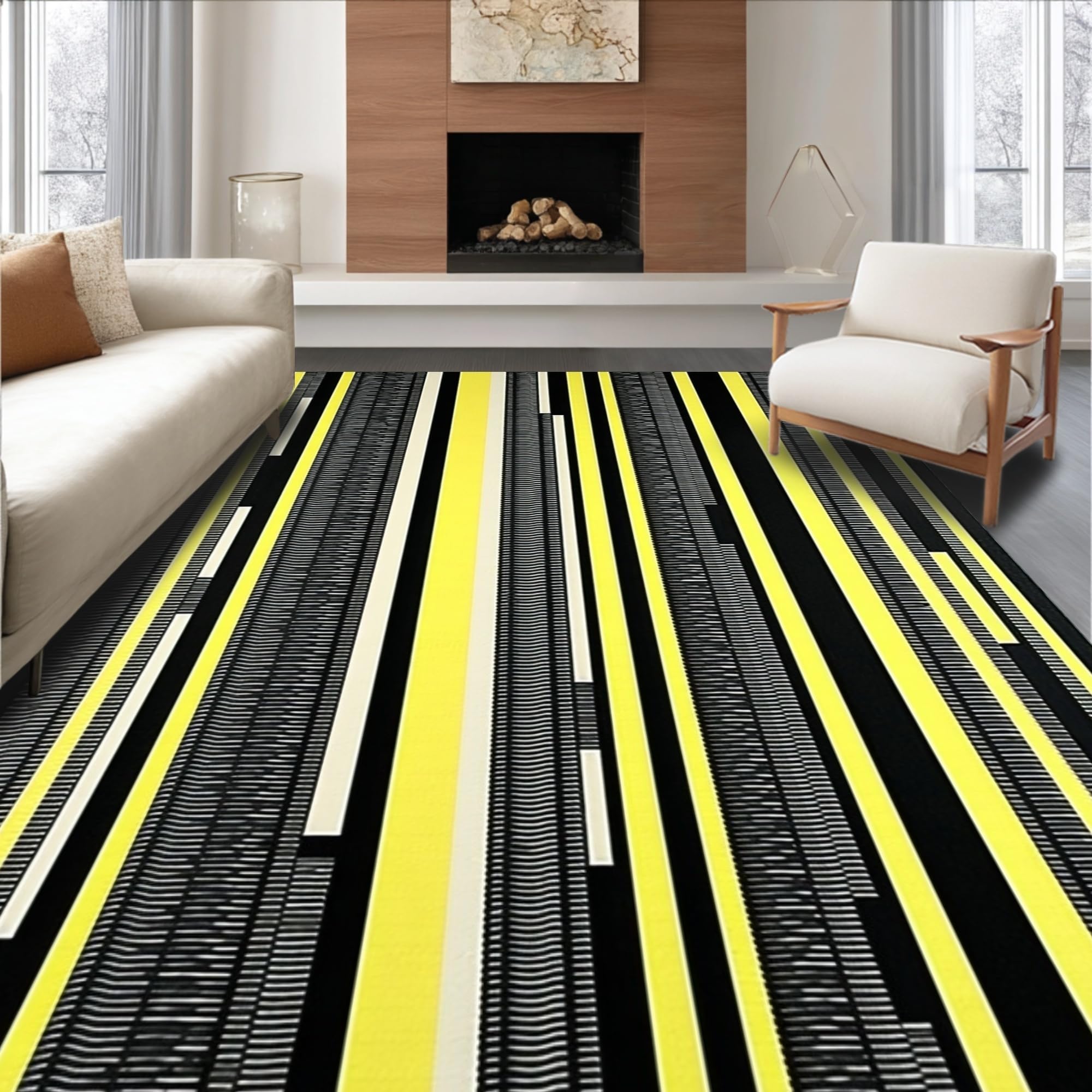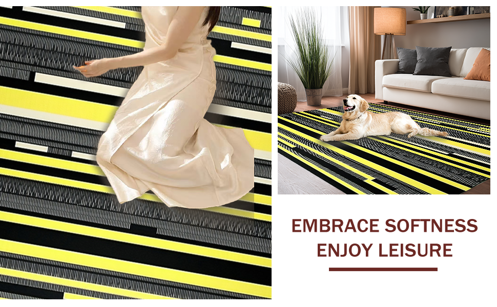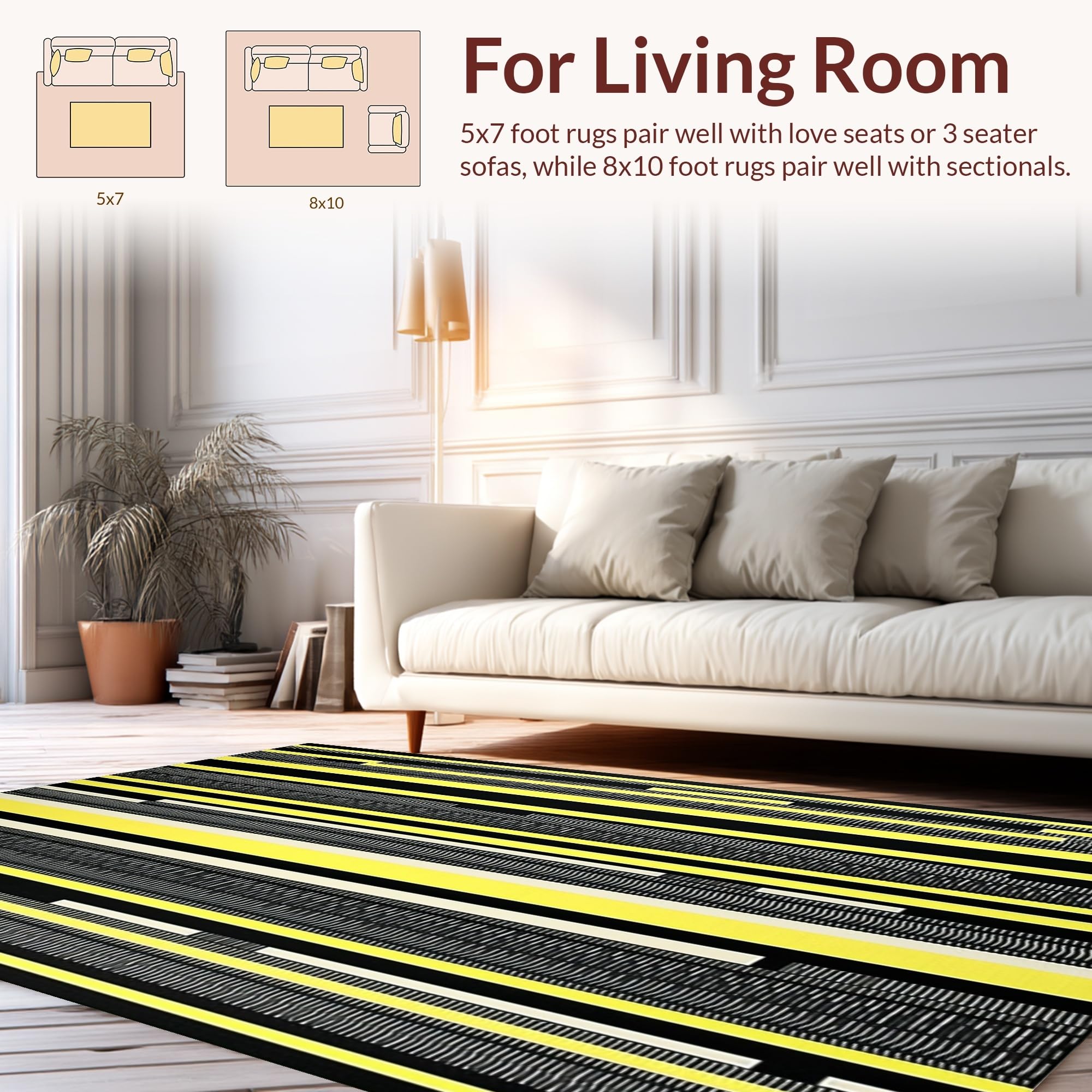 Ultra Soft Area Rug, Non Slip, Stain Resistant, Washable Area Rugs for Living Room, Bedroom, Whimsical Eclectic Striped Style(Black) Overview: