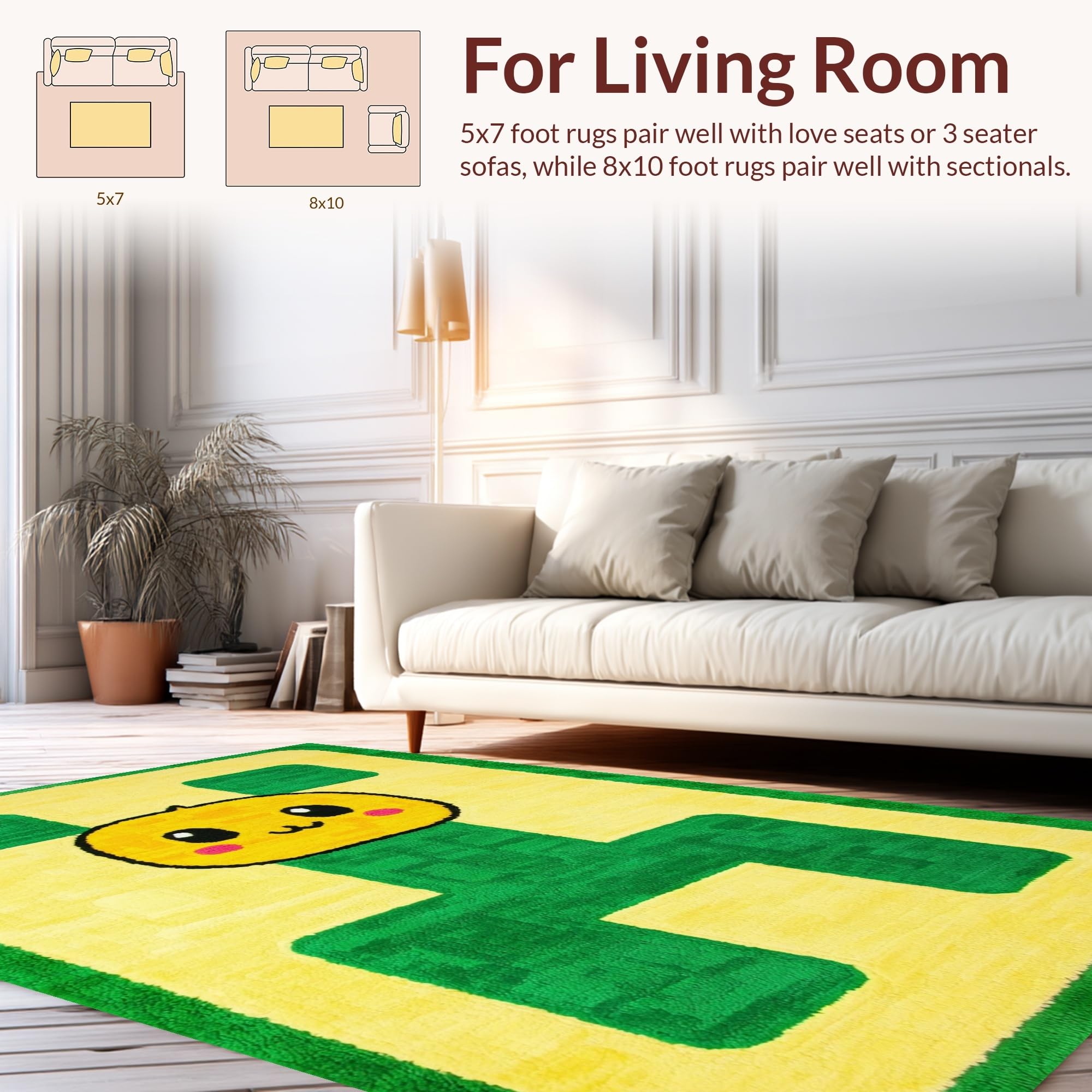 Ultra Soft Area Rug, Non Slip, Stain Resistant, Washable Area Rugs for Living Room, Bedroom, Whimsical Educational Creature Design(Yellow) Overview: