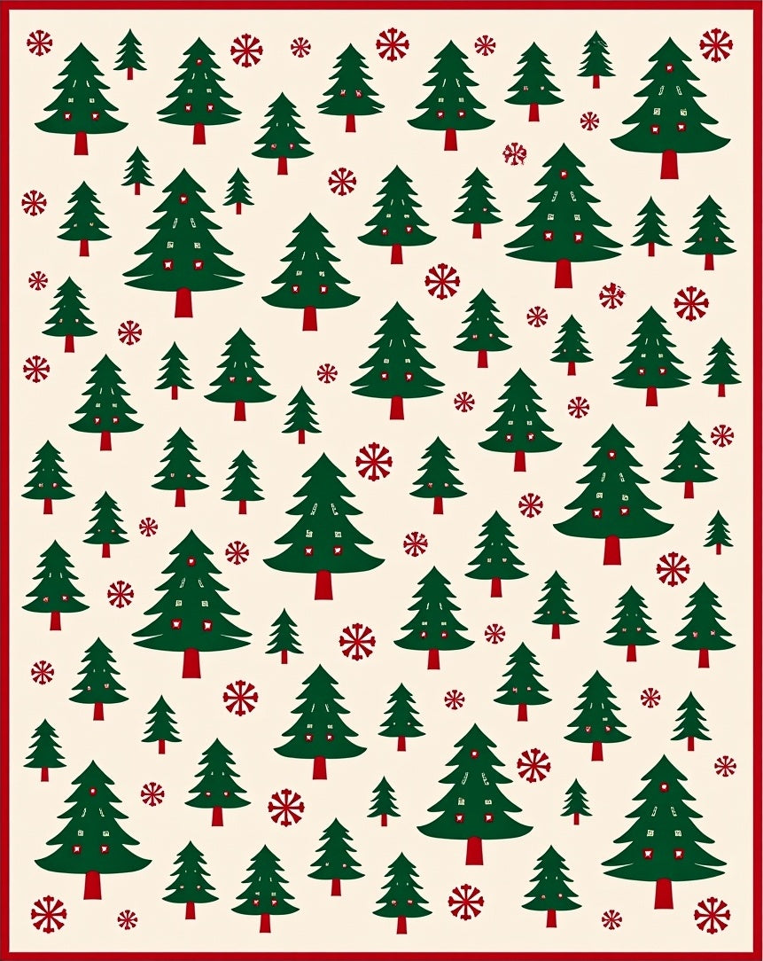 Whimsical Evergreen Forest with Playful Woodland Creatures and Snowfall(Green)