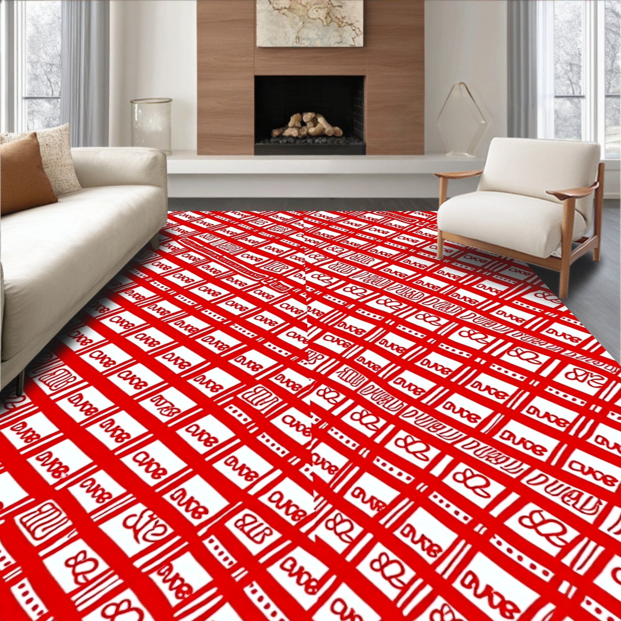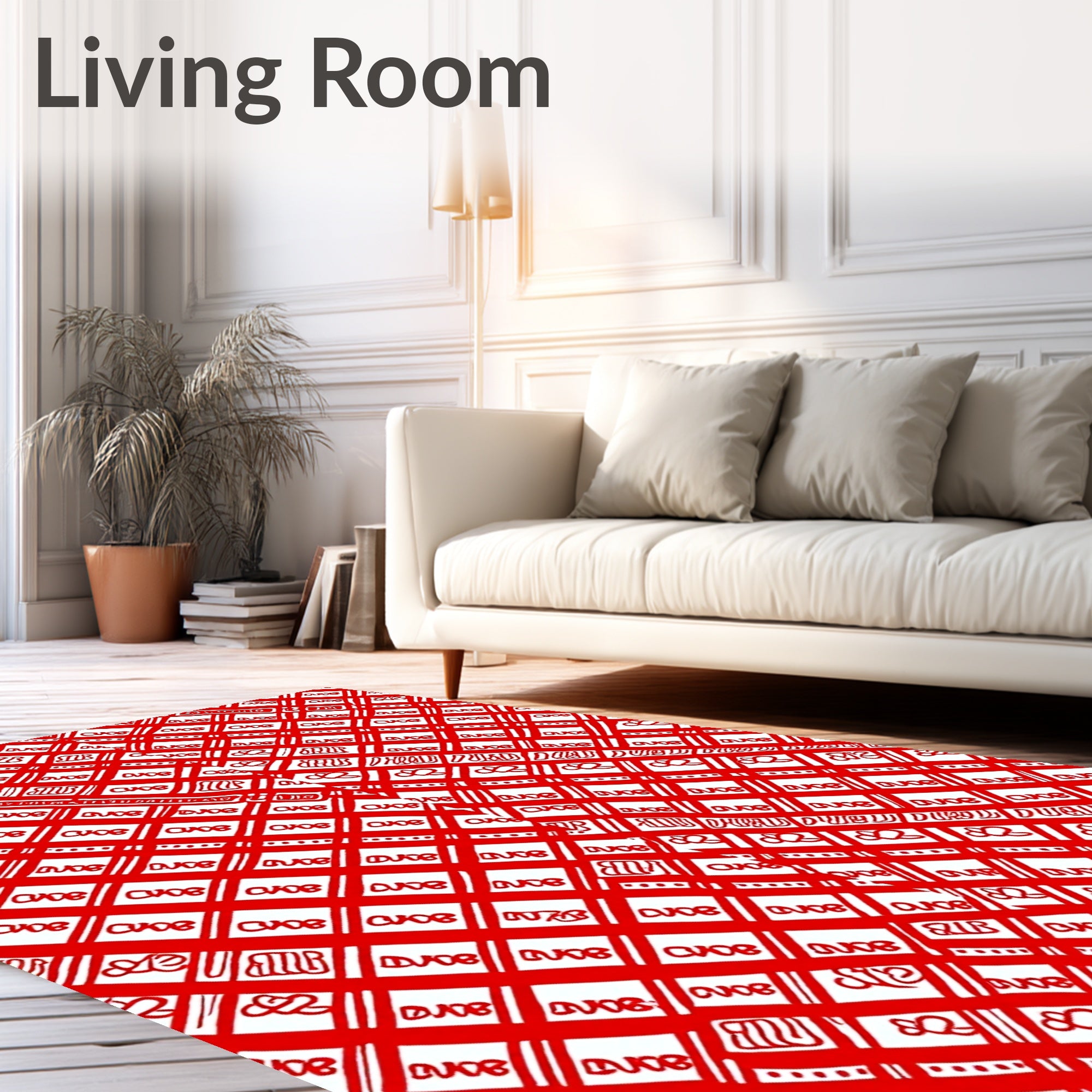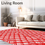 Ultra Soft Area Rug, Non Slip, Stain Resistant, Washable Area Rugs for Living Room, Bedroom, Whimsical Festive Gingham with Cane Stripe Interlocking Motifs(Red) Overview: