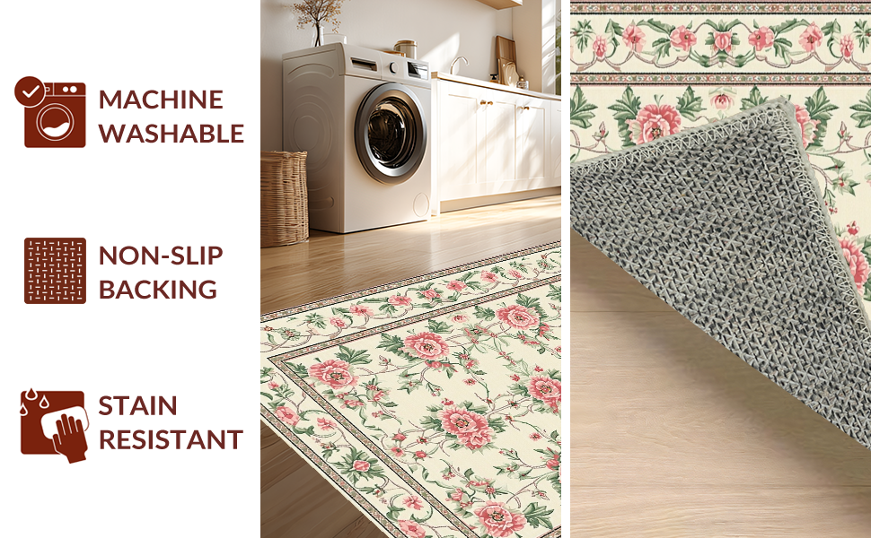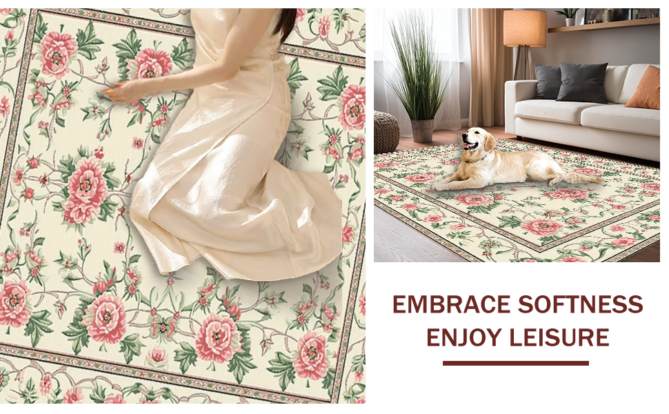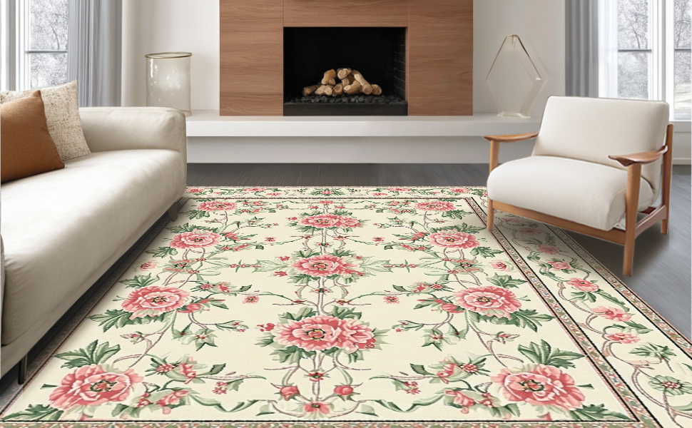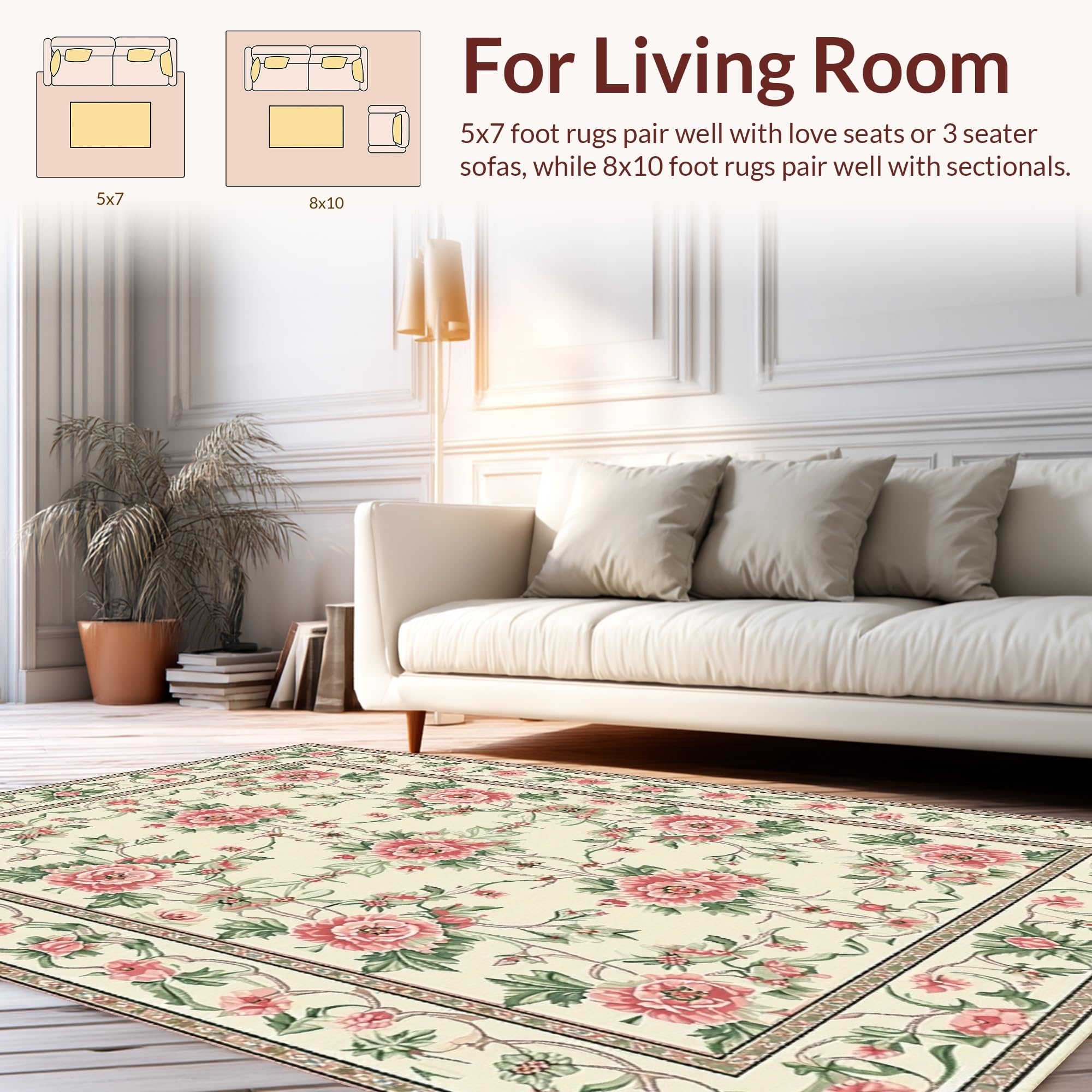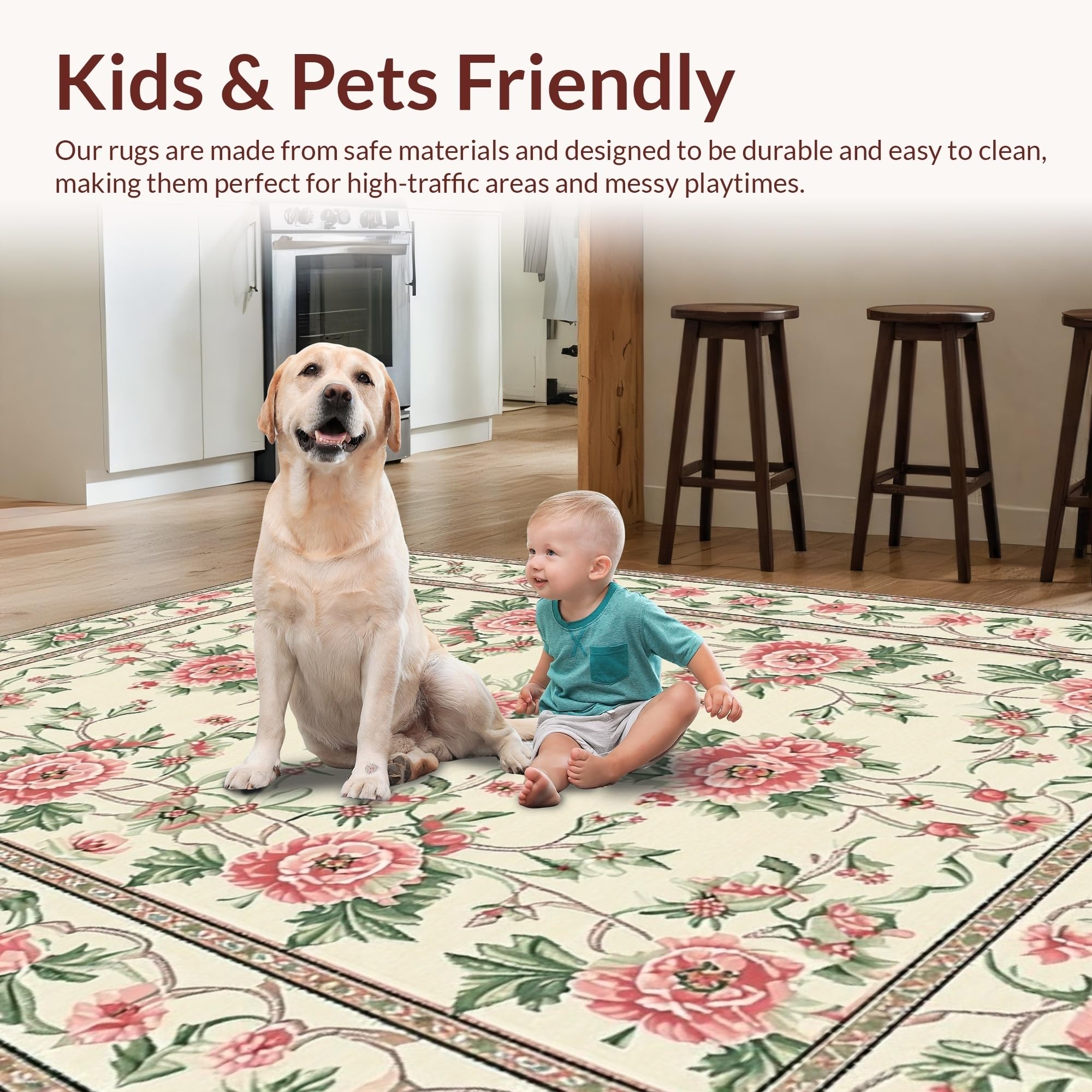 Ultra Soft Area Rug, Non Slip, Stain Resistant, Washable Area Rugs for Living Room, Bedroom, Whimsical Floral Tapestry Effect(Beige) Overview: