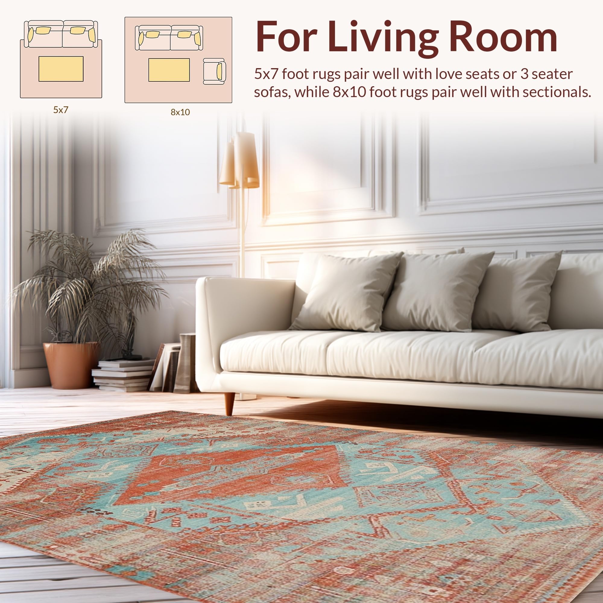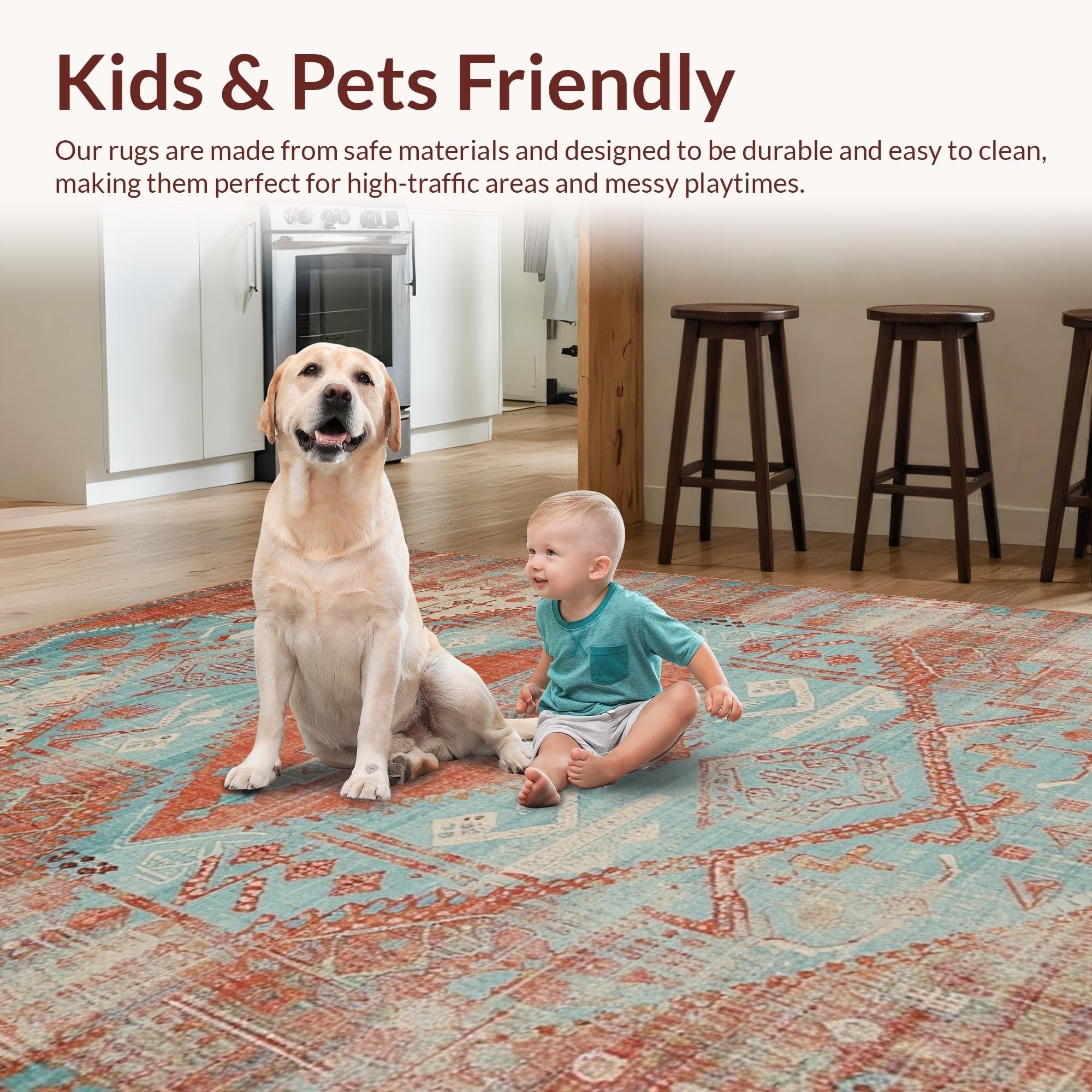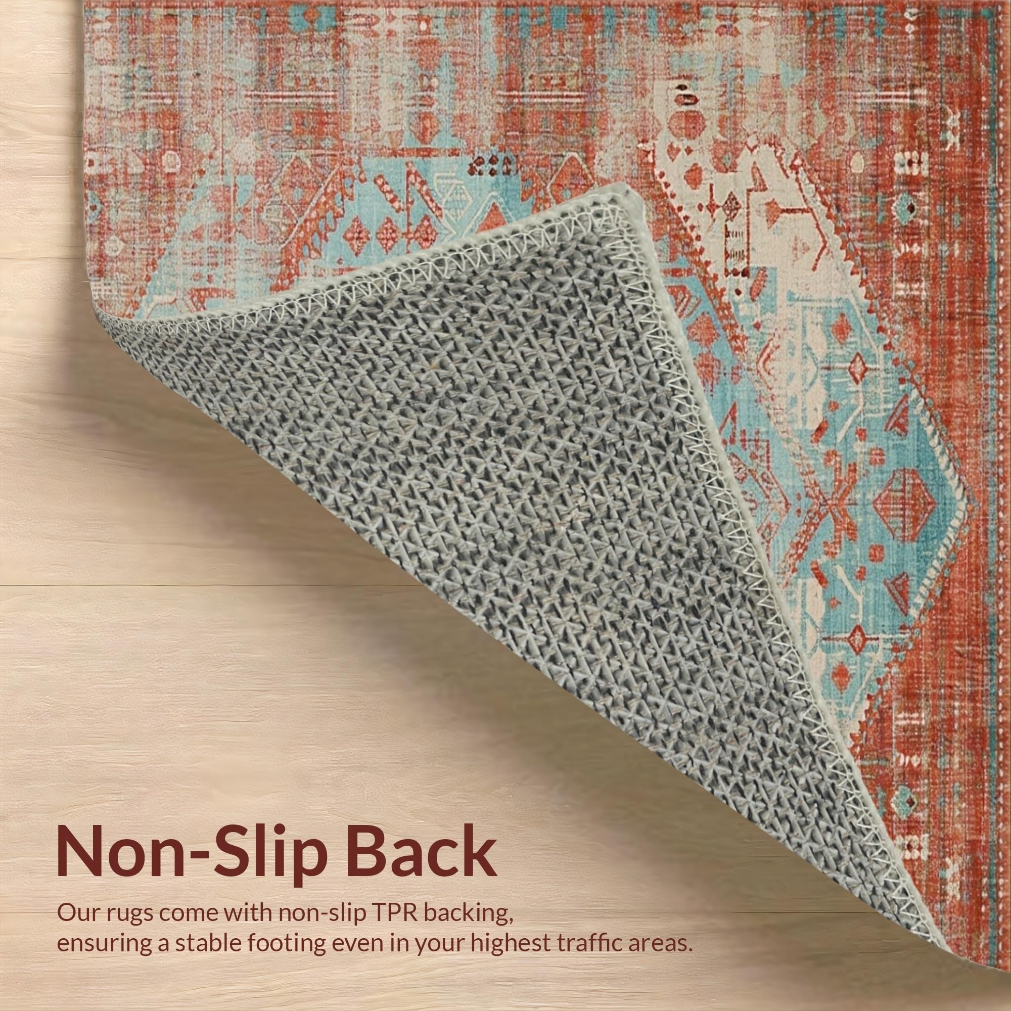 Ultra Soft Area Rug, Non Slip, Stain Resistant, Washable Area Rugs for Living Room, Bedroom, Whimsical Floral Trellis with Vintage Flair(Red) Overview: