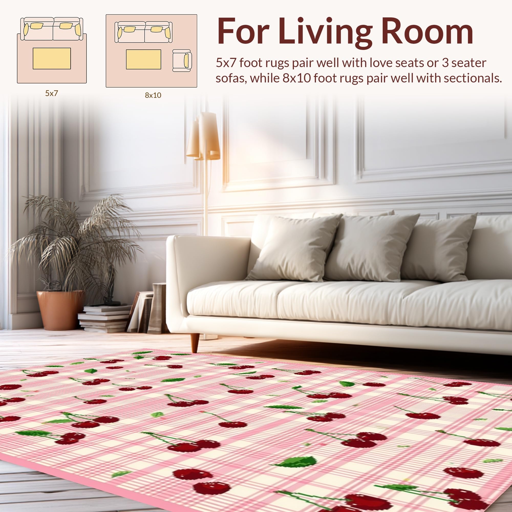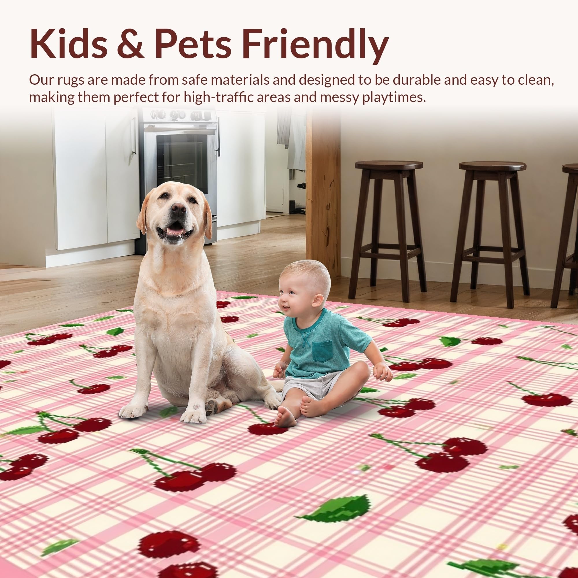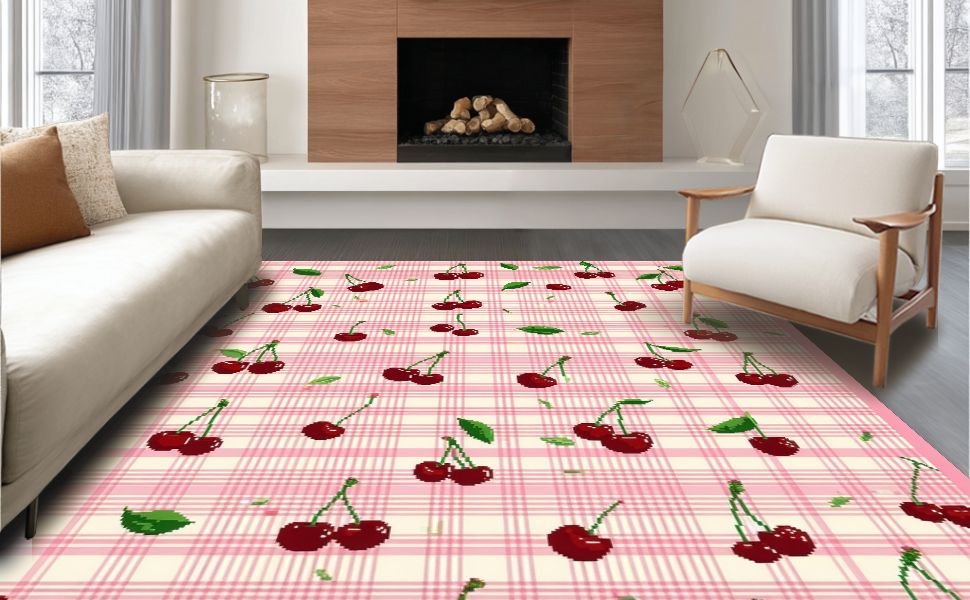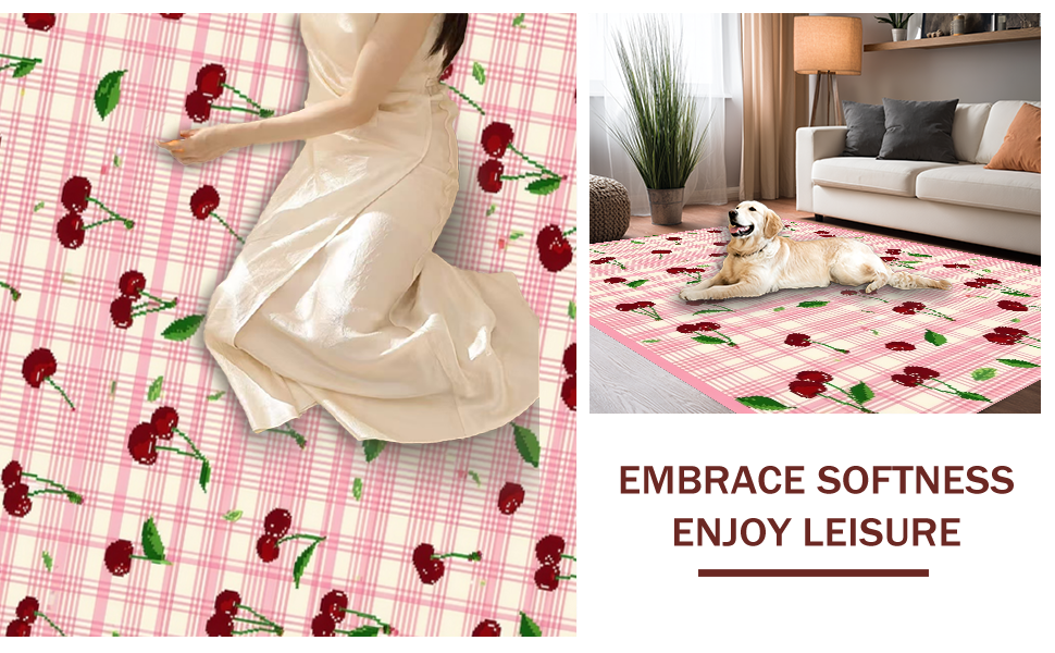 Ultra Soft Area Rug, Non Slip, Stain Resistant, Washable Area Rugs for Living Room, Bedroom, Whimsical Fluffy Cherry Delight(Pink) Overview:
