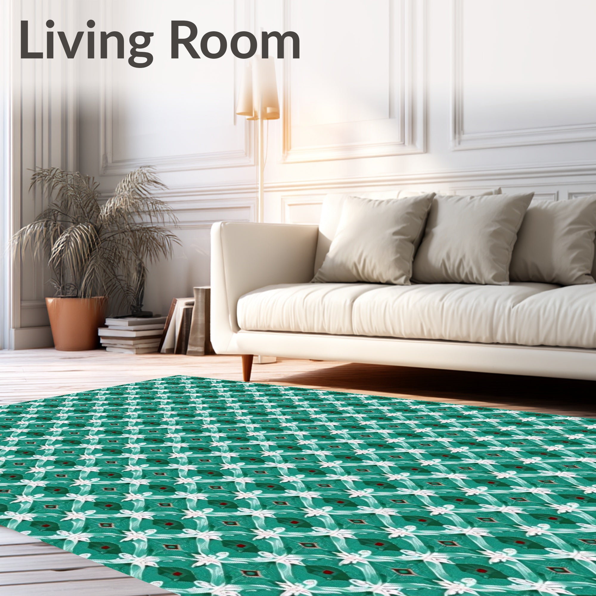Ultra Soft Area Rug, Non Slip, Stain Resistant, Washable Area Rugs for Living Room, Bedroom, Whimsical Frosty Wonderland Trellis(Green) Overview:
