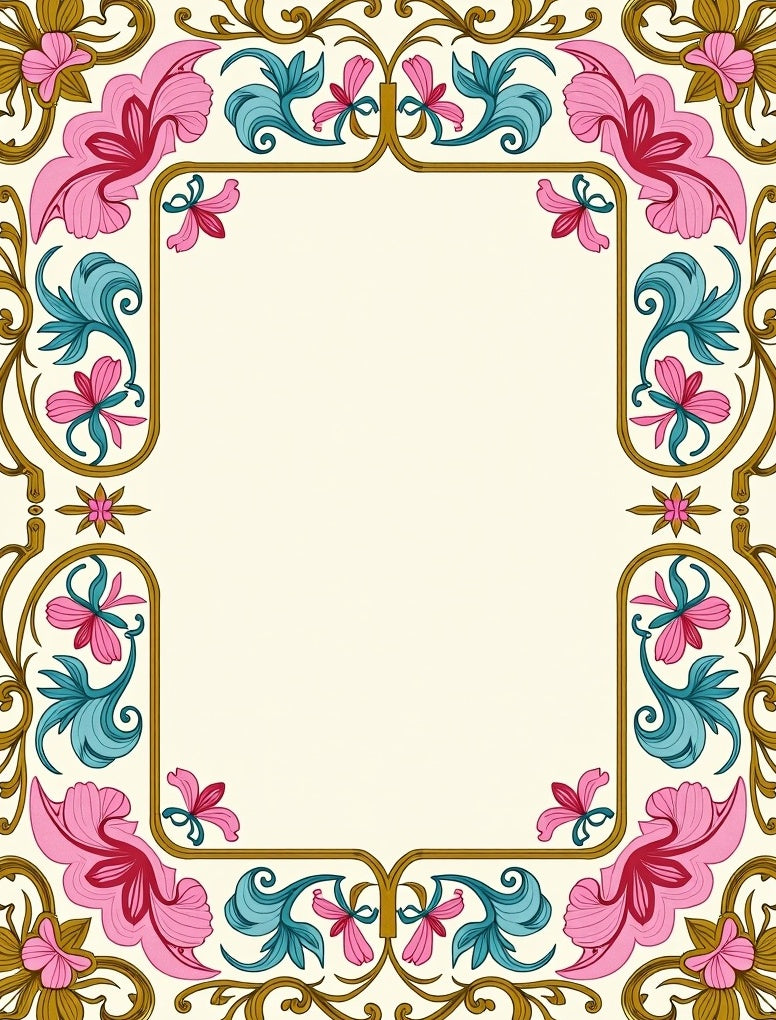 Whimsical Garden Blooms with Interlocking Rococo Filigree(Pink)