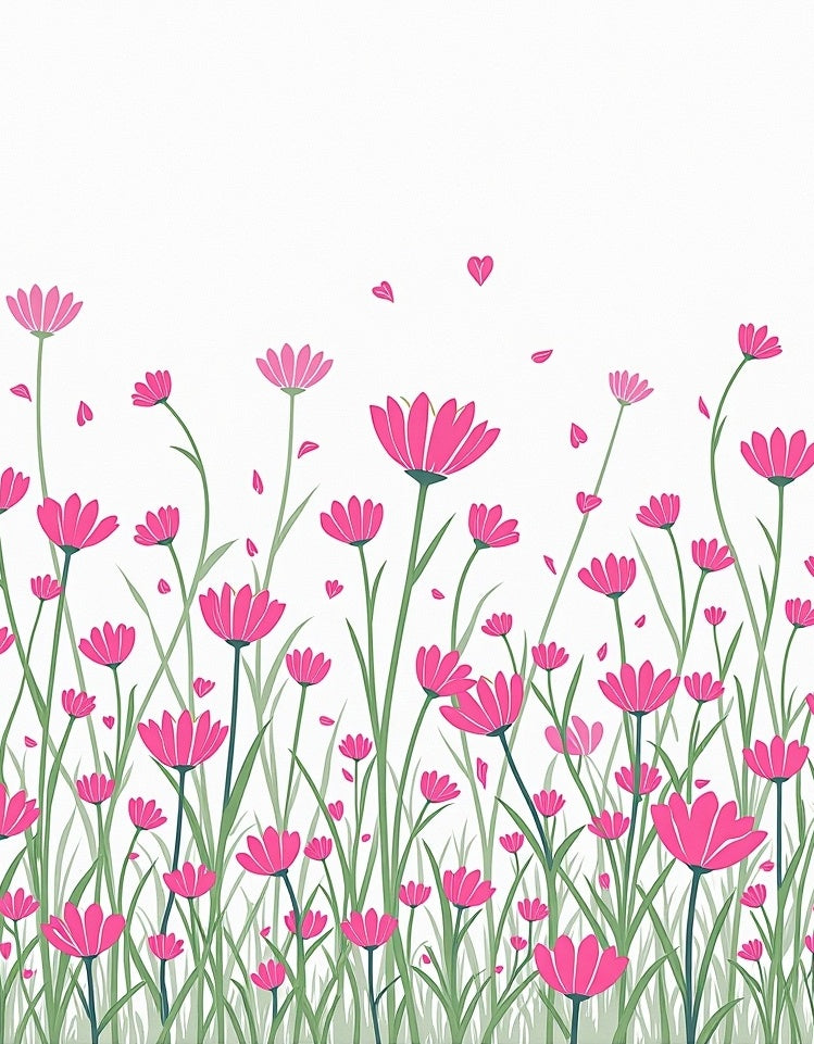 Whimsical Garden Meadow Design with Cottage Florals(Pink)
