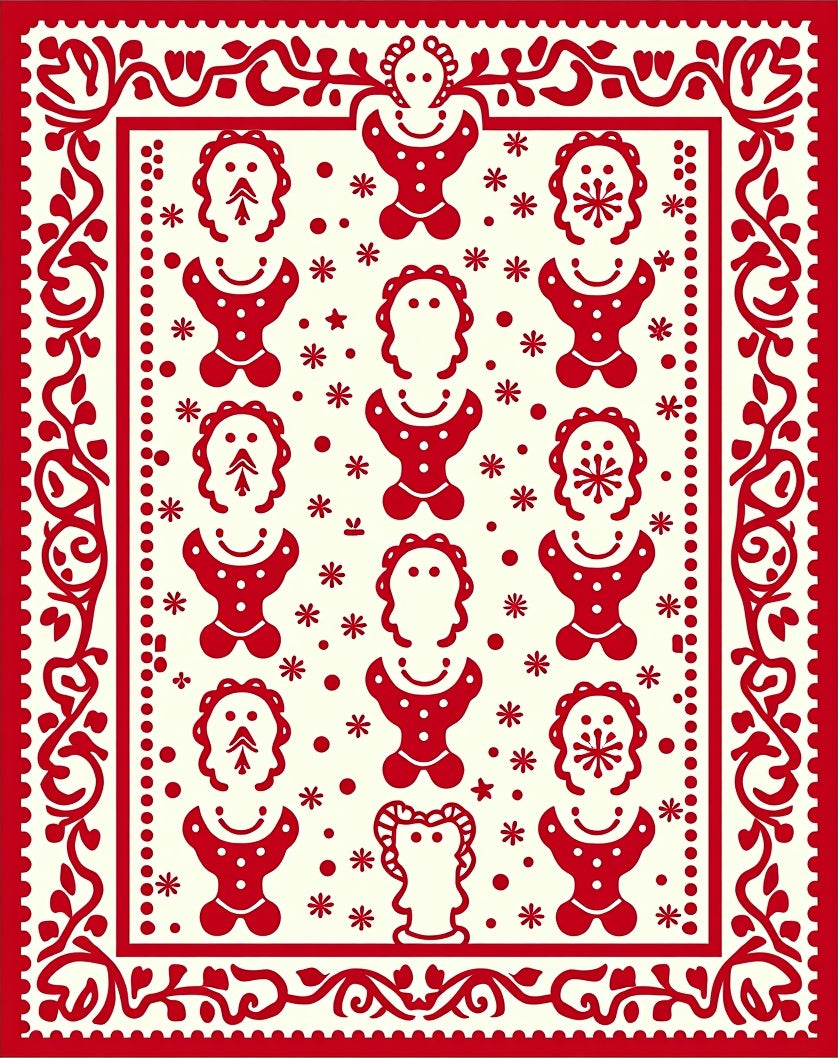 Whimsical Gingerbread Interlocking Folk Art Holiday Motif(Red)
