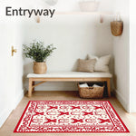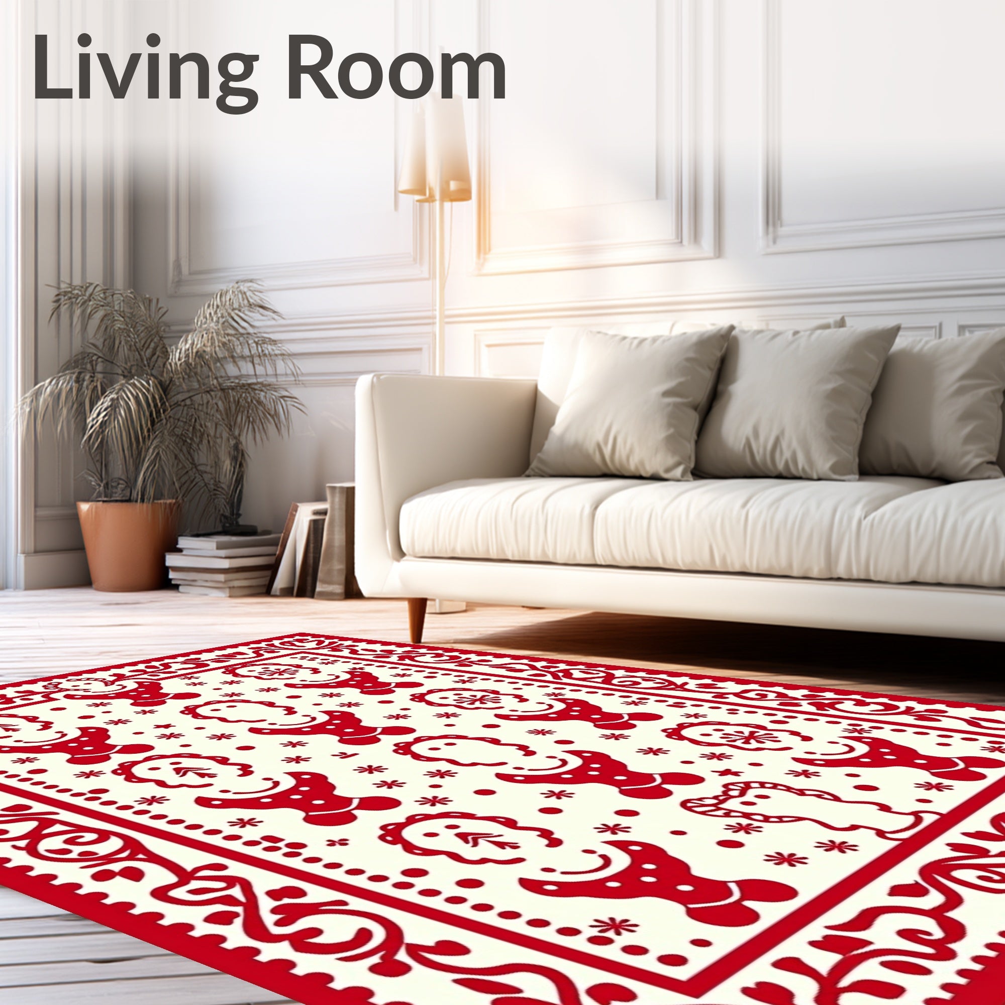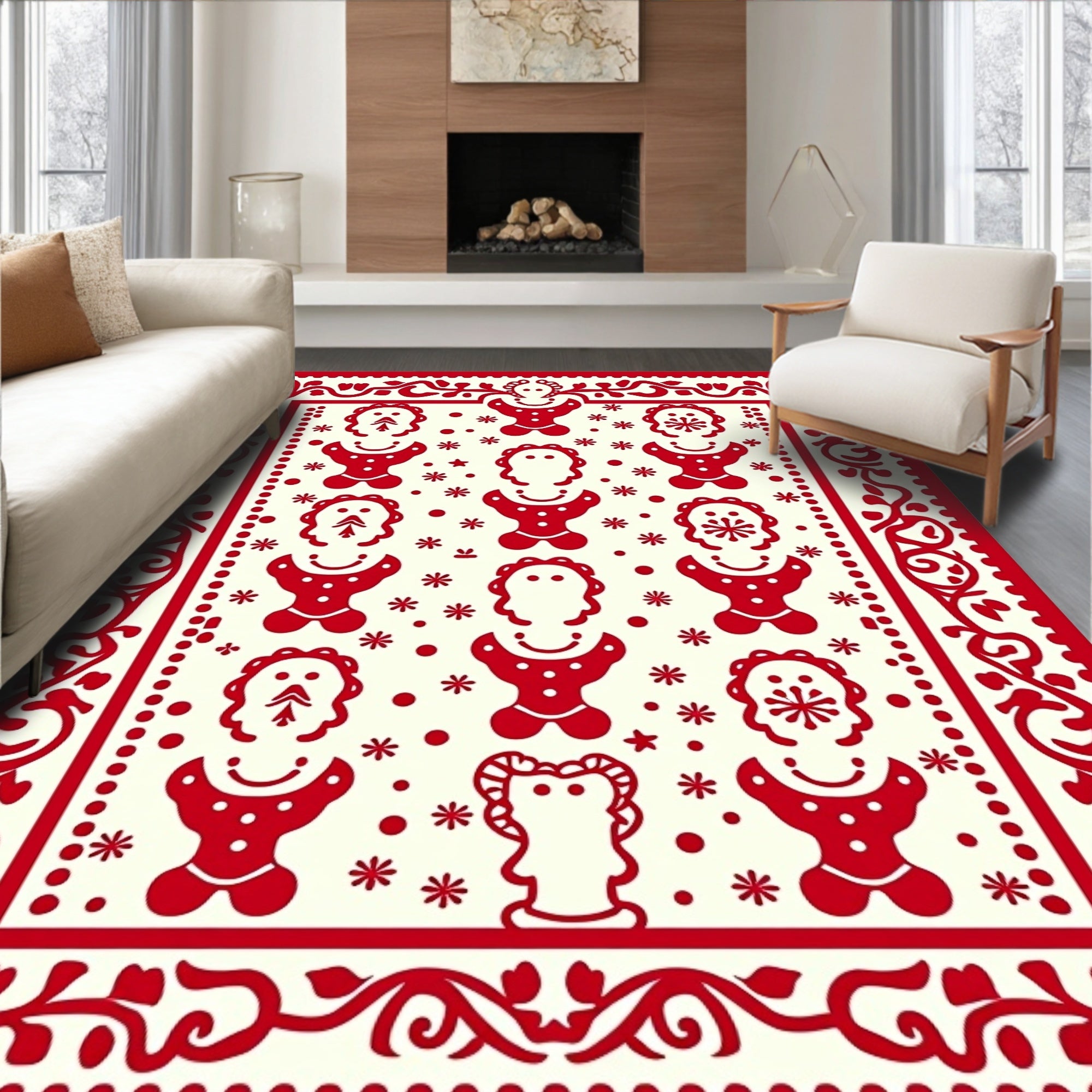 Ultra Soft Area Rug, Non Slip, Stain Resistant, Washable Area Rugs for Living Room, Bedroom, Whimsical Gingerbread Interlocking Folk Art Holiday Motif(Red) Overview: