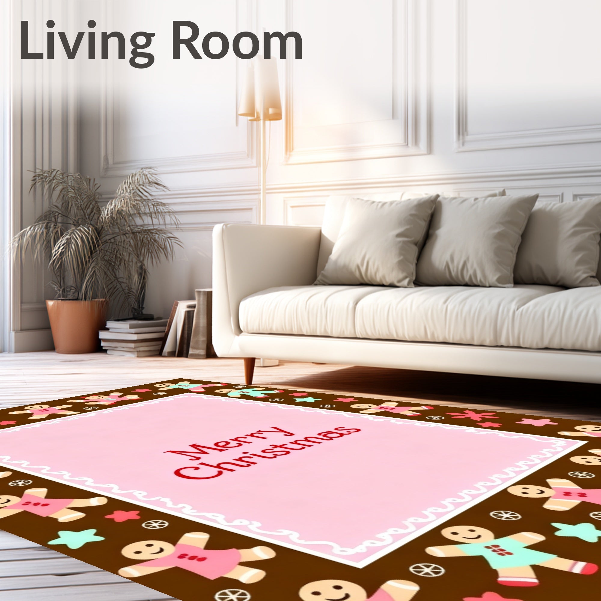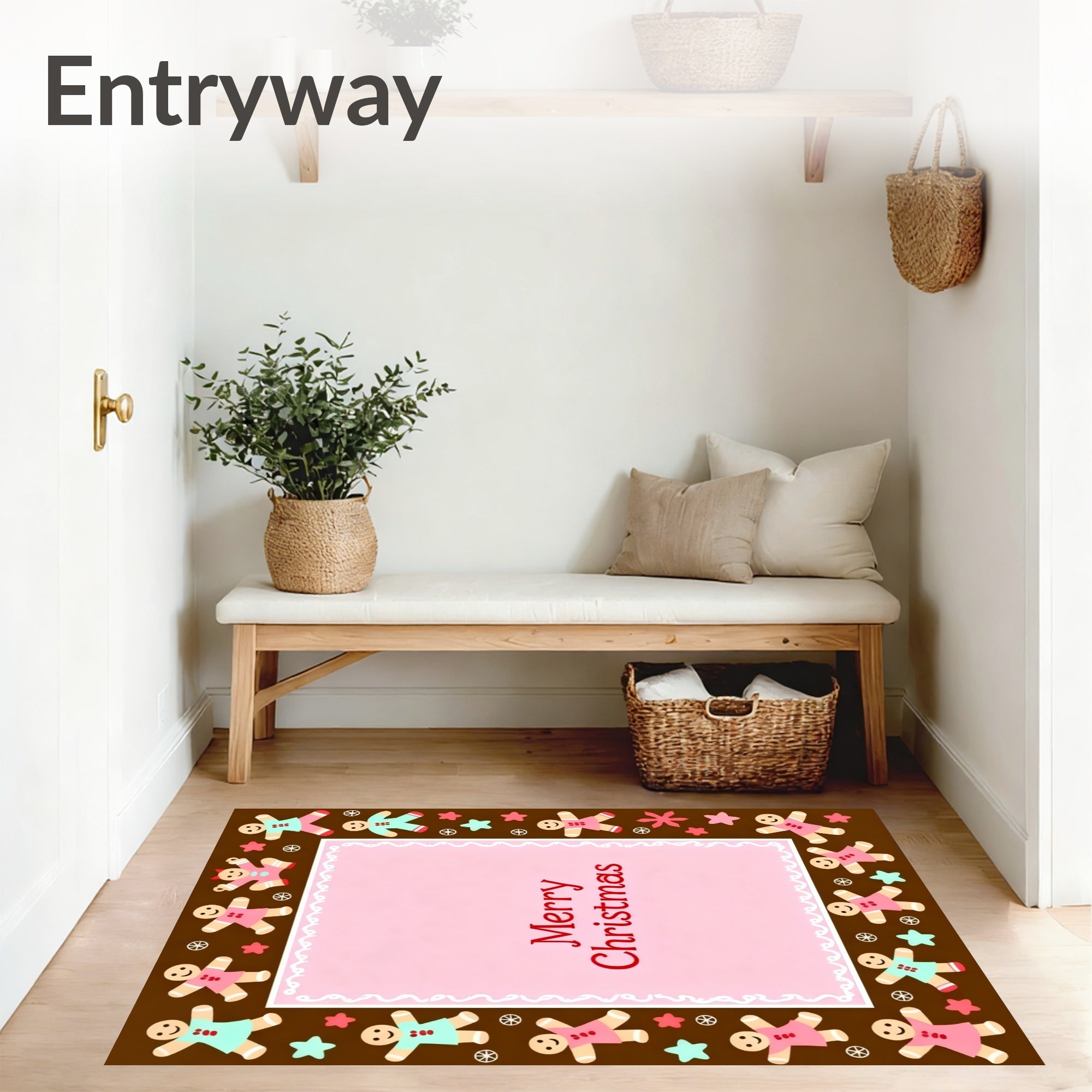 Flatwoven High Traffic Area Rug, Whimsical Gingerbread Joyful Winter Celebration Accent, Non Slip, Stain Resistant, Washable Area Rugs for Living Room, Bedroom (Brown) Overview: