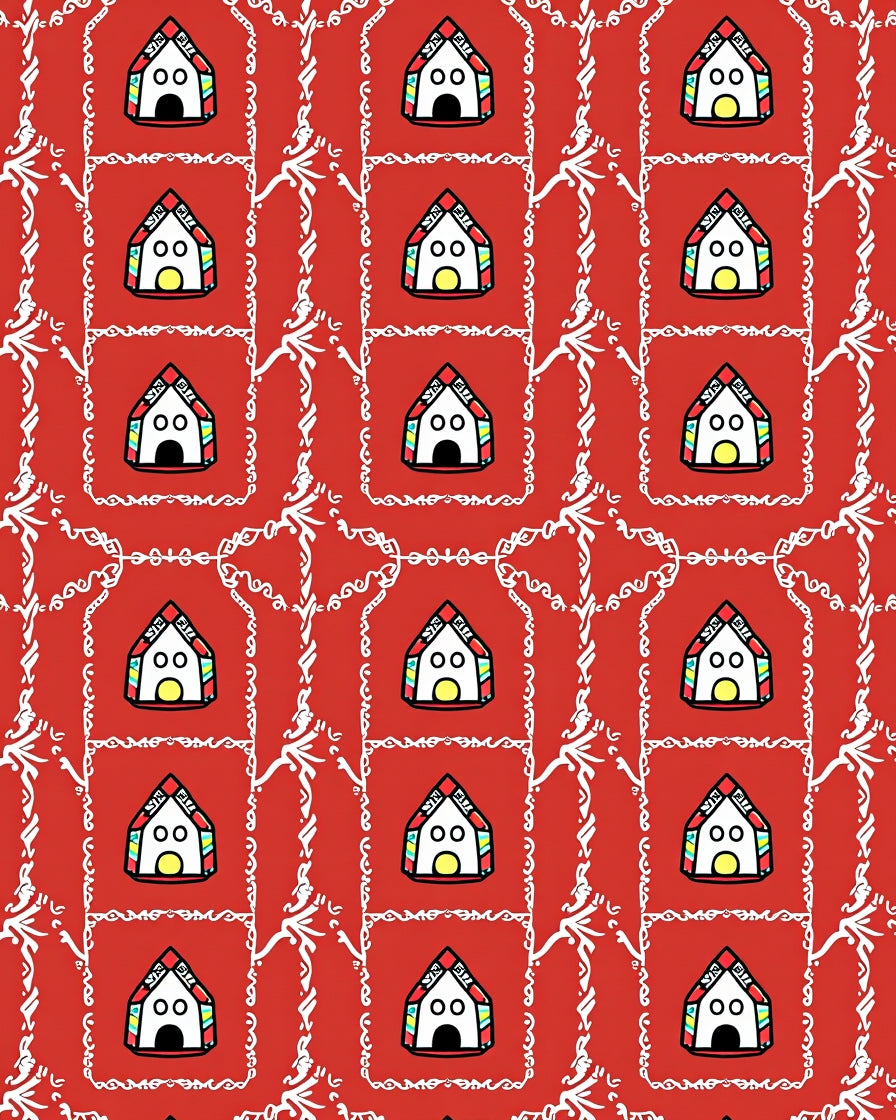 Whimsical Gingerbread Village Seasonal Decoration(Red)