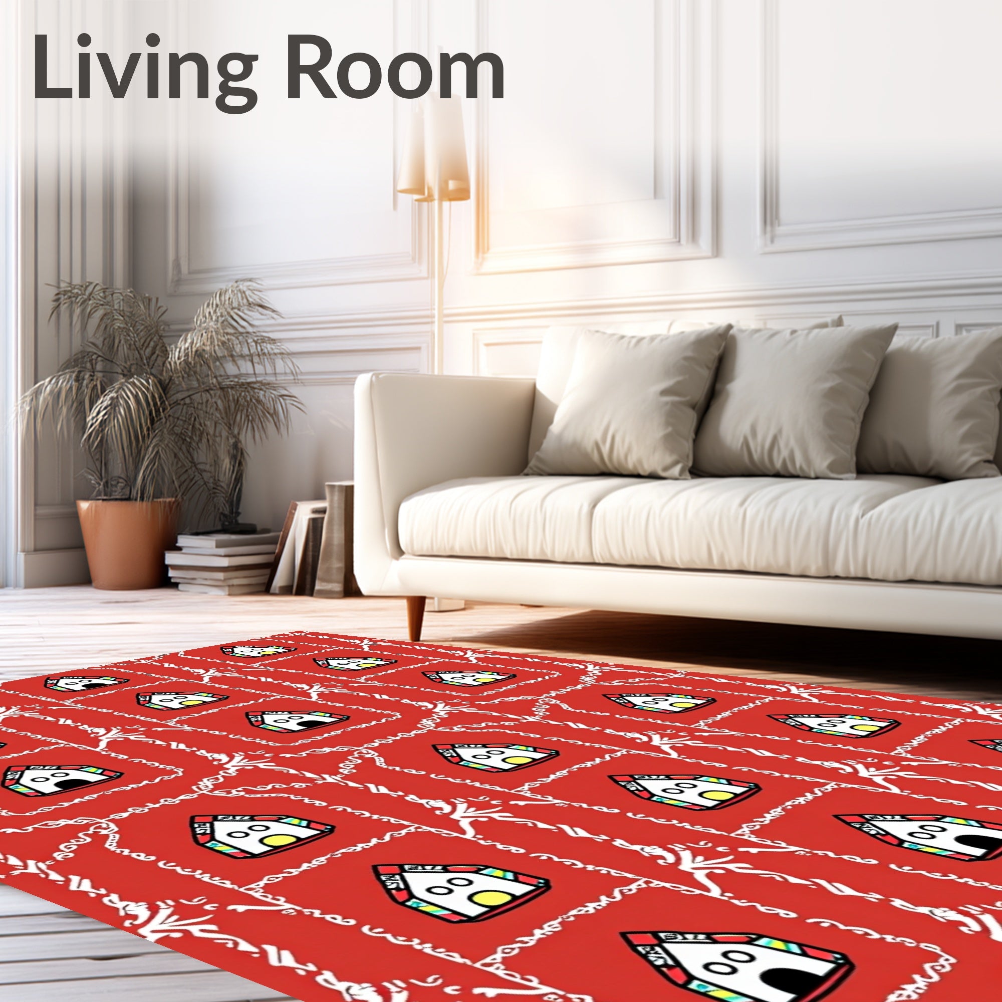 Ultra Soft Area Rug, Non Slip, Stain Resistant, Washable Area Rugs for Living Room, Bedroom, Whimsical Gingerbread Village Seasonal Decoration(Red) Overview: