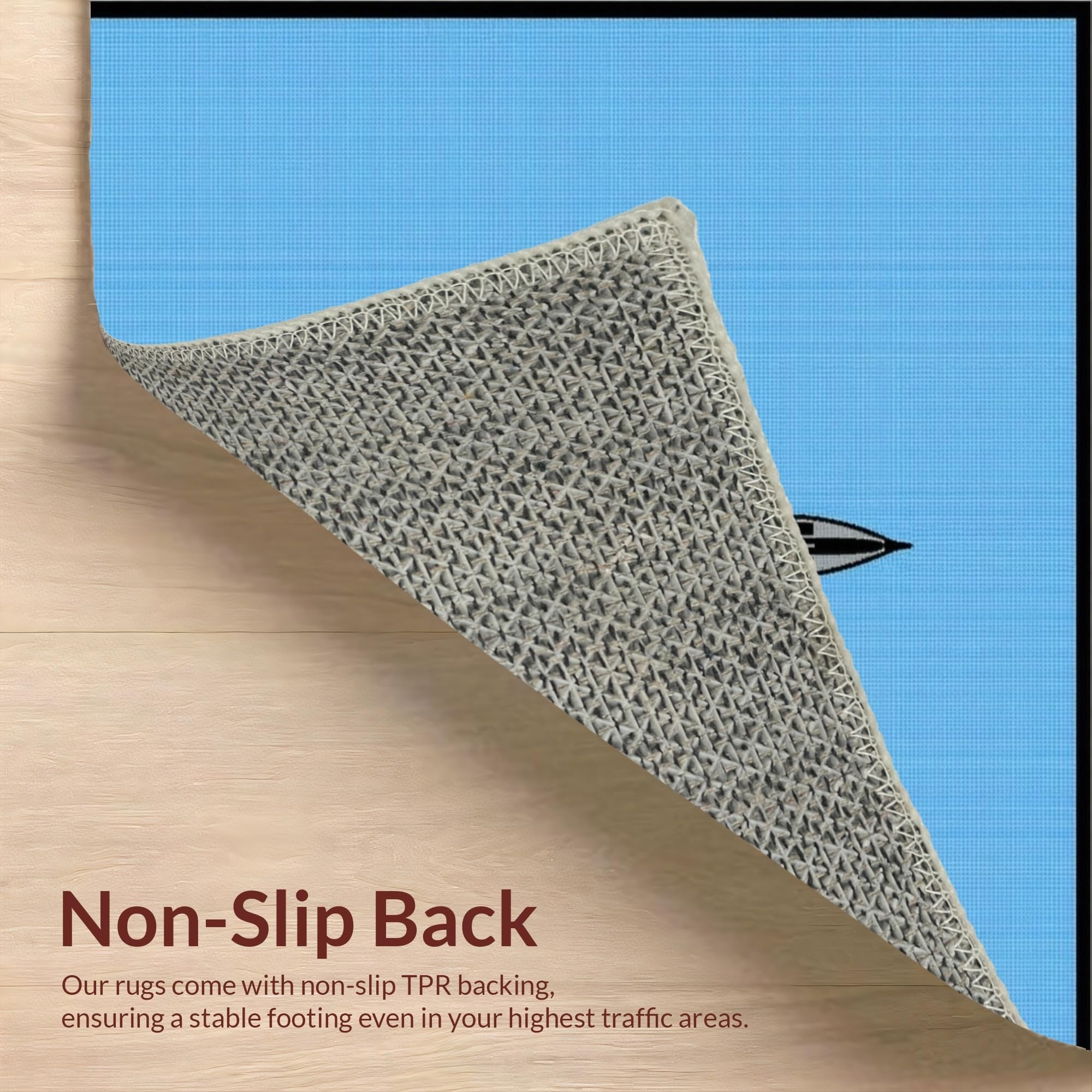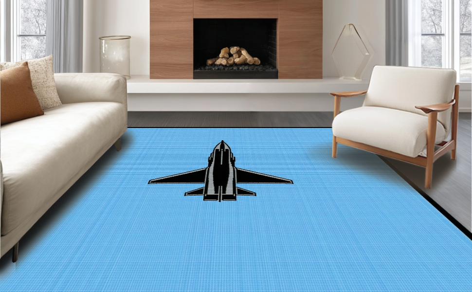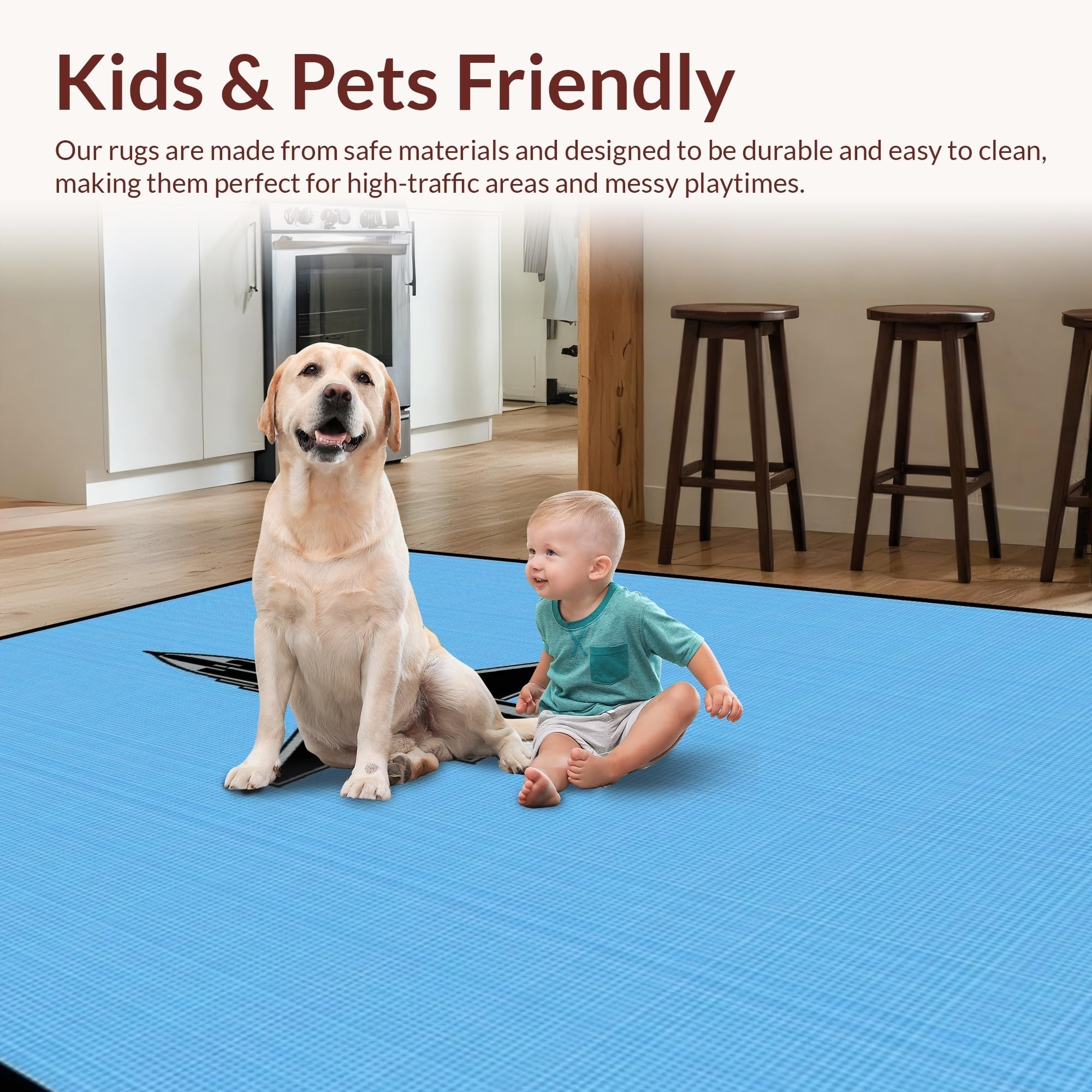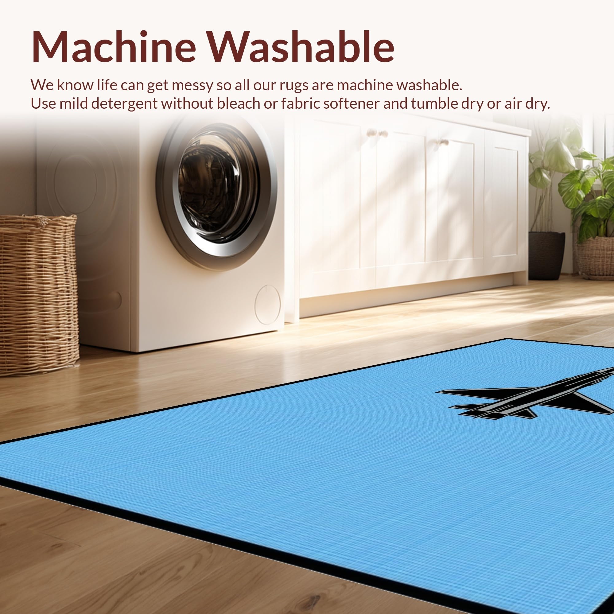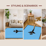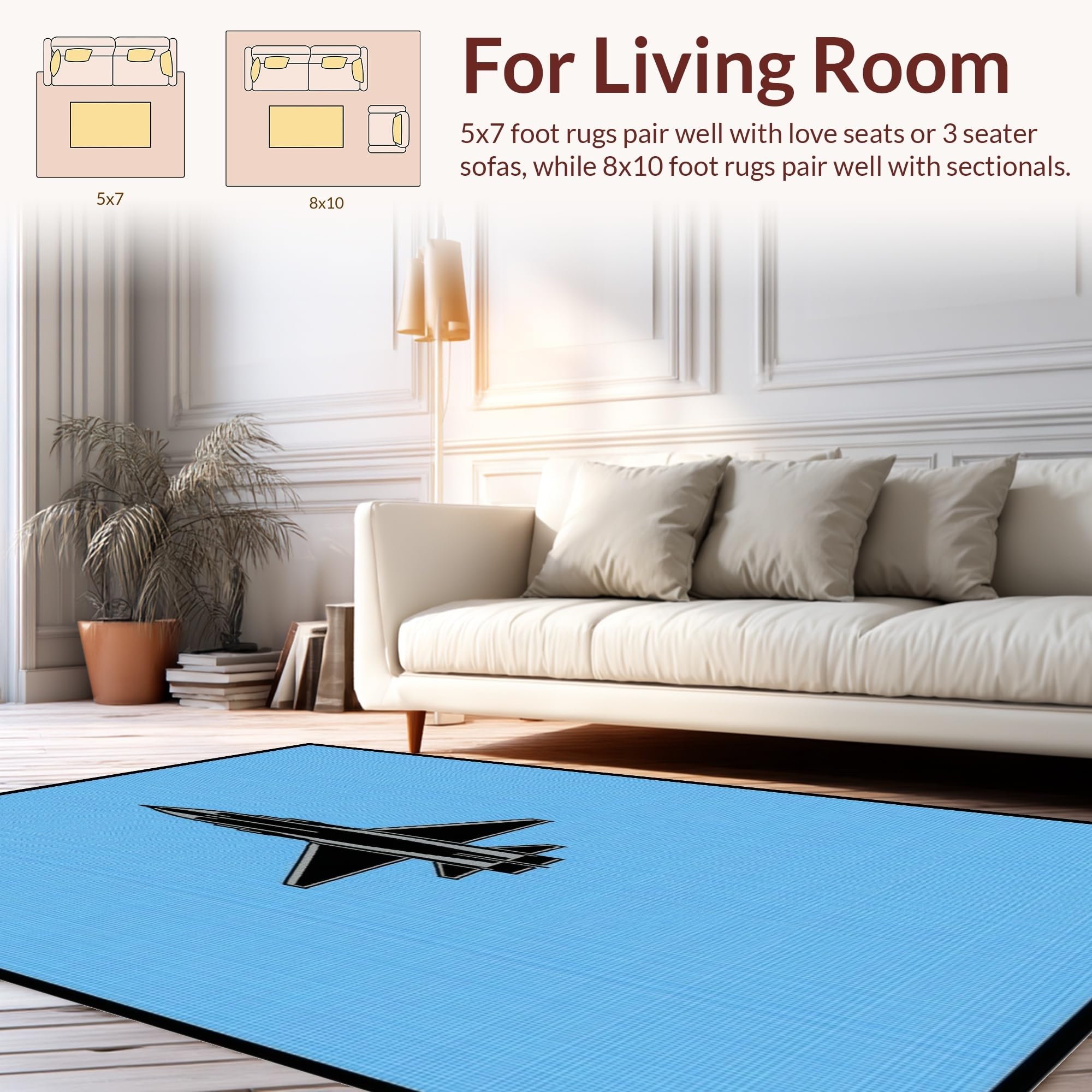 Ultra Soft Area Rug, Non Slip, Stain Resistant, Washable Area Rugs for Living Room, Bedroom, Whimsical Jetsetter Theme Artwork(Blue) Overview: