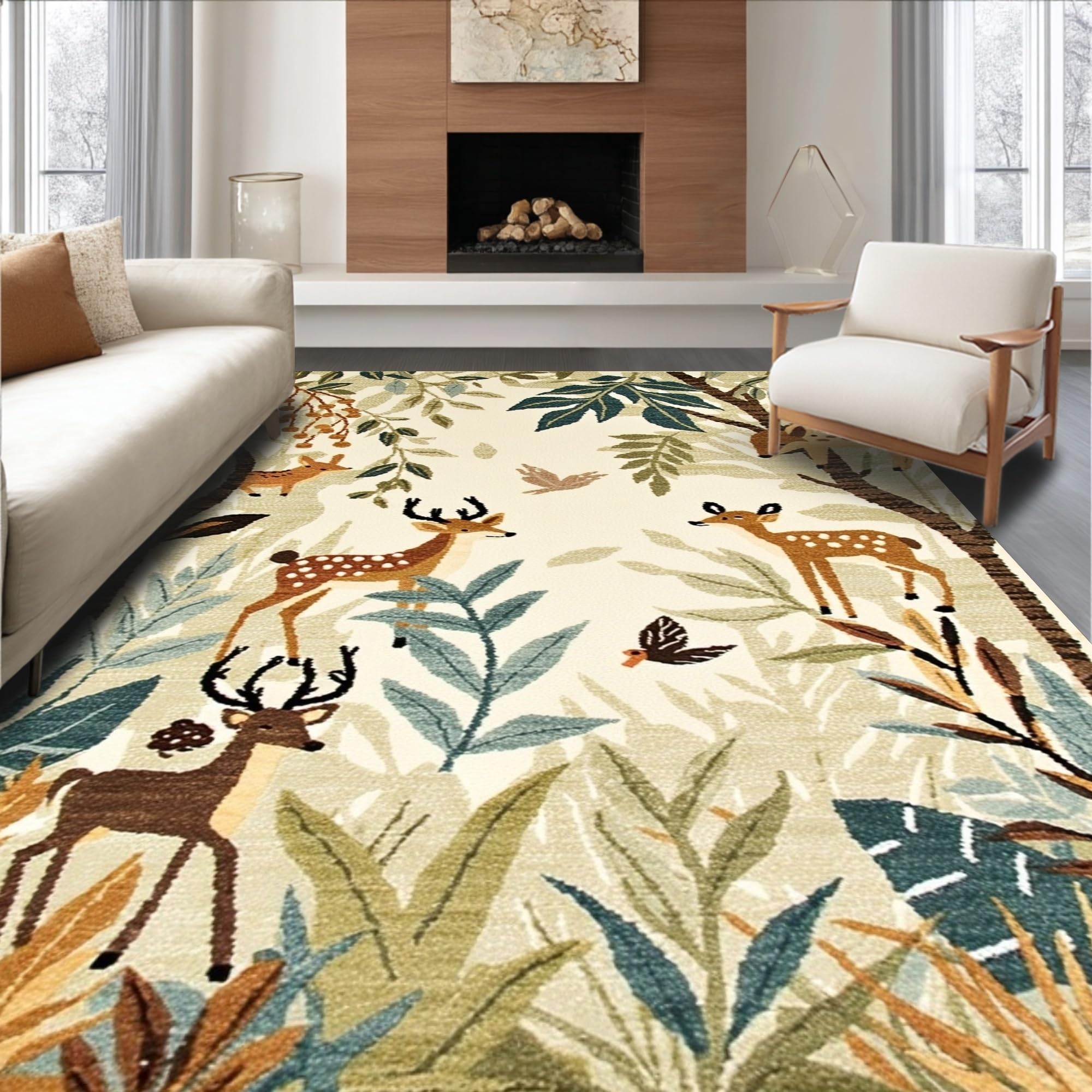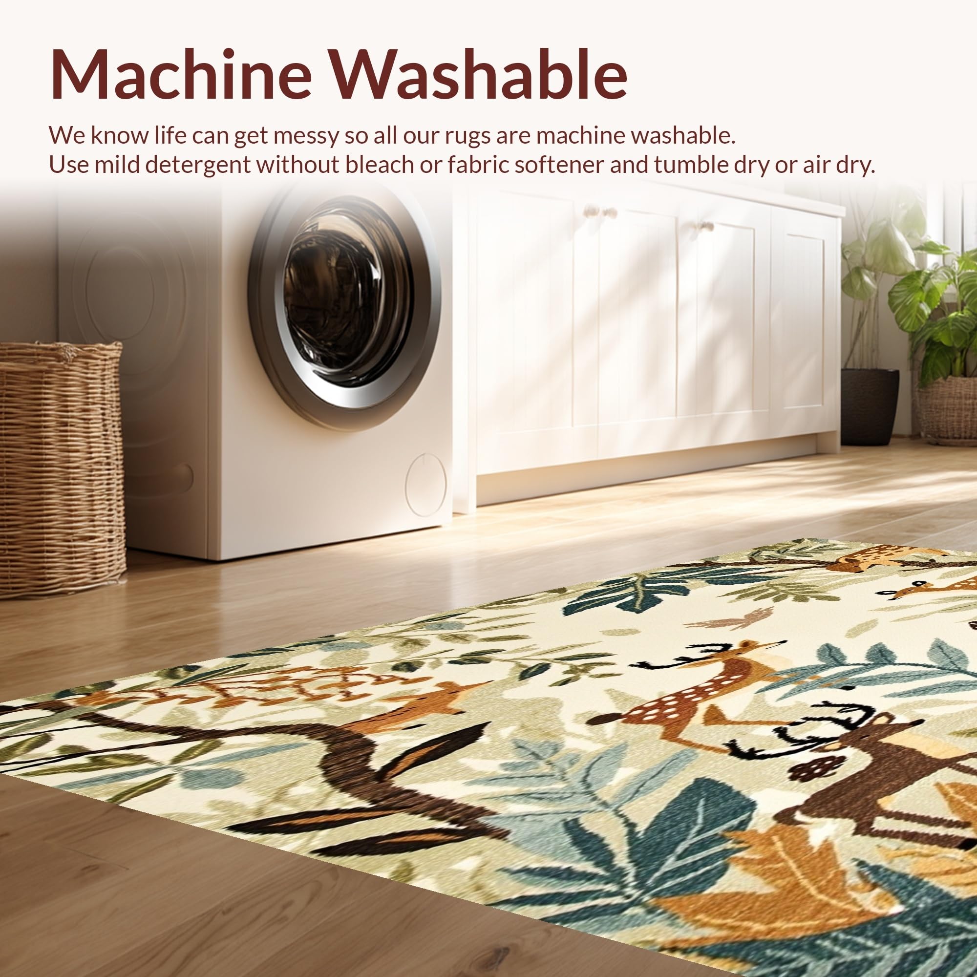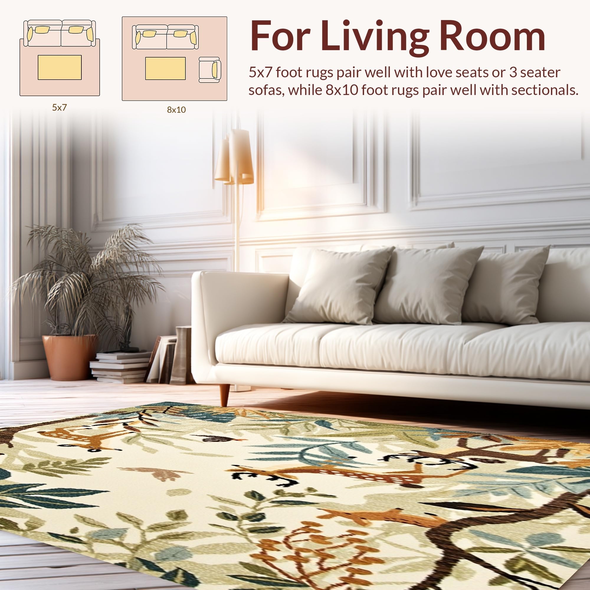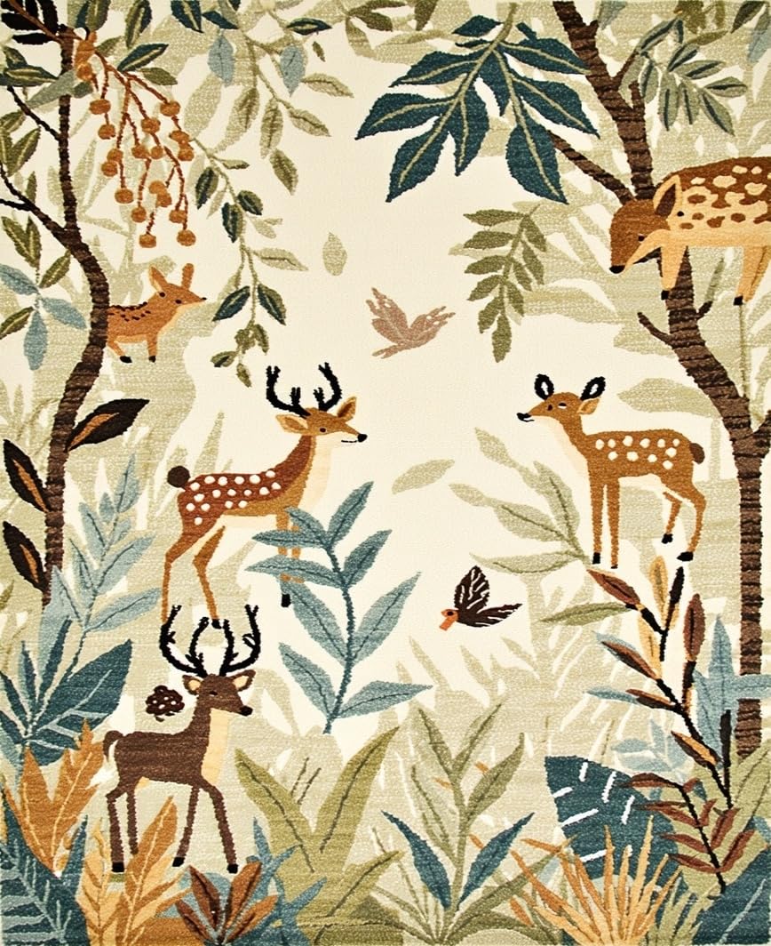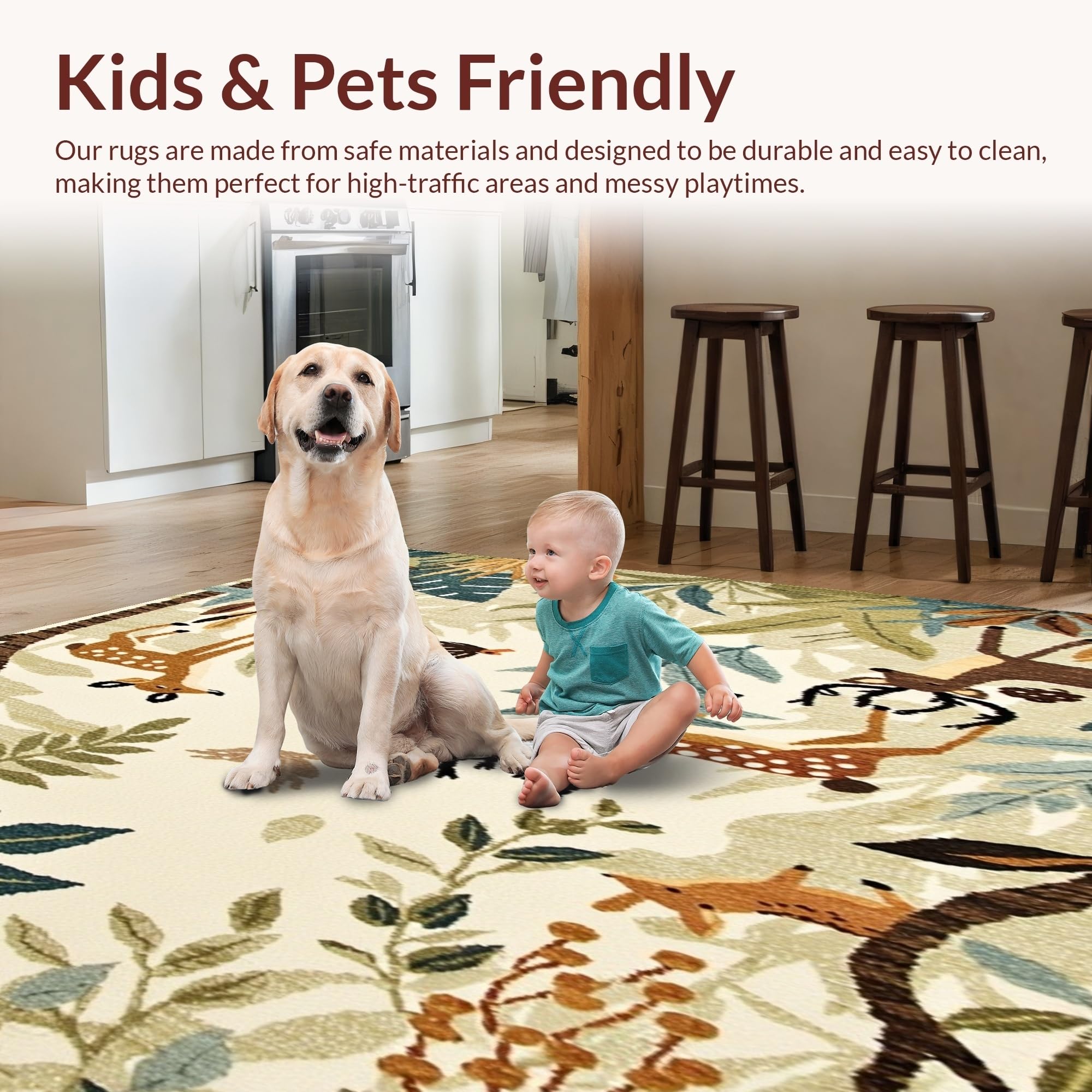 Ultra Soft Area Rug, Non Slip, Stain Resistant, Washable Area Rugs for Living Room, Bedroom, Whimsical Jungle Animal Print Perfect for Kids Rooms(Beige) Overview: