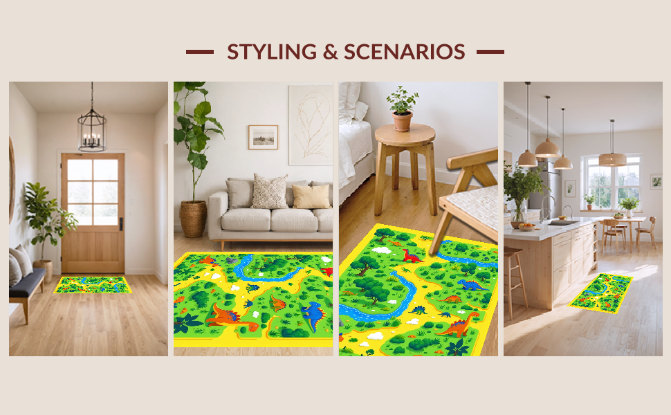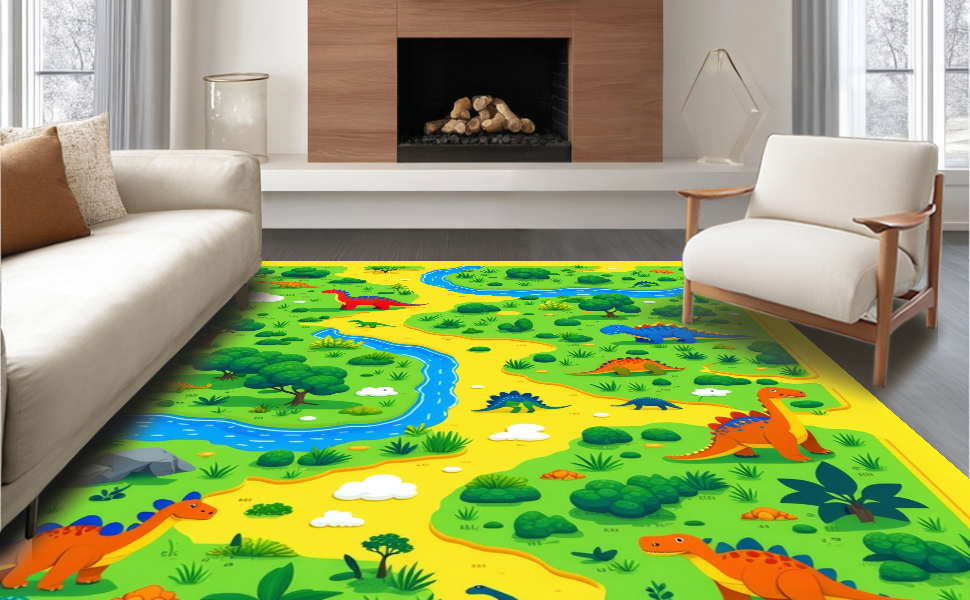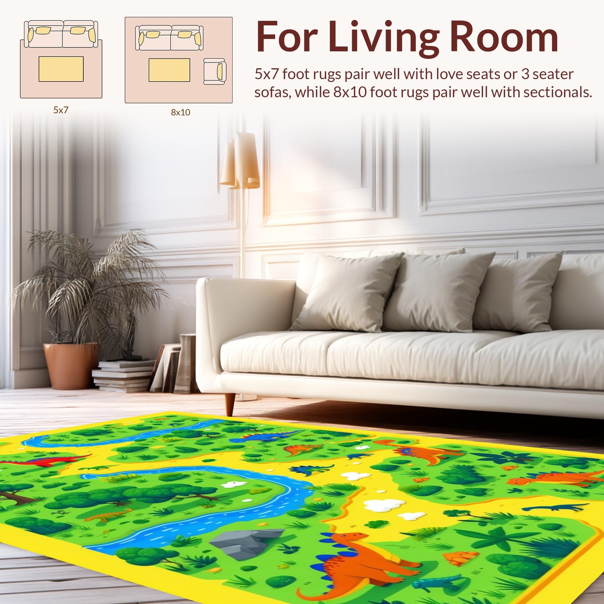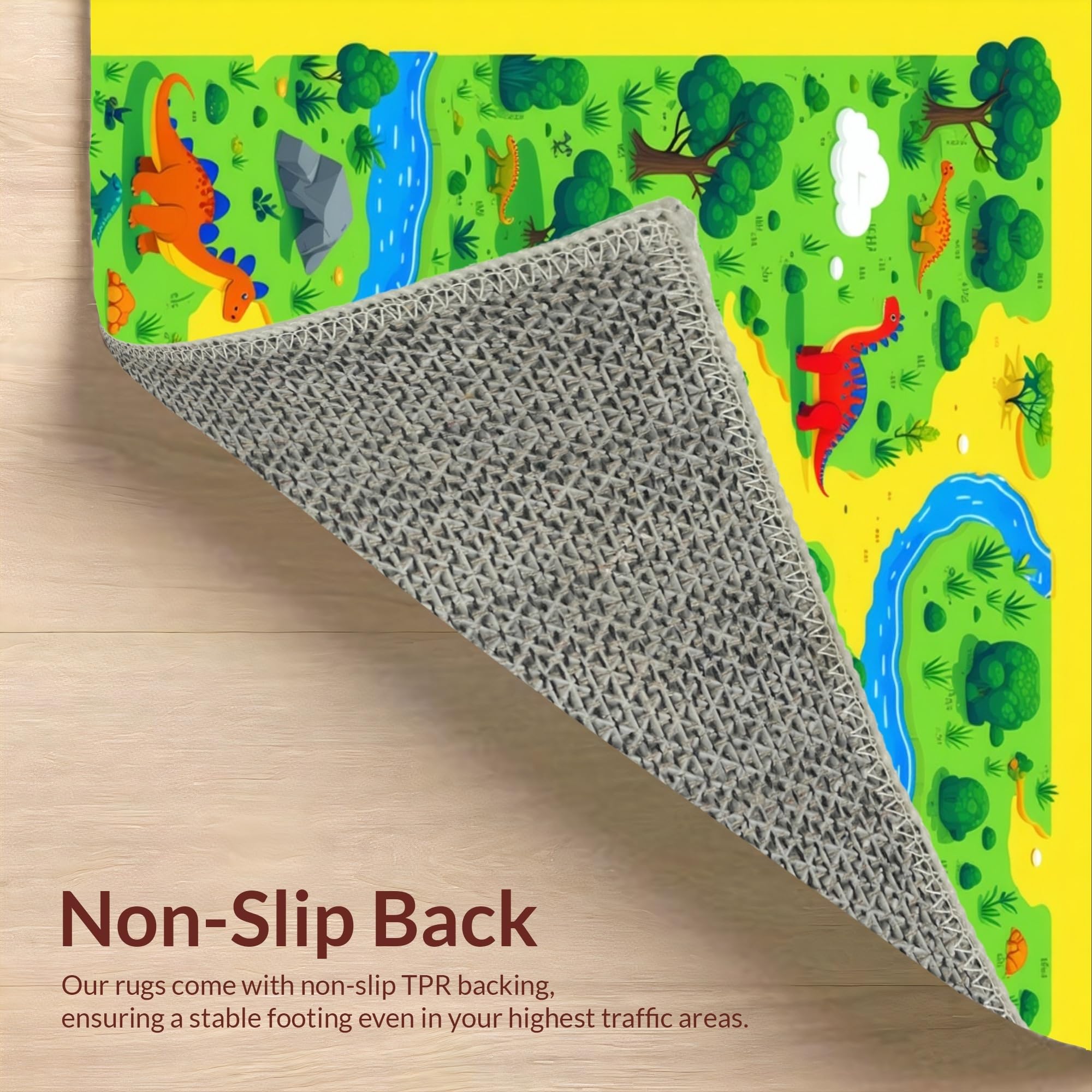 Ultra Soft Area Rug, Non Slip, Stain Resistant, Washable Area Rugs for Living Room, Bedroom, Whimsical Jungle Creature Layout(Green) Overview: