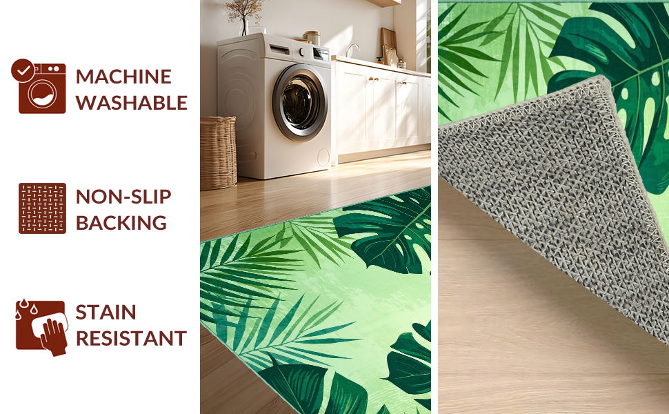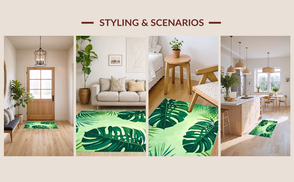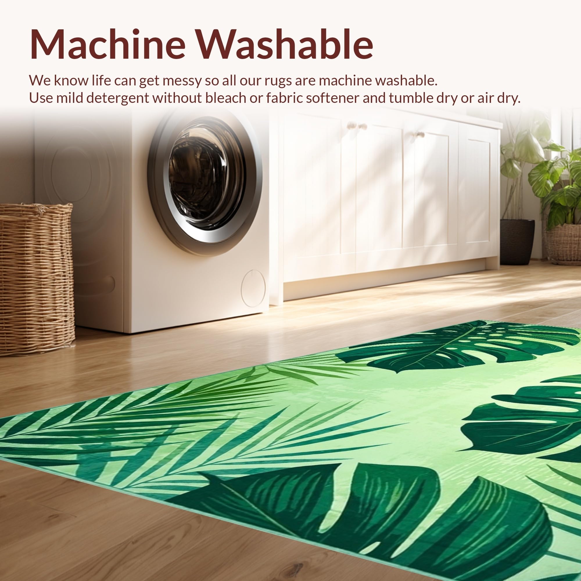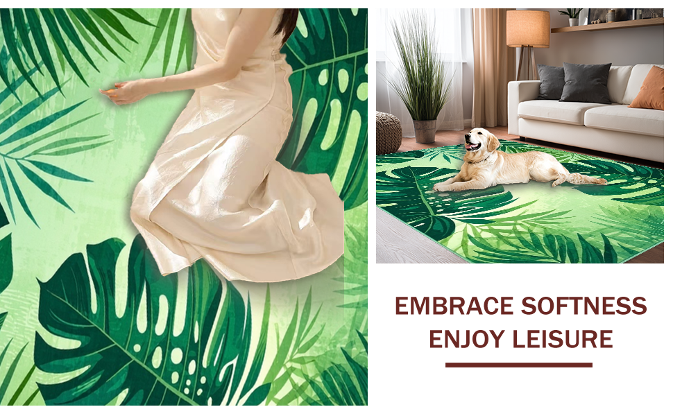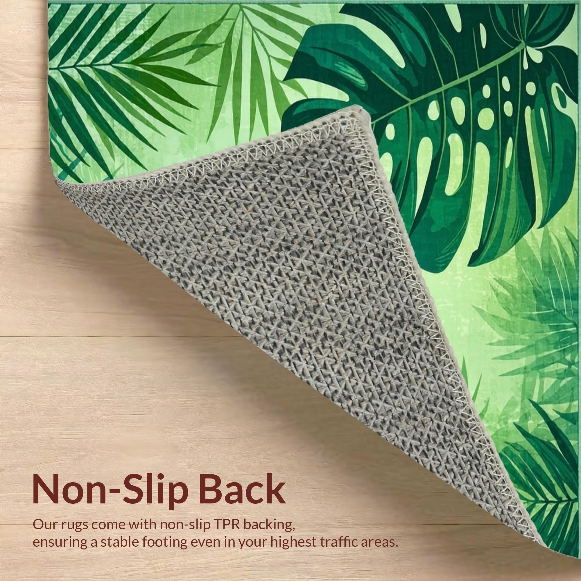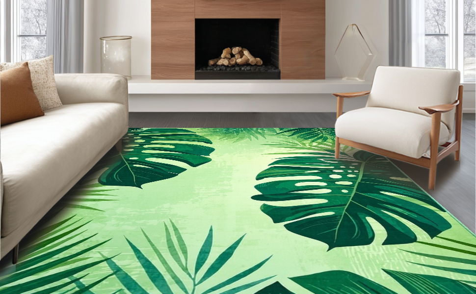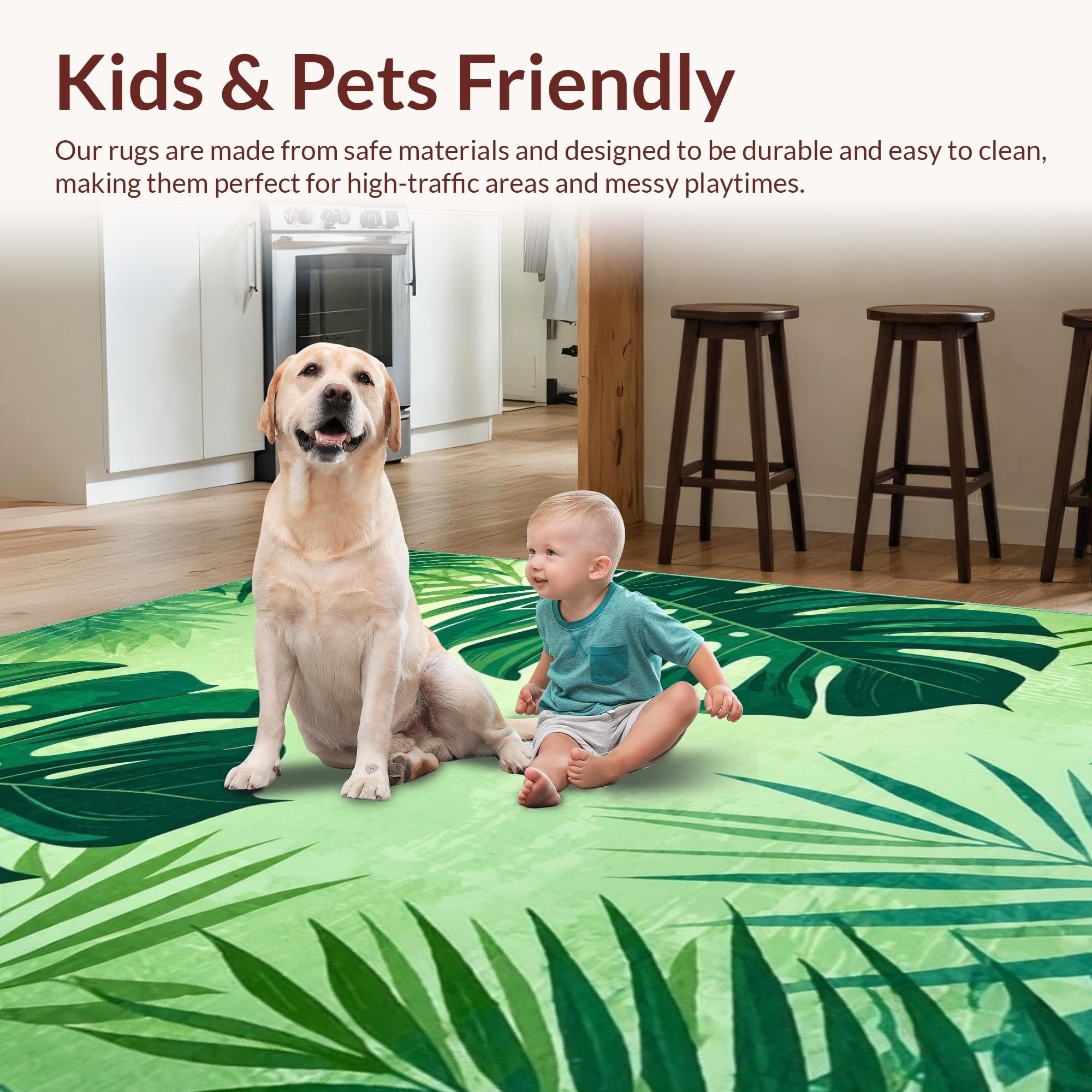 Ultra Soft Area Rug, Non Slip, Stain Resistant, Washable Area Rugs for Living Room, Bedroom, Whimsical Jungle Print Serenity(Green) Overview: