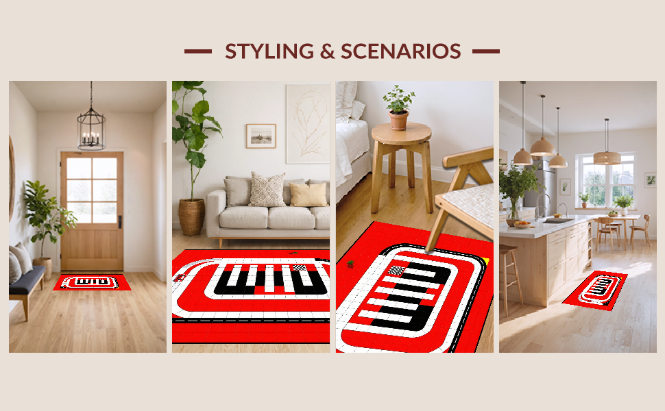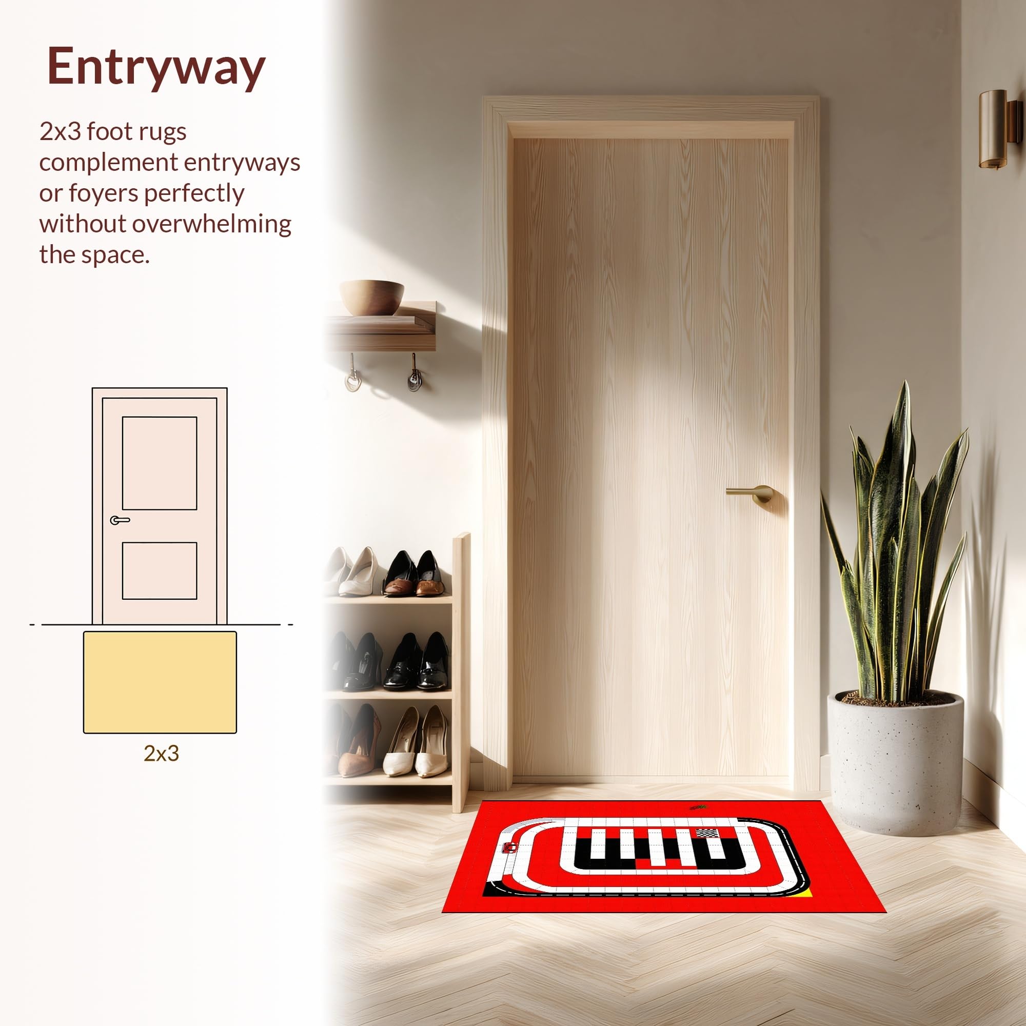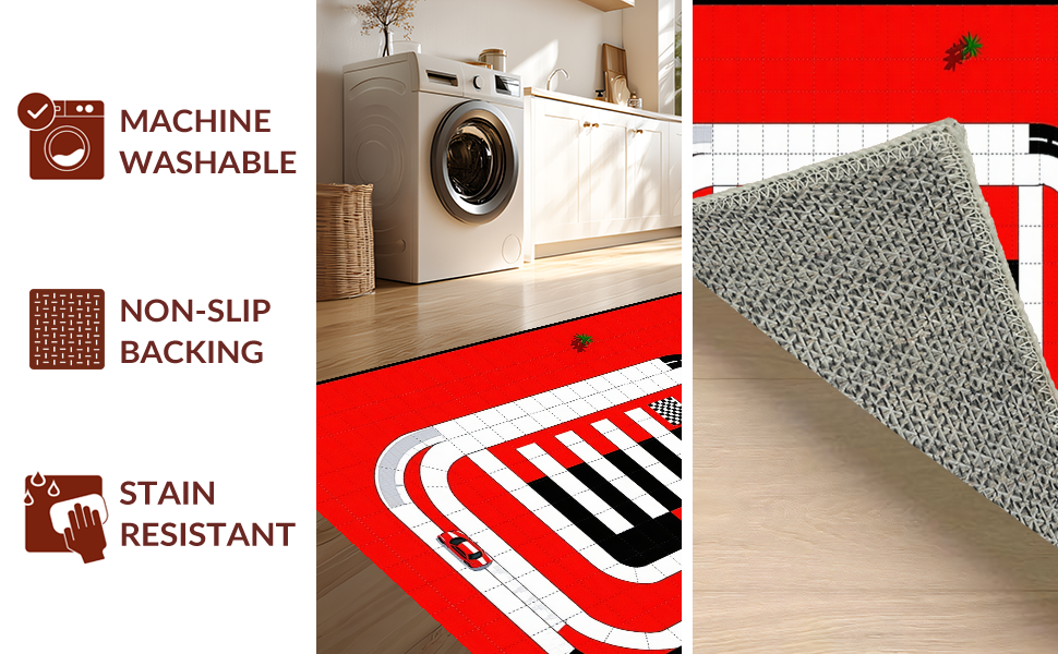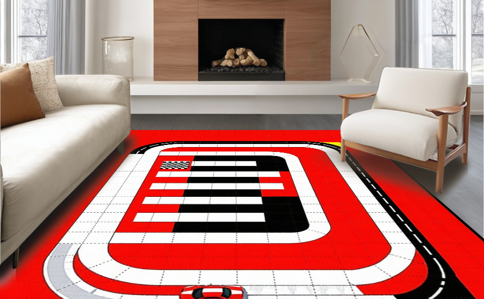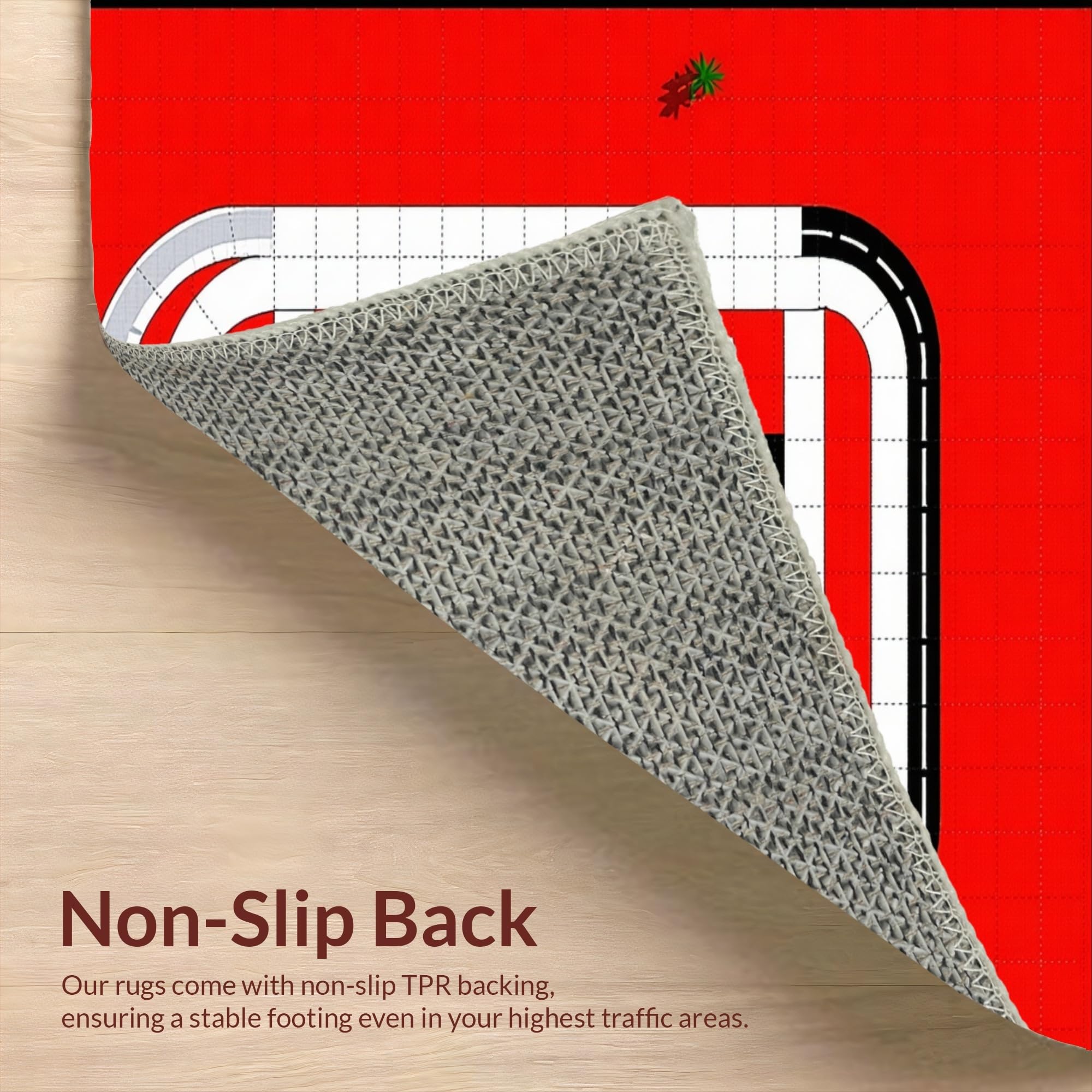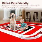 Ultra Soft Area Rug, Non Slip, Stain Resistant, Washable Area Rugs for Living Room, Bedroom, Whimsical Karting Pathway Style(Red) Overview: