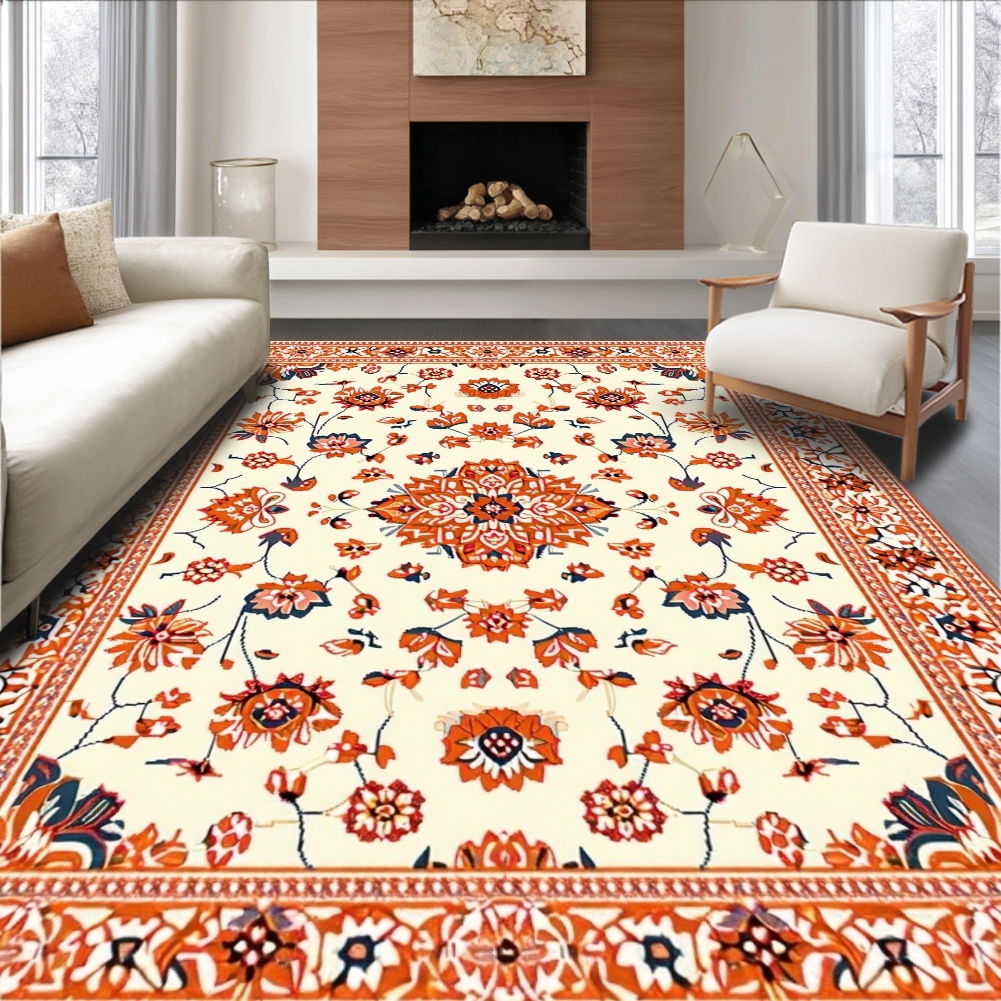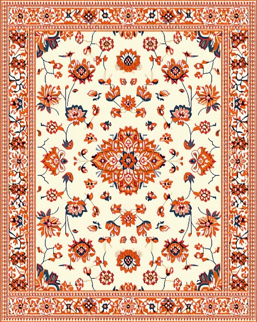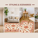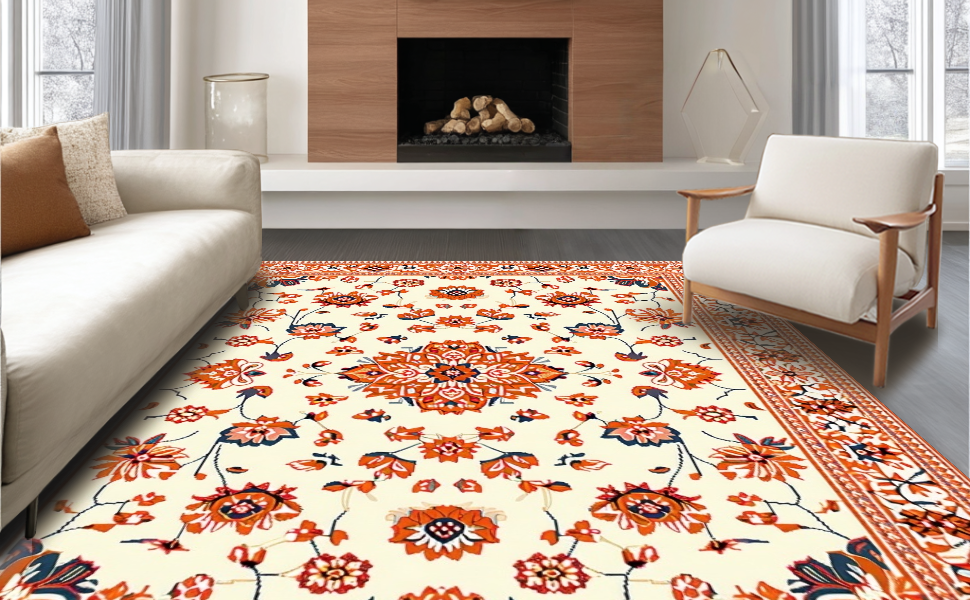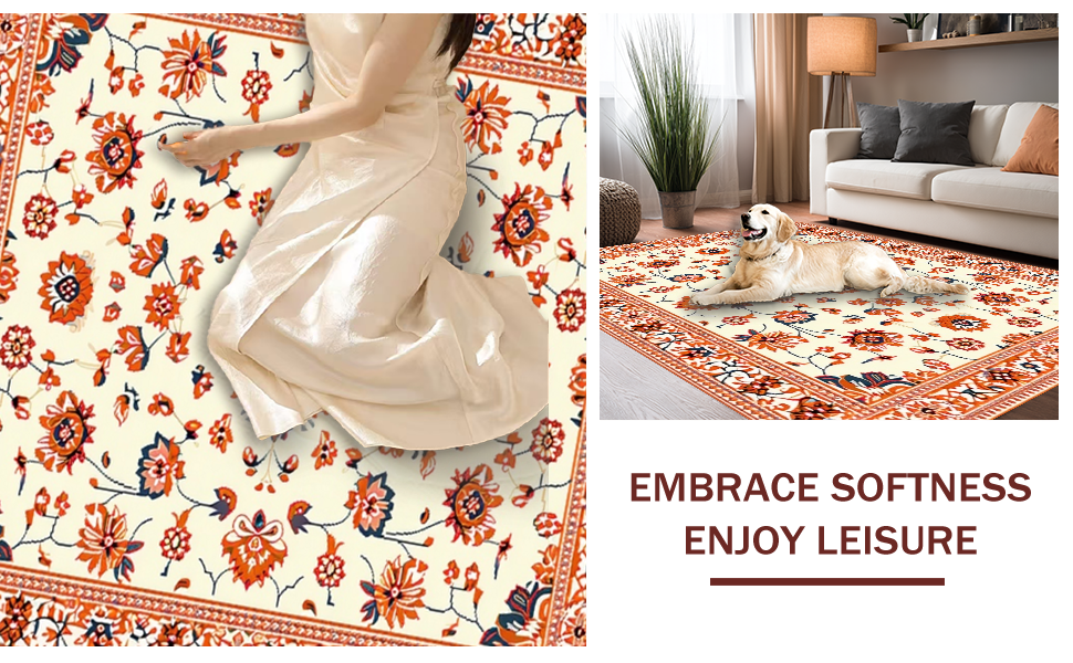 Ultra Soft Area Rug, Non Slip, Stain Resistant, Washable Area Rugs for Living Room, Bedroom, Whimsical Low-Pile Floral Aesthetic(Beige) Overview: