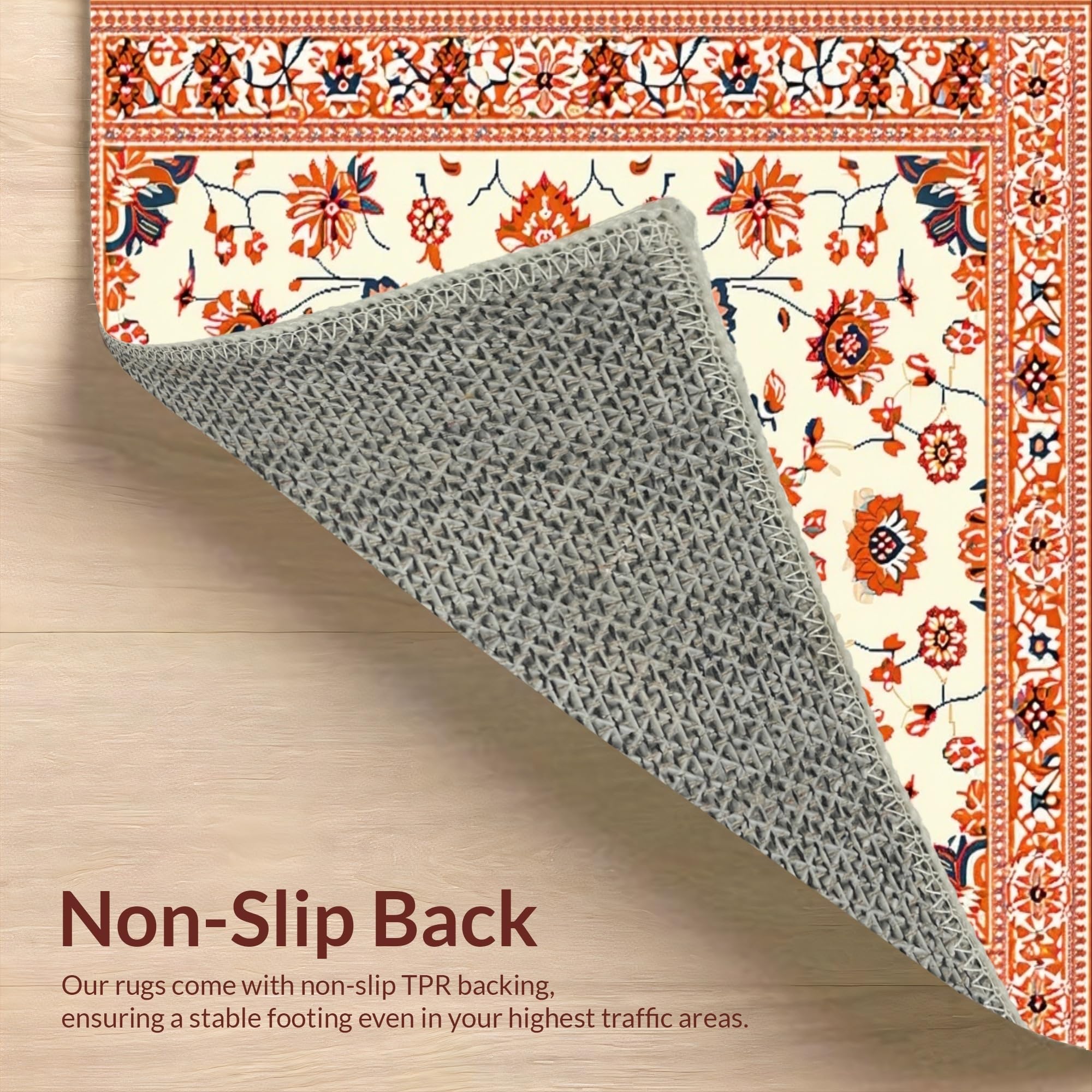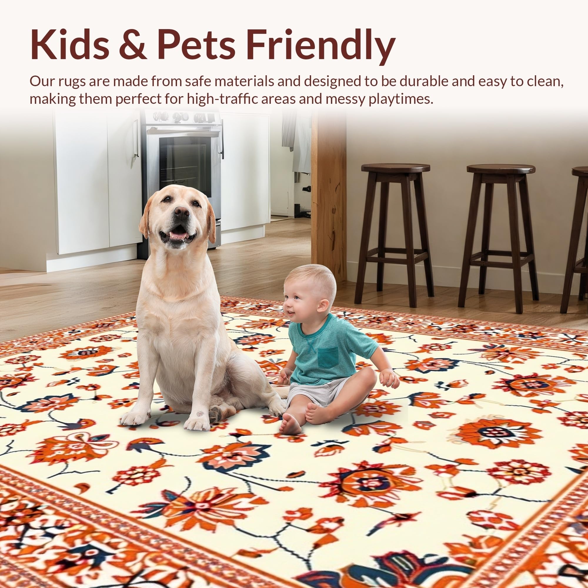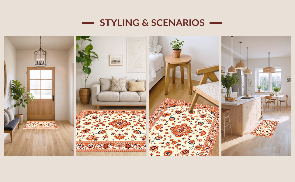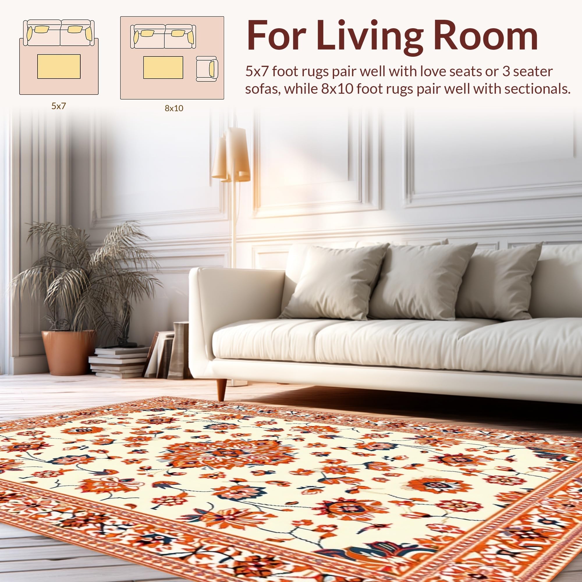 Ultra Soft Area Rug, Non Slip, Stain Resistant, Washable Area Rugs for Living Room, Bedroom, Whimsical Low-Pile Floral Aesthetic(Beige) Overview: