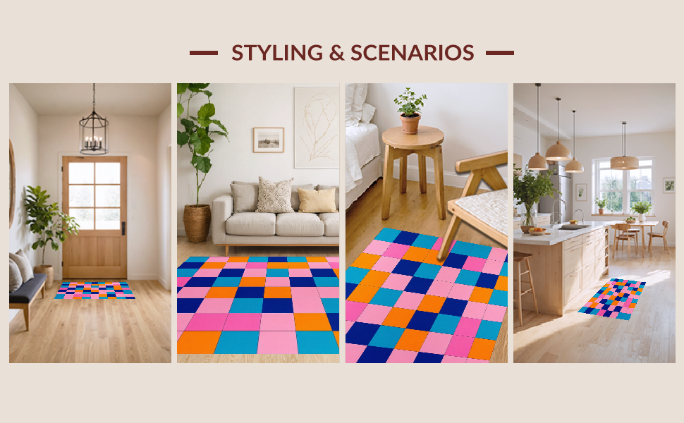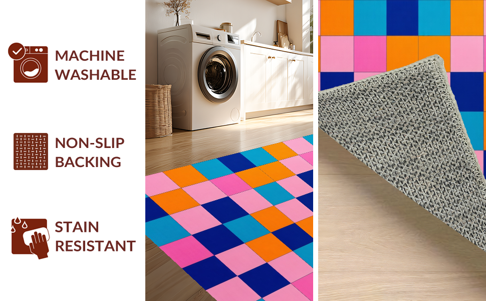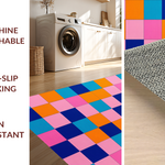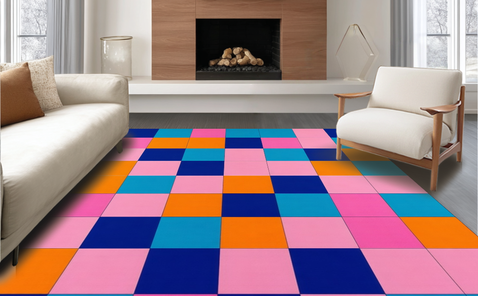Ultra Soft Area Rug, Non Slip, Stain Resistant, Washable Area Rugs for Living Room, Bedroom, Whimsical Modernist Checkered Design(Blue) Overview: