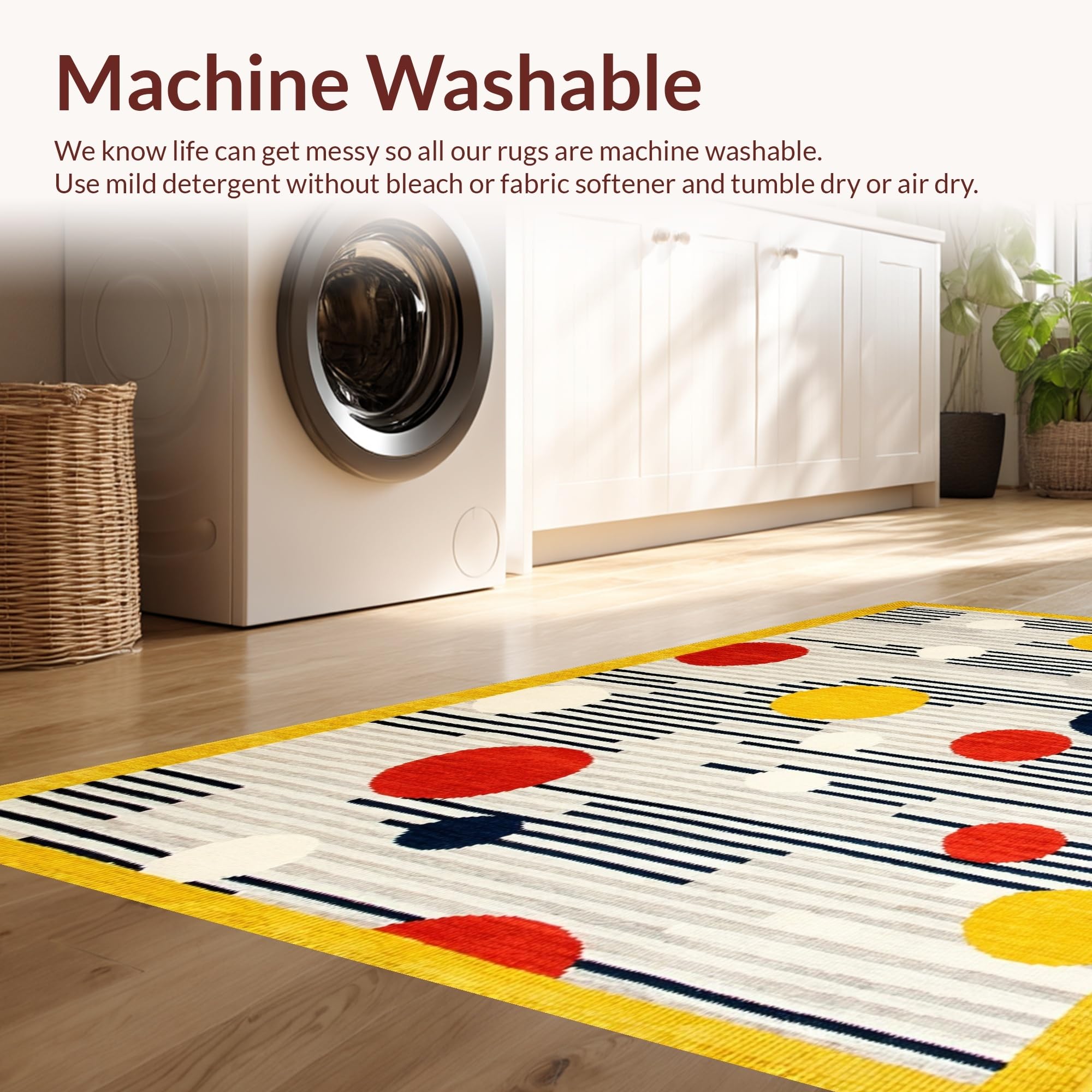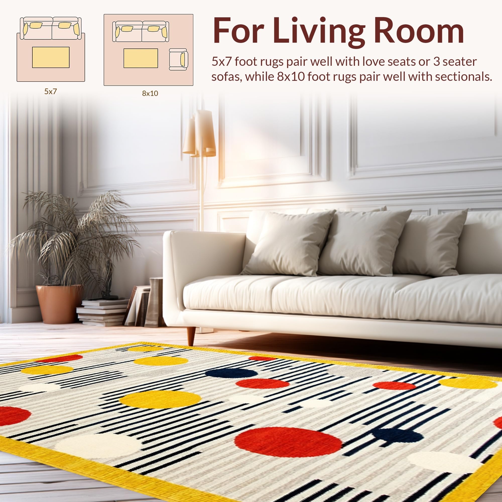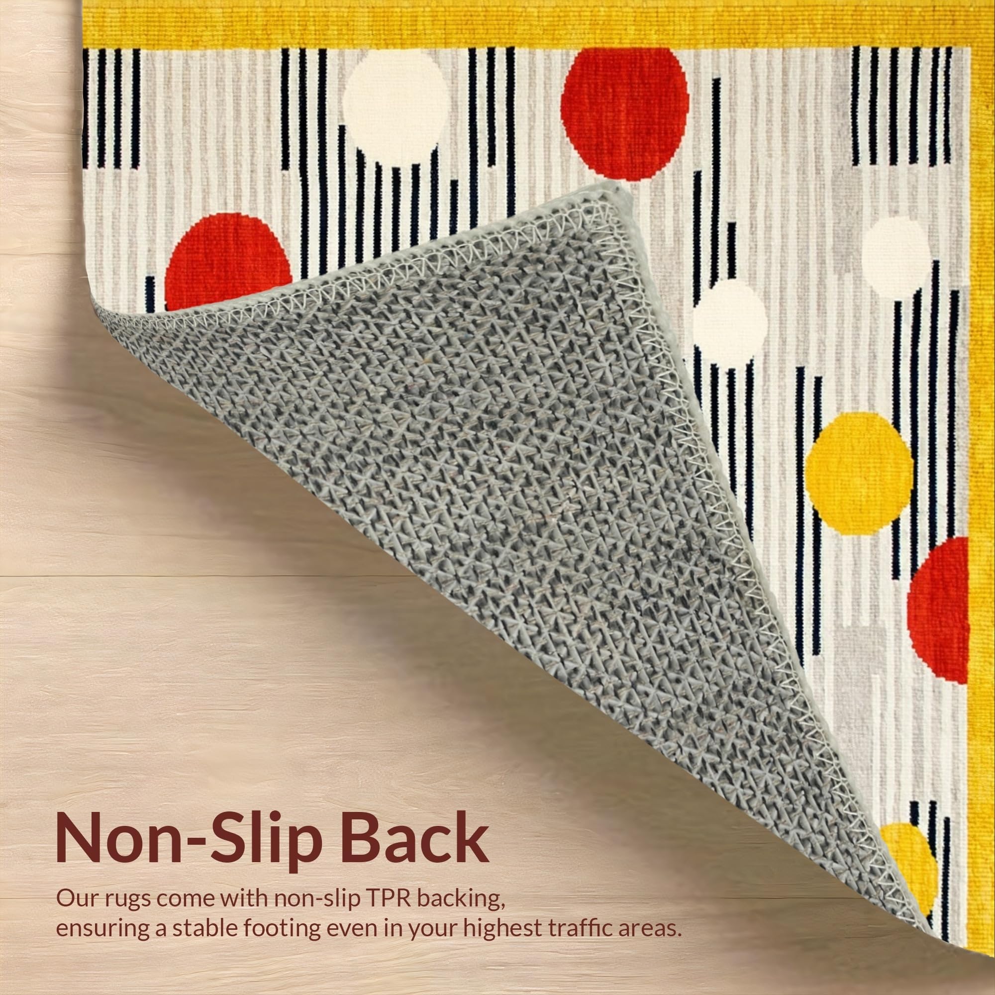 Ultra Soft Area Rug, Non Slip, Stain Resistant, Washable Area Rugs for Living Room, Bedroom, Whimsical Multi-Colored Polka Dot Delight(Yellow) Overview: