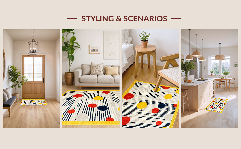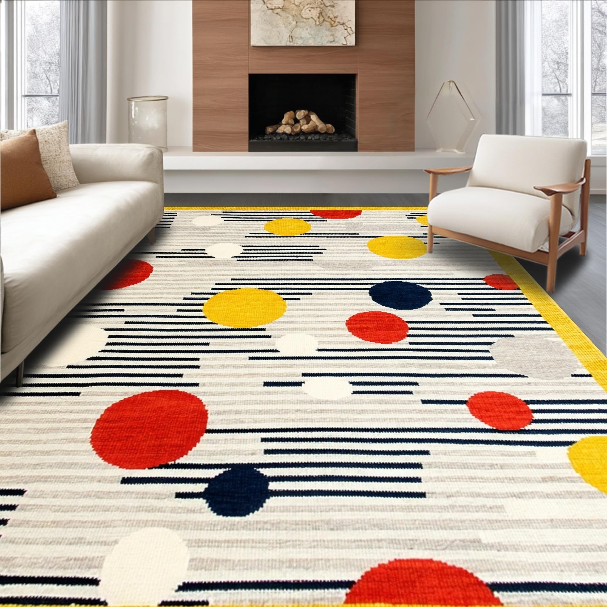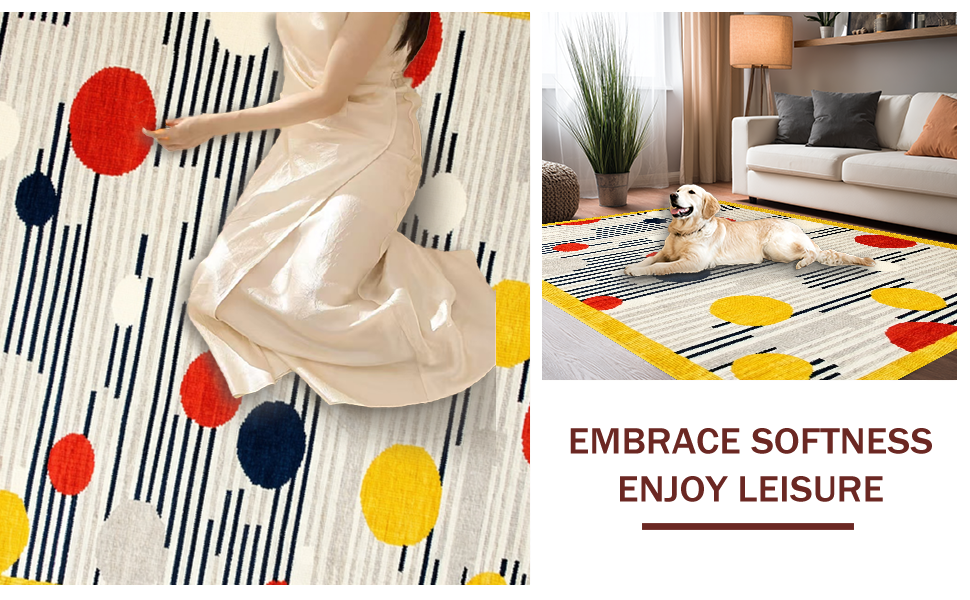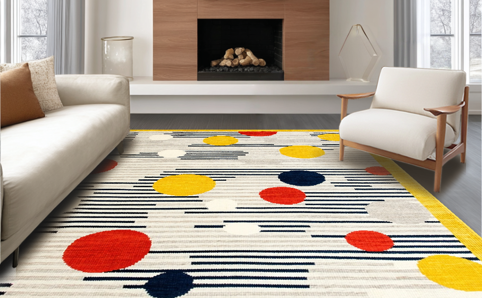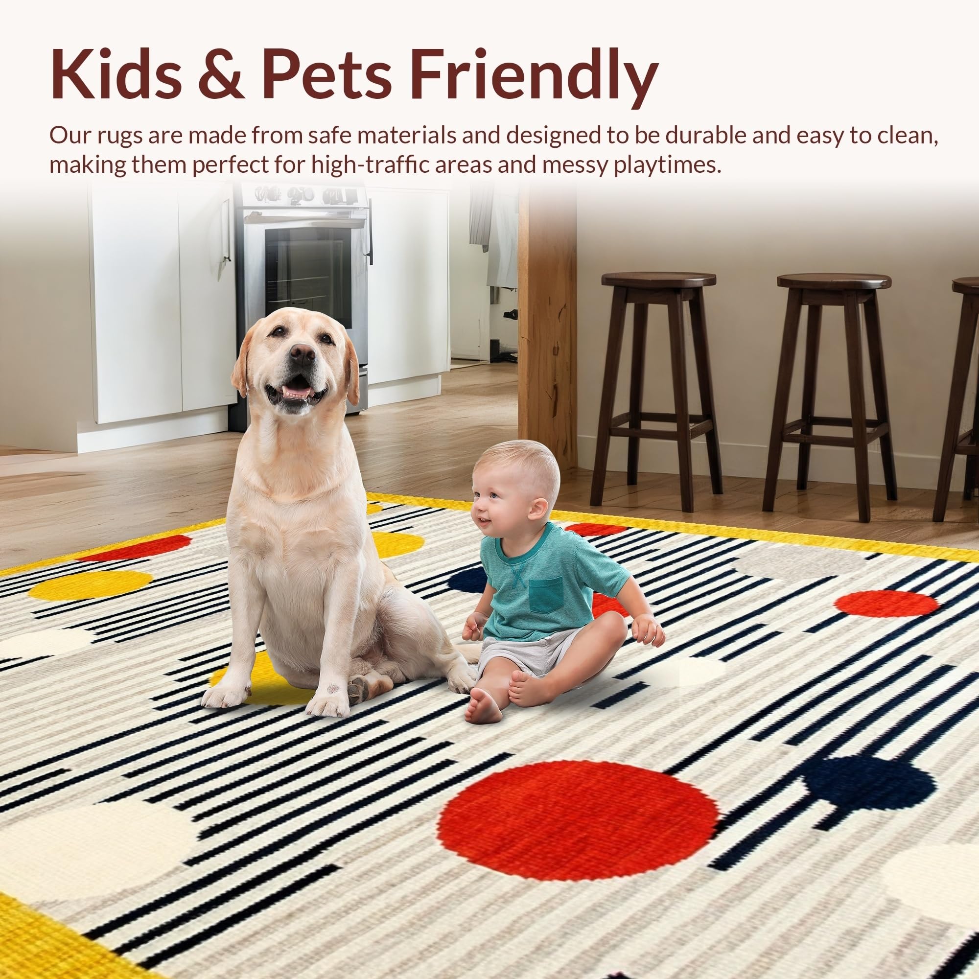 Ultra Soft Area Rug, Non Slip, Stain Resistant, Washable Area Rugs for Living Room, Bedroom, Whimsical Multi-Colored Polka Dot Delight(Yellow) Overview: