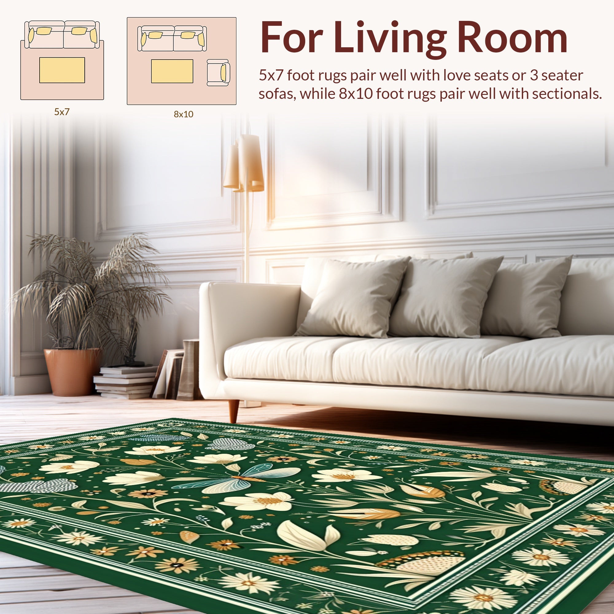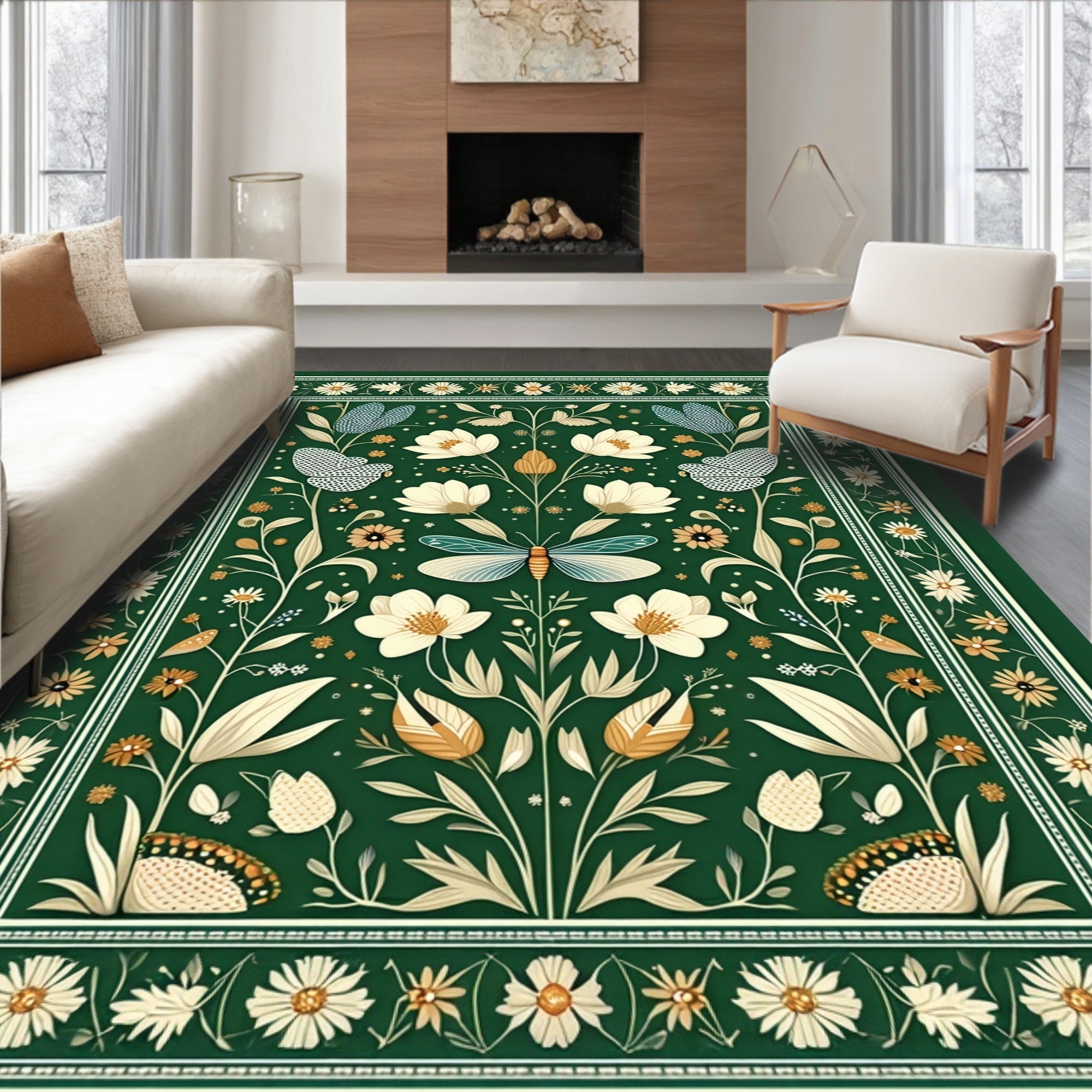 Flatwoven High Traffic Area Rug, Whimsical Mushroom and Insect Aesthetic, Non Slip, Stain Resistant, Washable Area Rugs for Living Room, Bedroom (Green) Overview: