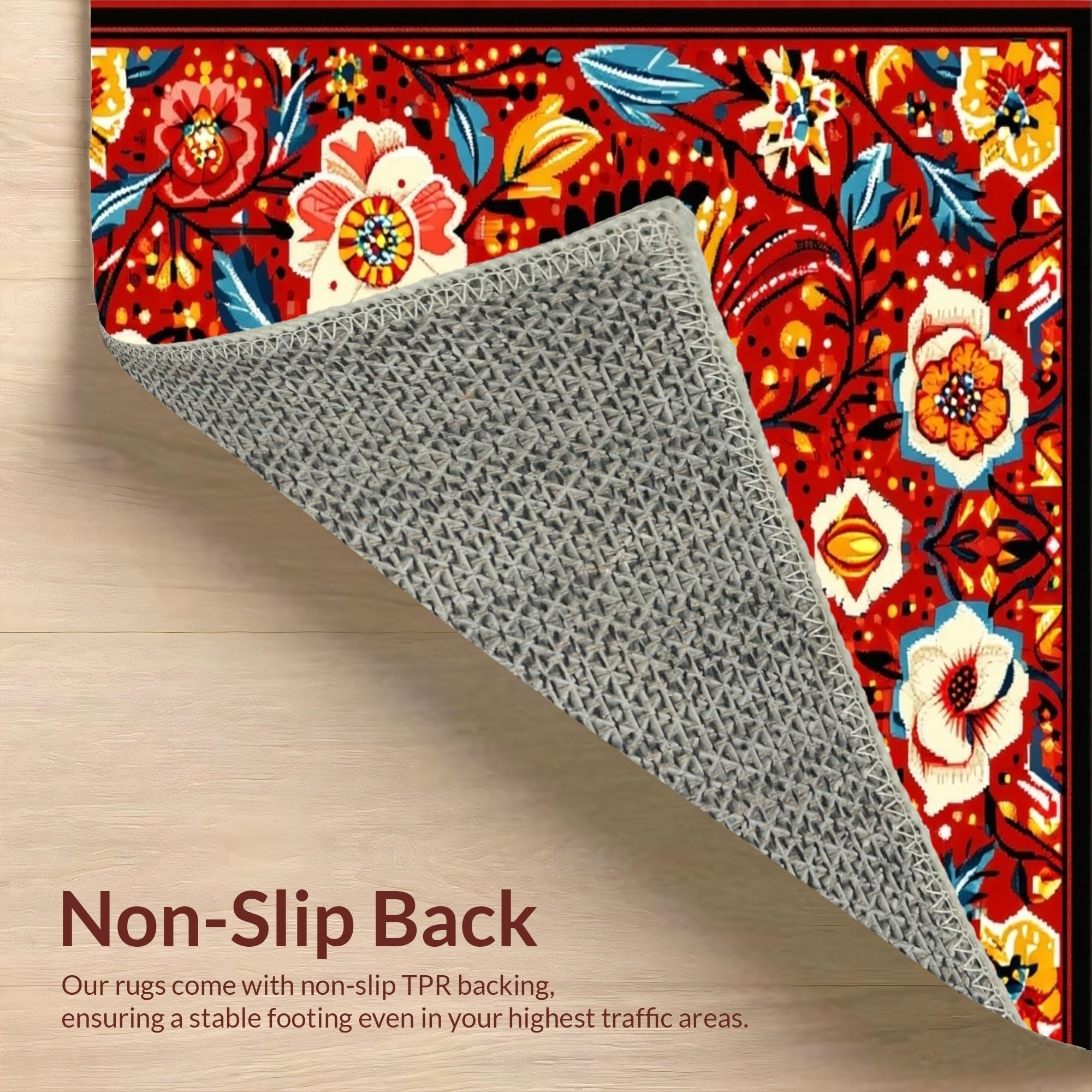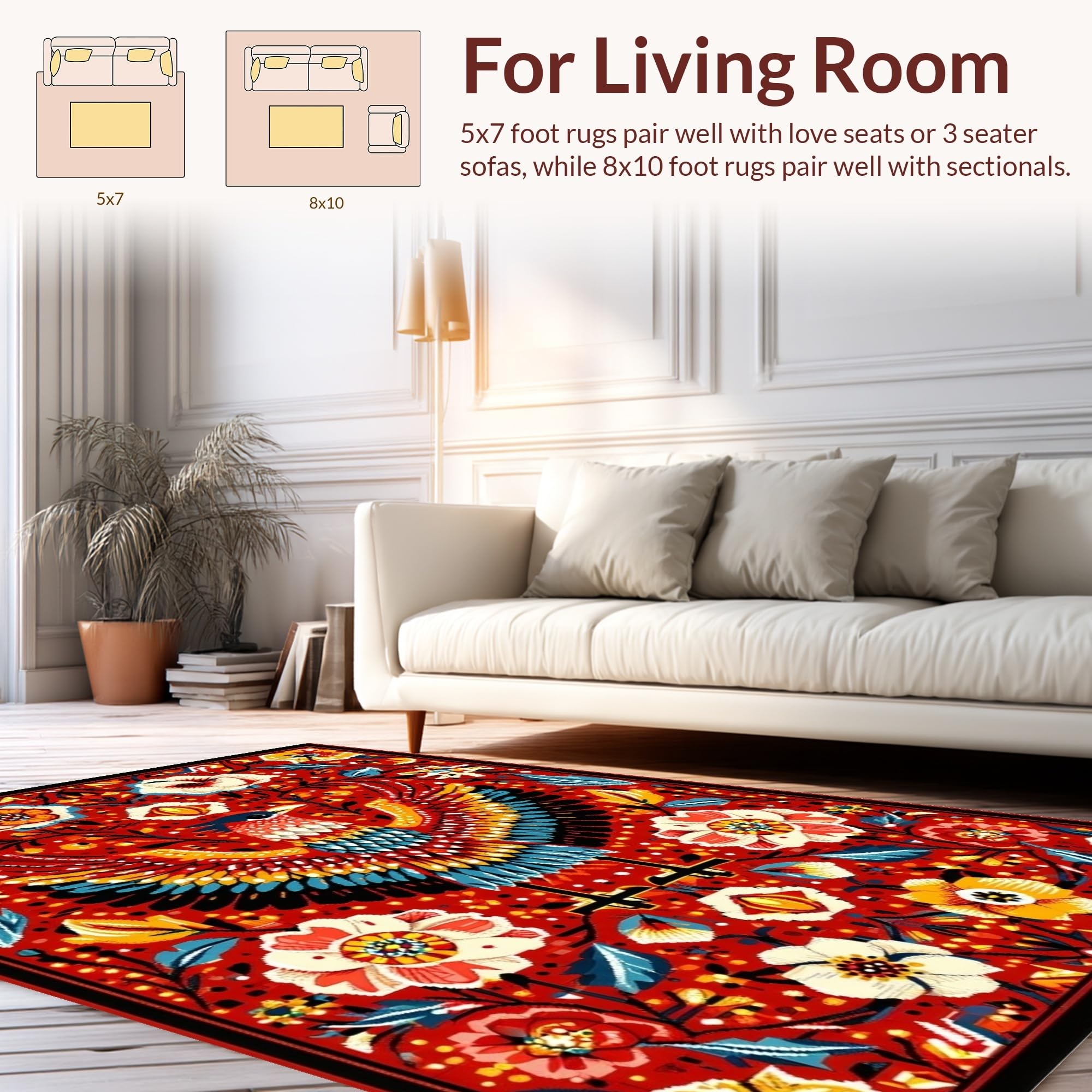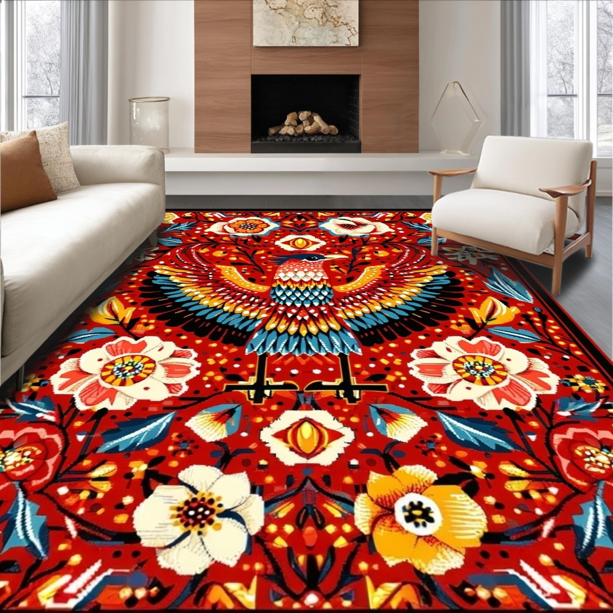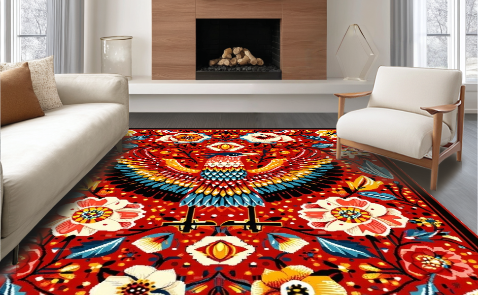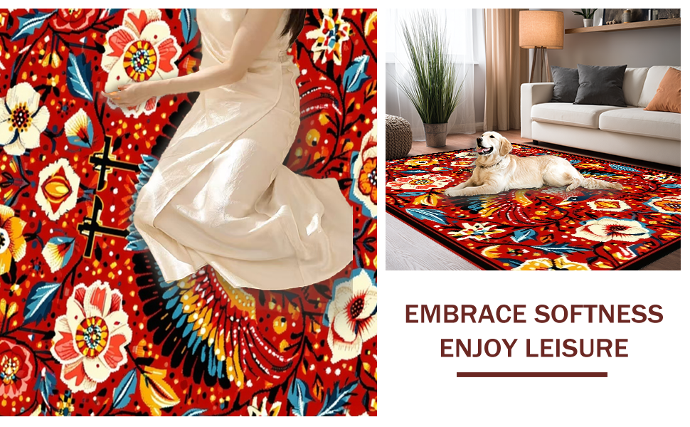 Ultra Soft Area Rug, Non Slip, Stain Resistant, Washable Area Rugs for Living Room, Bedroom, Whimsical Nature-Inspired Aesthetic(Red) Overview: